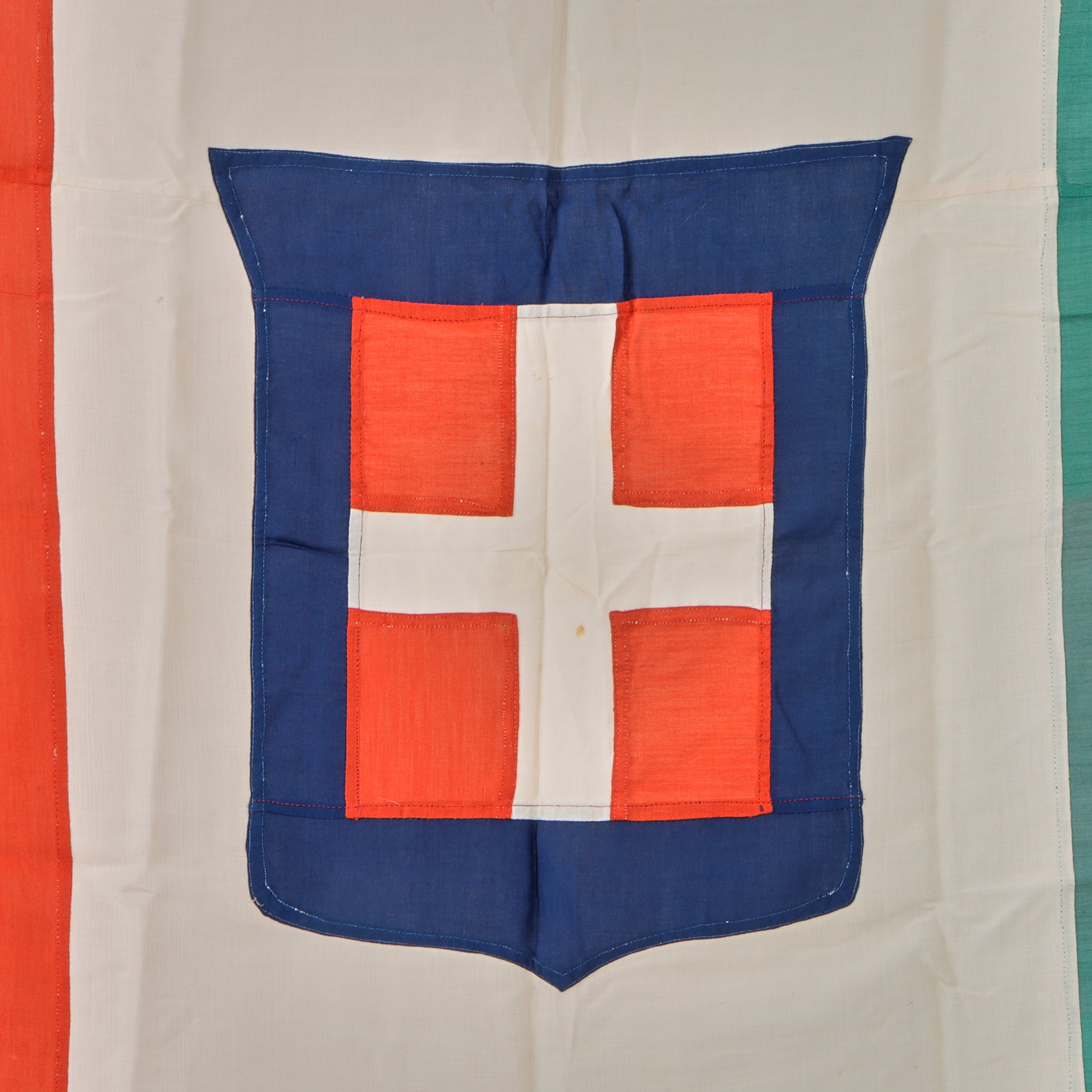 • Original Item: Only One Available. This is an outstanding WWI era Italian National Flag, which looks to have seen extensive use during the period. It measures approximately 36 x 56”, is of multi piece construction with all colors a separate piece, and the Savoy coat of arms is multi-piece itself! The Savoy Flag was adopted in 1861 and relinquished in 1946 with the current flag design.