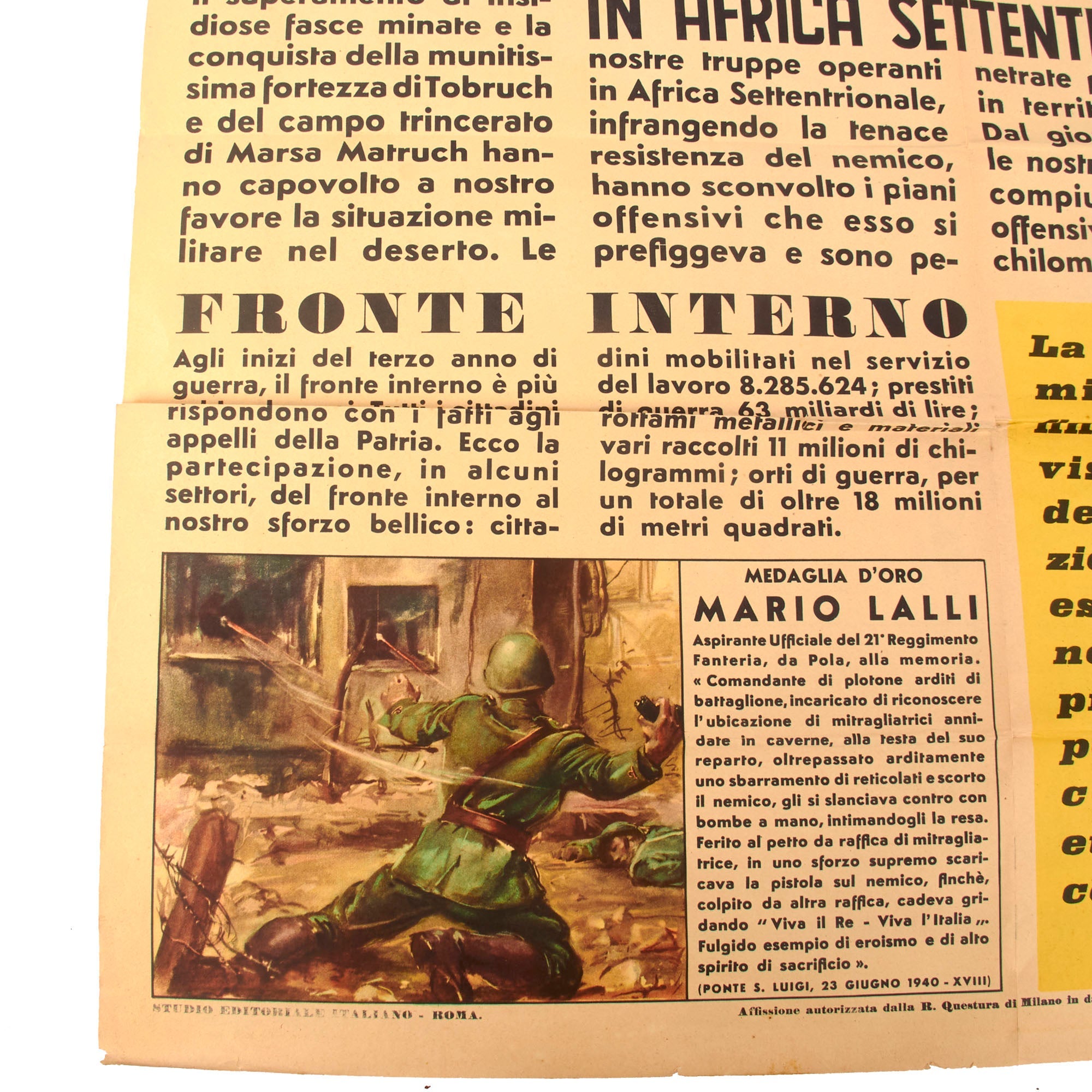 This is a fantastic poster with a great deal of content about the Italian war effort in one of the deadliest years of the war, 1942. The poster is in fair shape overall having been folded several times, and there is some tearing along the folds as shown. There are a few other small tears but nothing serious, this poster would do very well with some proper framing. This poster comes ready for further research and display!