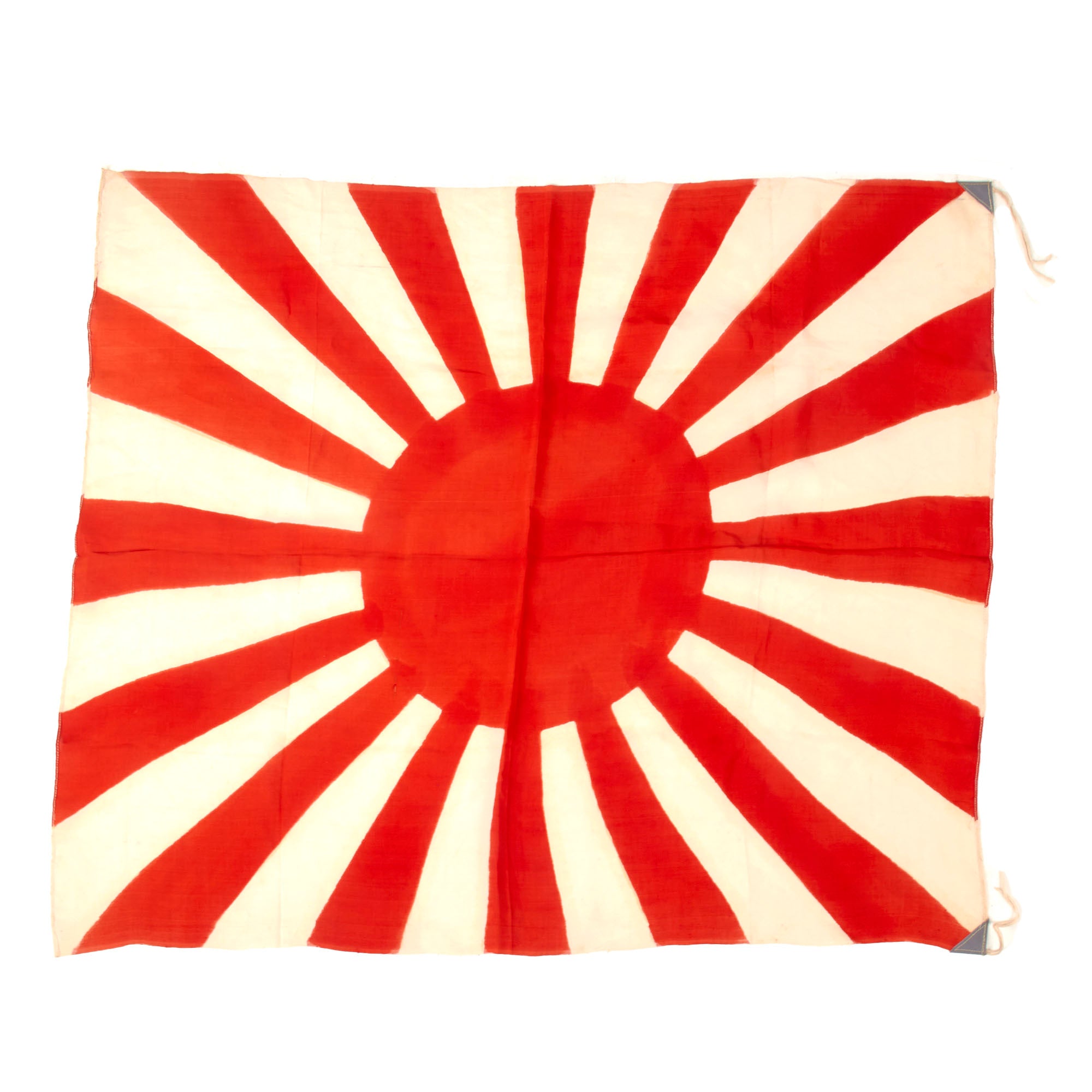Original Item: Only One Available. The Rising Sun Flag (旭日旗 Kyokujitsu-ki) design was originally used by feudal warlords in Japan during the Edo period. On May 15, 1870, as a policy of the Meiji government, it was adopted as the war flag of the Imperial Japanese Army, and on October 7, 1889, it was adopted as the naval ensign of the Imperial Japanese Navy (Naval flags have the sun off center to the left). With the sun in the center, this is a flag of the IJA (Imperial Japanese Army).