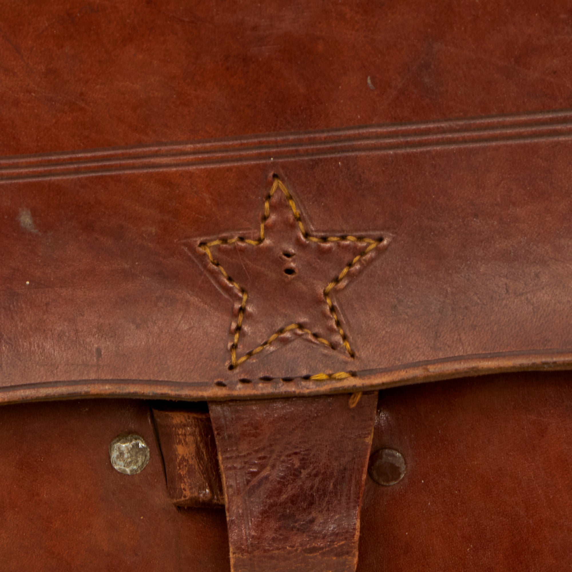 Original Item: Only One Available. This is a leather Japanese WW2 map case is in very good condition, showing typical signs of wear. It is hand-stitched, and embroidered with a five-pointed star. This denotes that the owner was of officer rank within the Japanese military. From this we also know that this map case is an earlier example; the later cases were embroidered with a circle instead of a star.