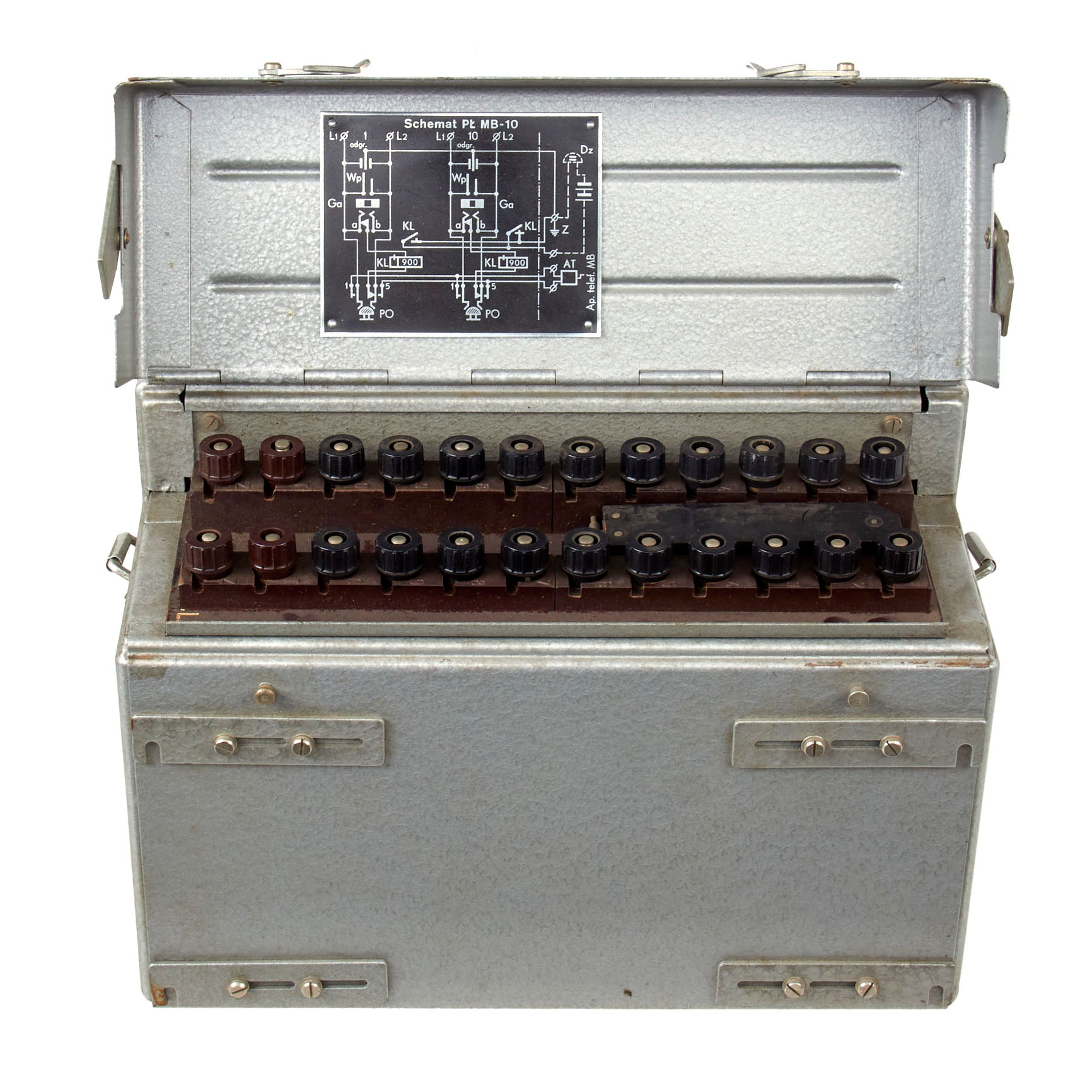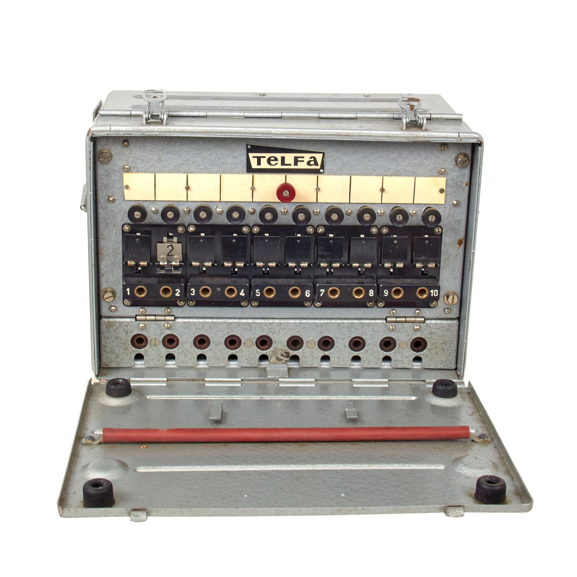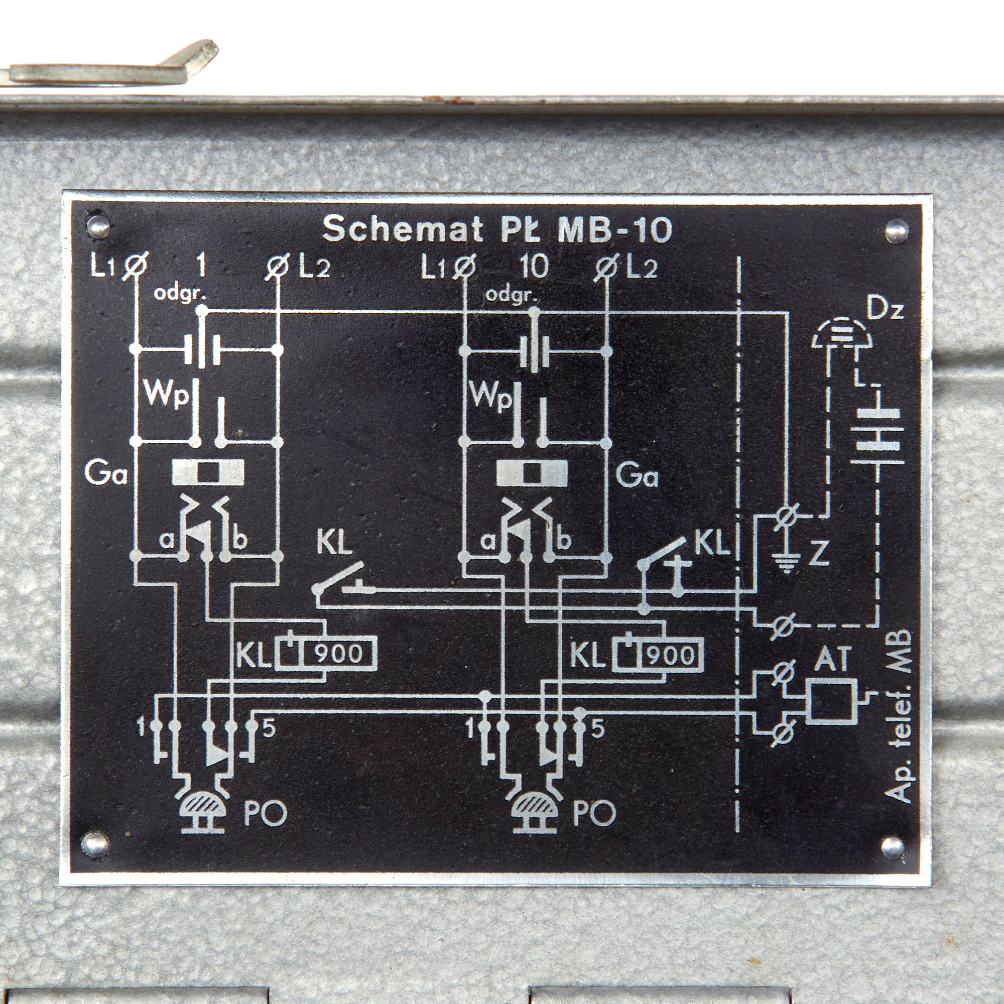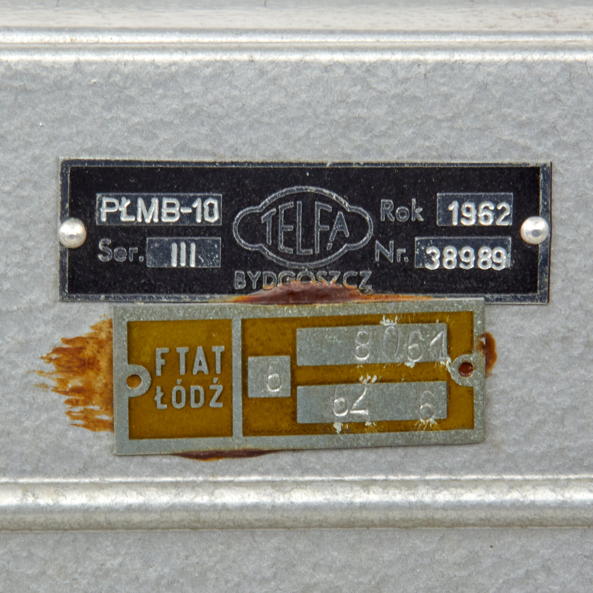 The switchboard retains its data plates, identifying the set as a PLMB-10, Ser. III, Nr. 38989, with a date of 1962. The switchboard was made by TELFA of Bydgoszcz.
