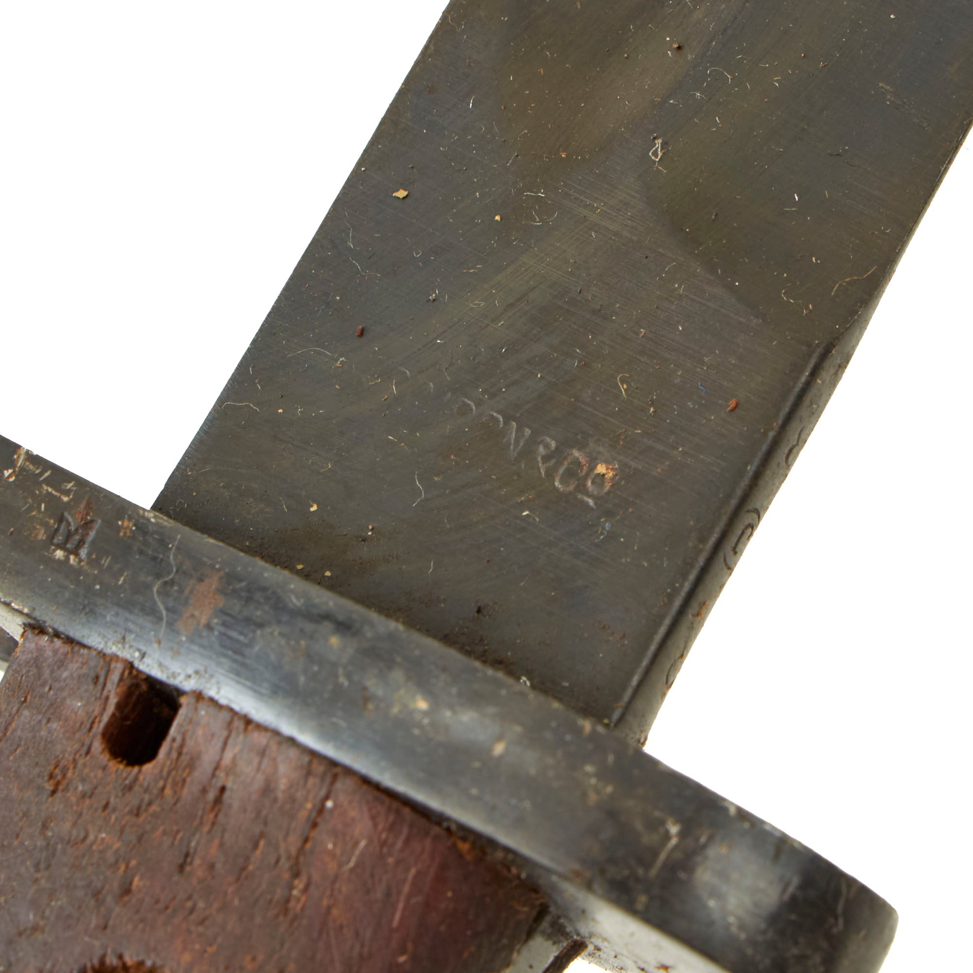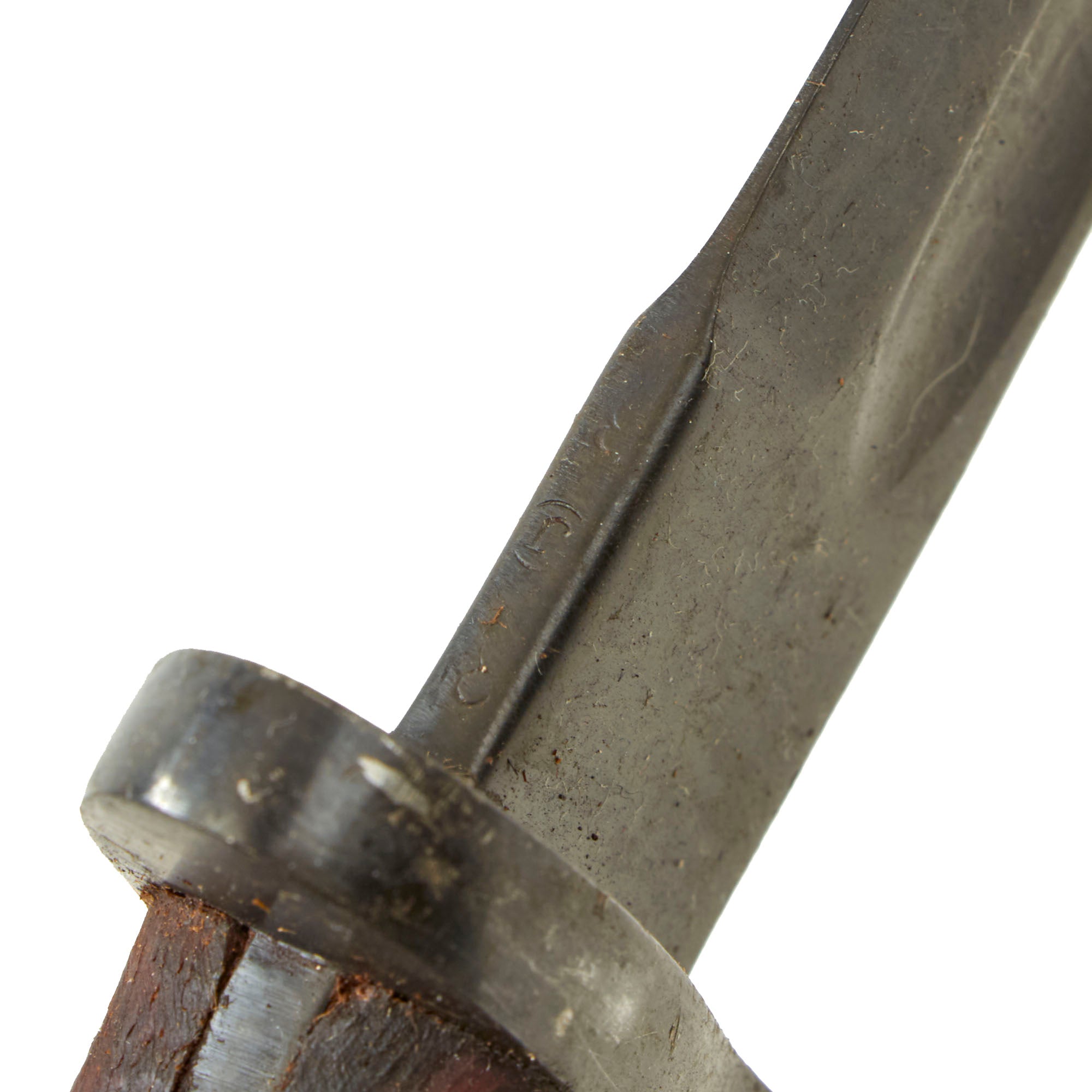 Each bayonet is without their original rolled steel scabbard but they do have functional bayonet locks. The condition and markings will vary, but they do show definite signs of service use. The blades may have been sharpened at one point, there will be finish loss, cracking and chips will be present in the grip scales and there is still some grease on them from long time storage.