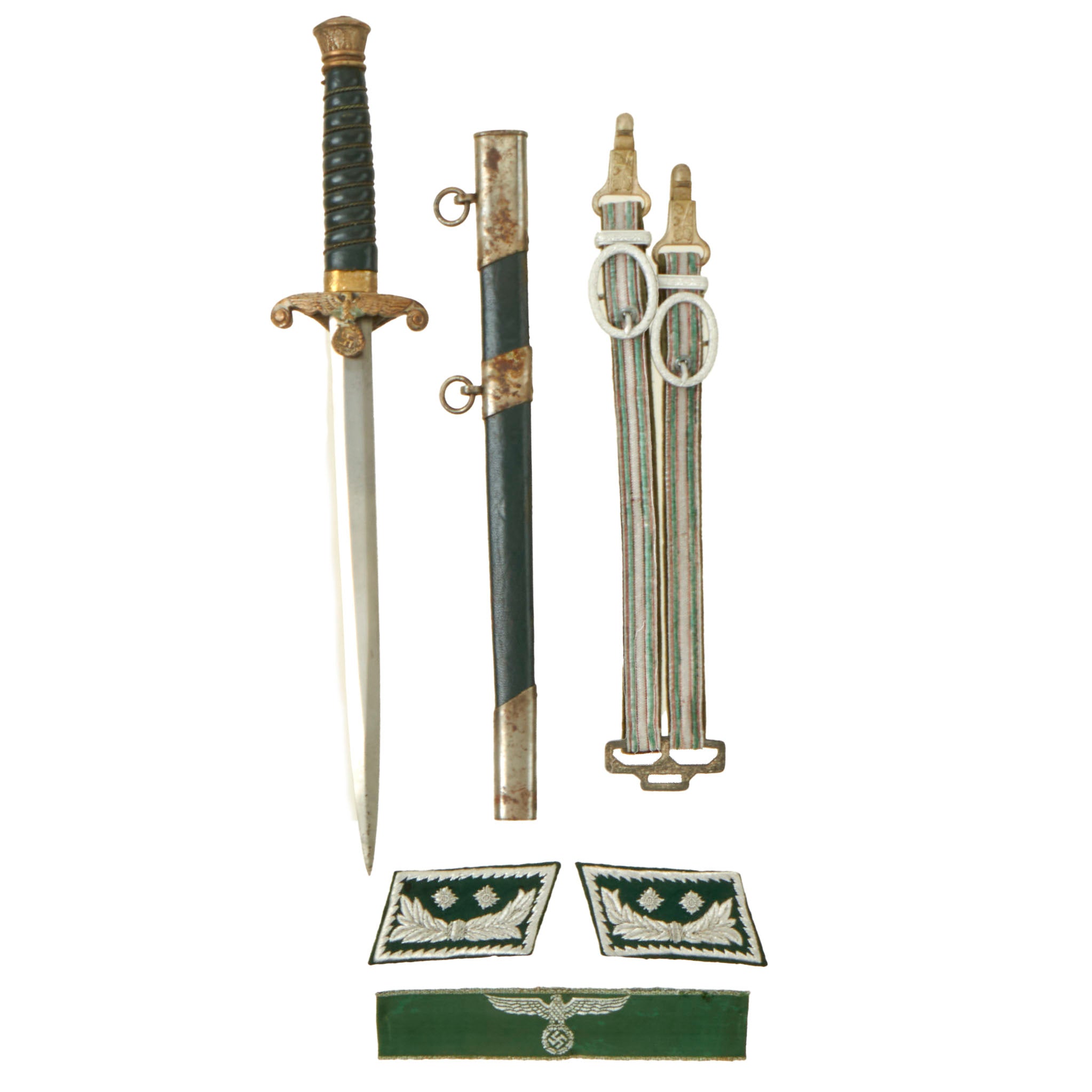 This is a truly remarkable set with a scarce dagger from the Land Customs Officials of WWII Germany, complete with other associated items and insignia. Comes ready to research and display!