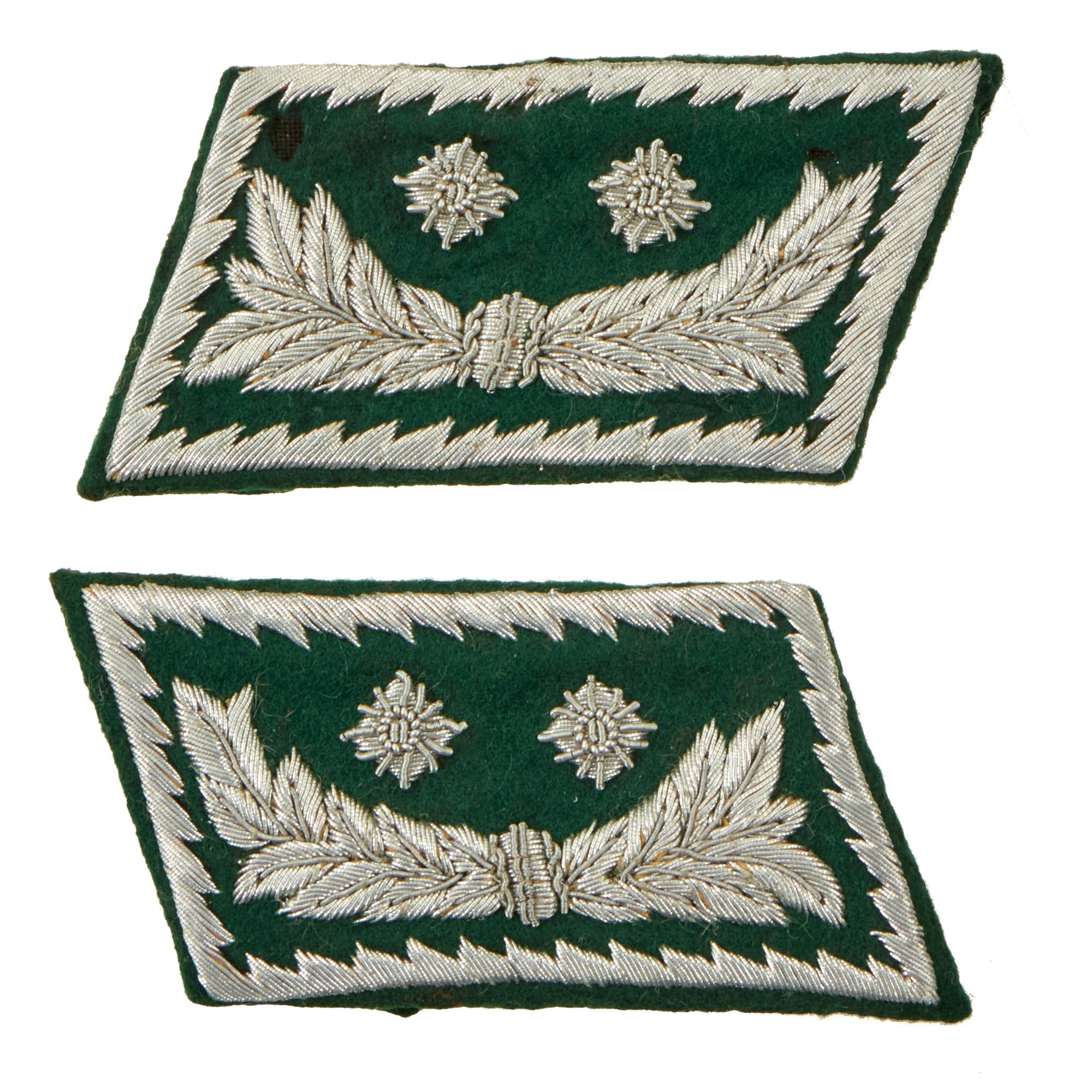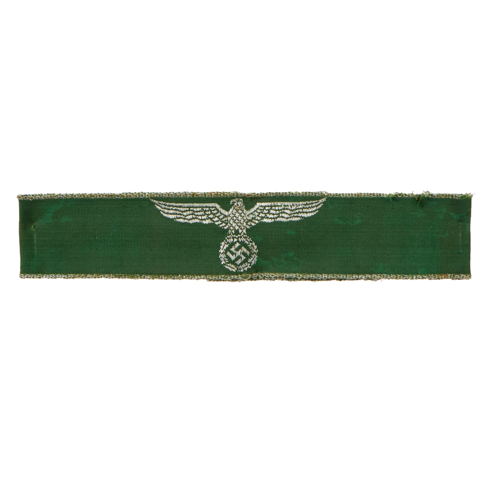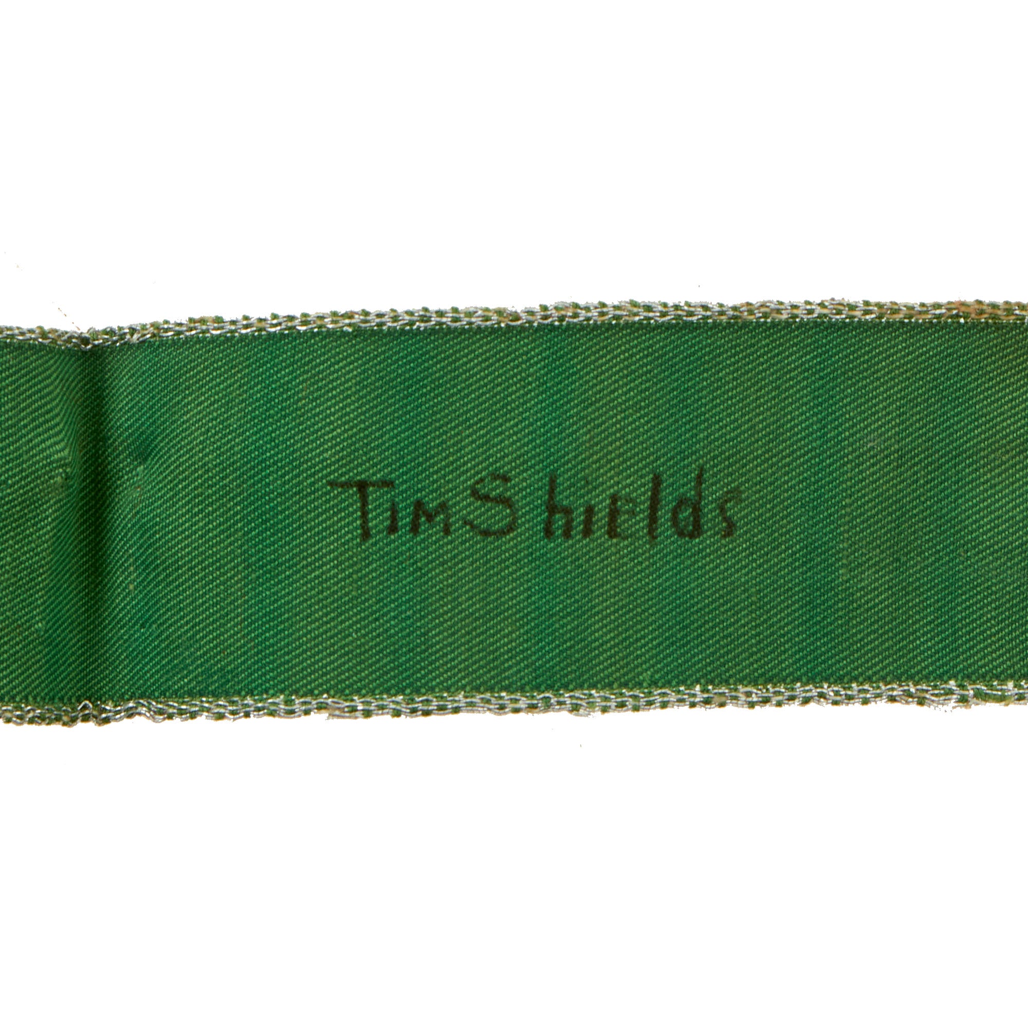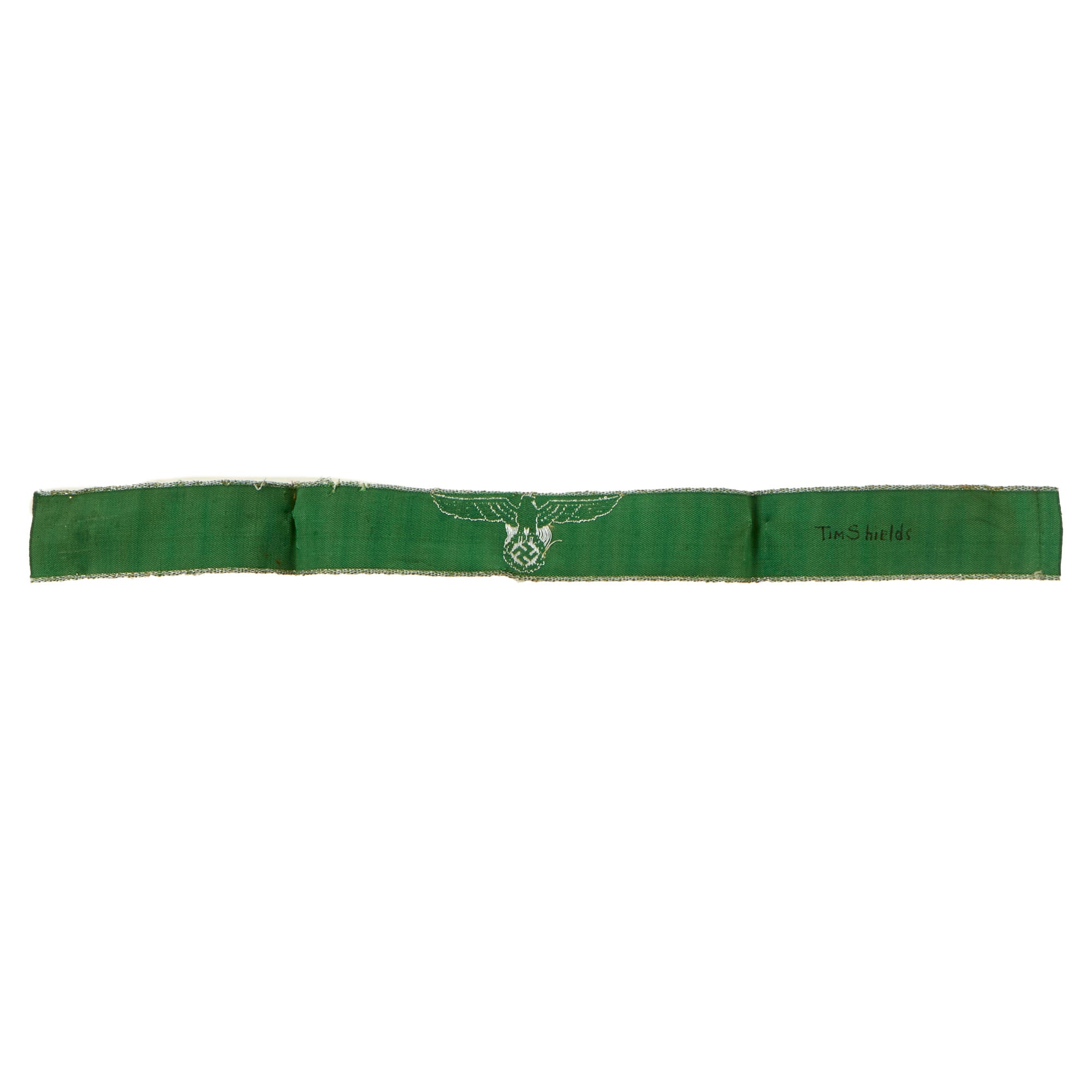 The last item in the set is a lovely service used Land Customs / Border Police green cuff title, which features silver bullion embroidery. It has silver on the edges, and there is a Reichsadler Eagle in the center. There is definitely wear to the edges and the exterior, which is darker than the interior, where it is signed Tim Shields. It measures 14 1/2" x 1 1/4", and really looks the business.