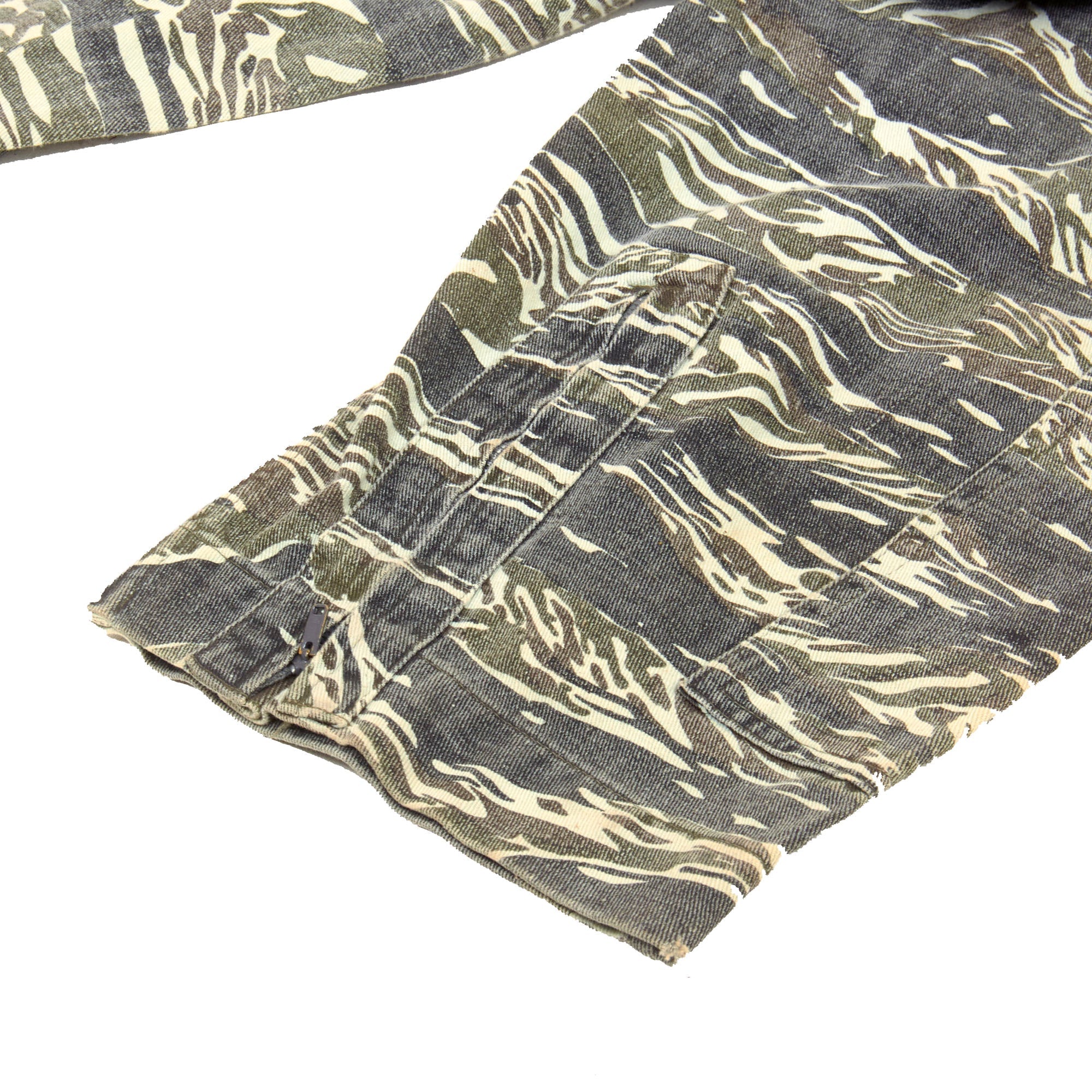 • Original Item: Only One Available. This is an excellent example of a scarce Vietnam War Flight Suit in the world famous Tigerstripe Camouflage pattern! Most closely associated with U.S. Marine Corps Aviators, these suits were worn by anyone who could purchase one. They have been observed in period photographs with Army and Air Force Aviators as well. These suits were also made famous by the 1991 film Flight of the Intruder where Willem Dafoe’s character wore a suit very similar to this while piloting his Douglas A-1 Skyraider.
