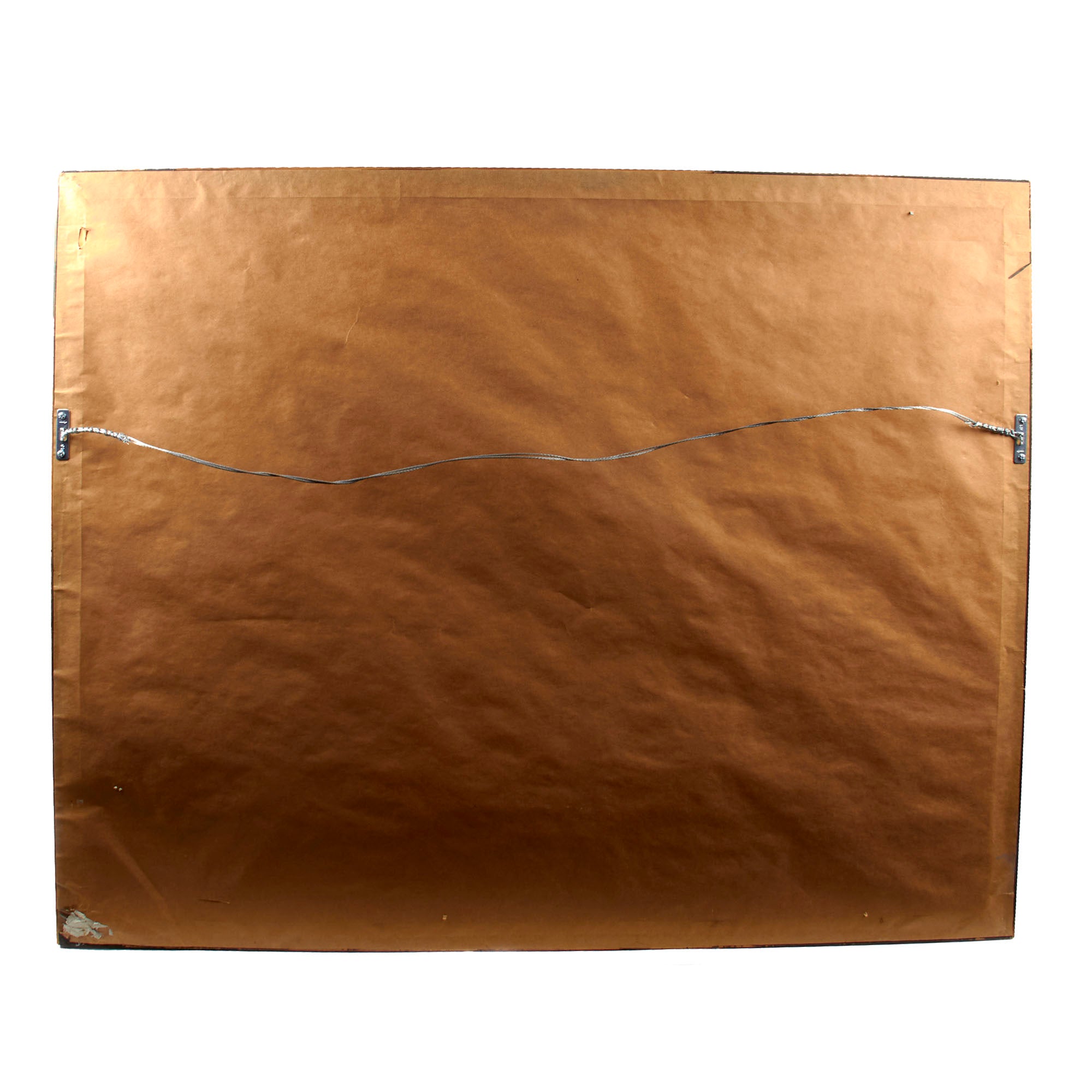 The frame measures 31½ x 38¼” and has some issues. The lower left portion appears to be backing away from the glass and should be reattached. Comes ready for further research and display.