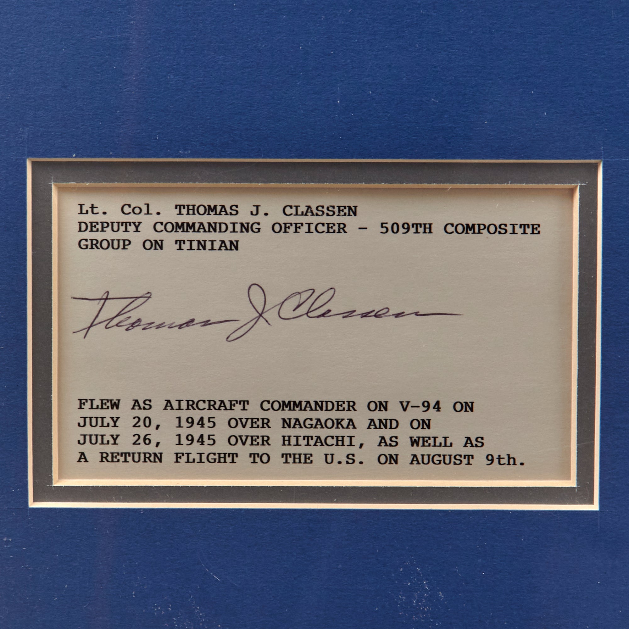 - Lieutenant Colonel Thomas J. Classen, Deputy Commanding Officer, 509th Composite Group on Tinian.