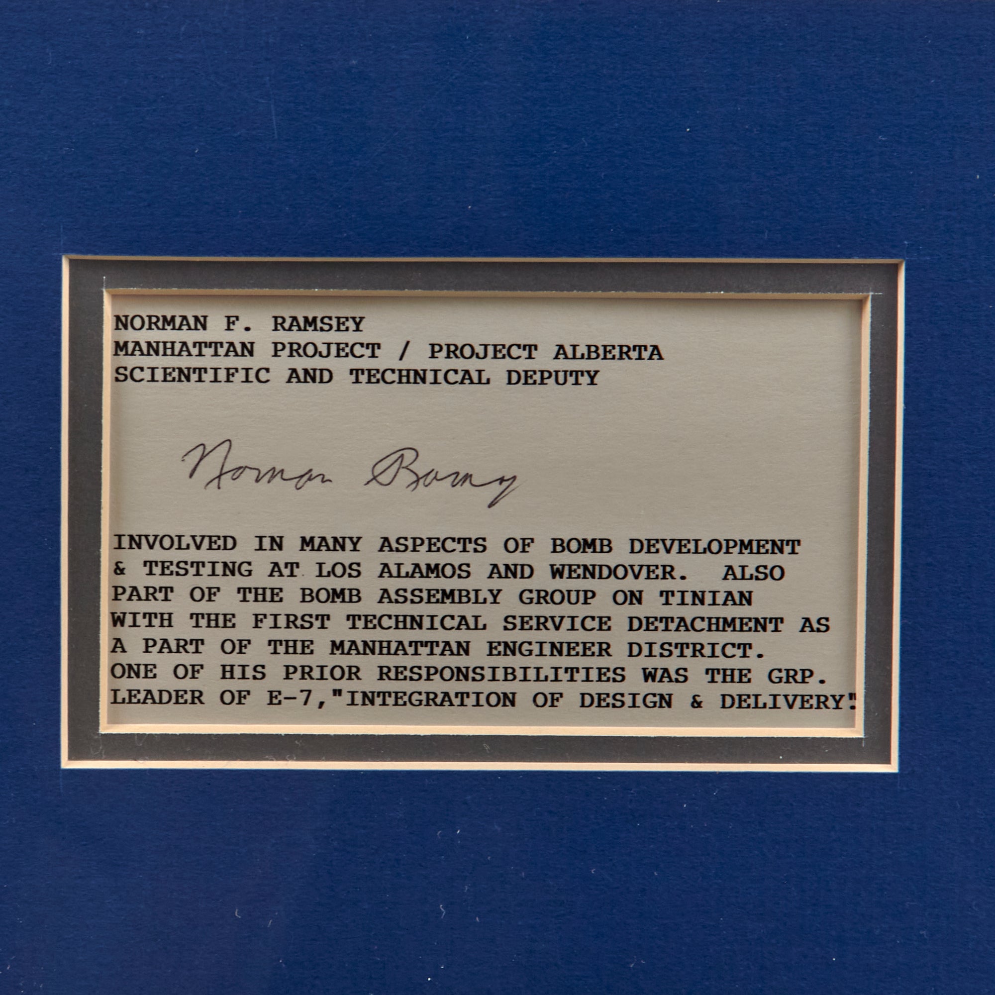 - Norman F. Ramsey, Manhattan Project / Project Alberta Scientific and Technical Deputy.