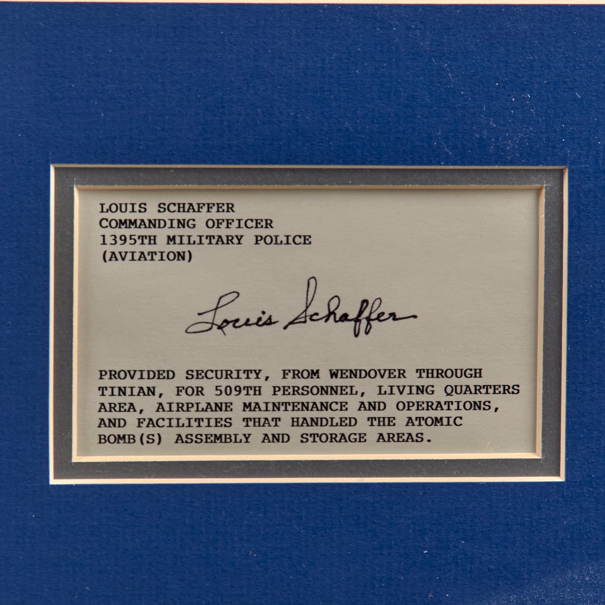 - Louis Schaffer, Commanding Officer, 1395th Military Police.