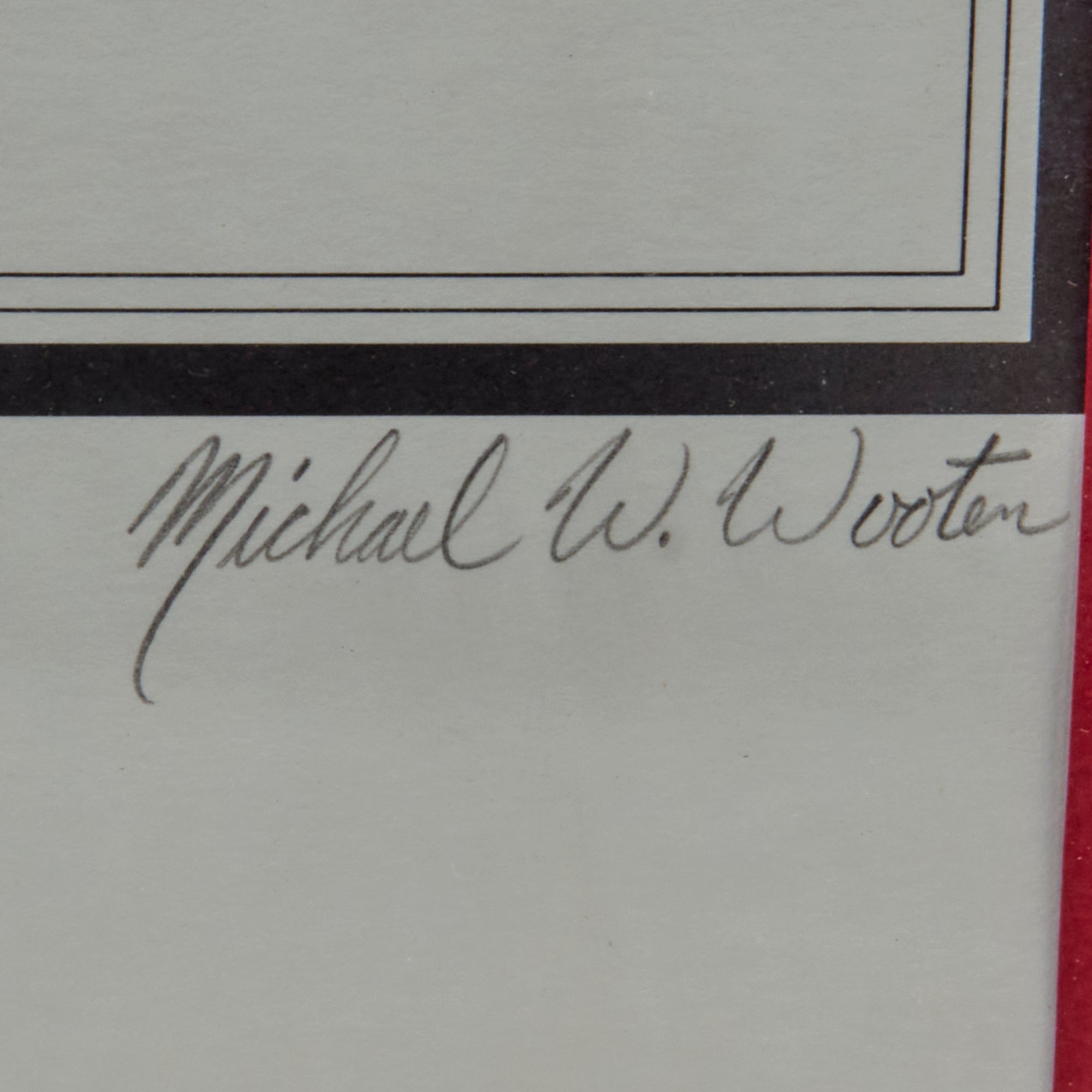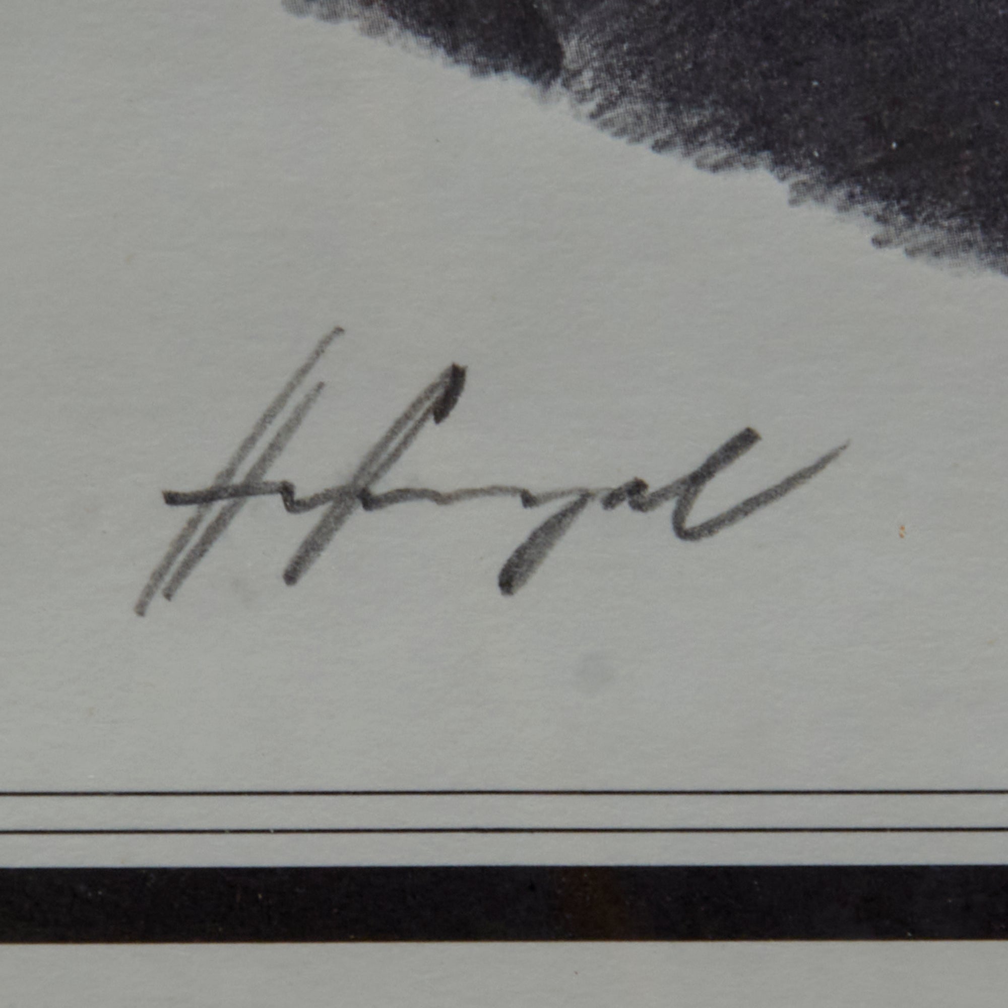 This is a lovely print of Hans Siegel by Michael Wooten which is signed by Siegel and numbered 816/1100. It is signed to the left under the portrait of Siegel.