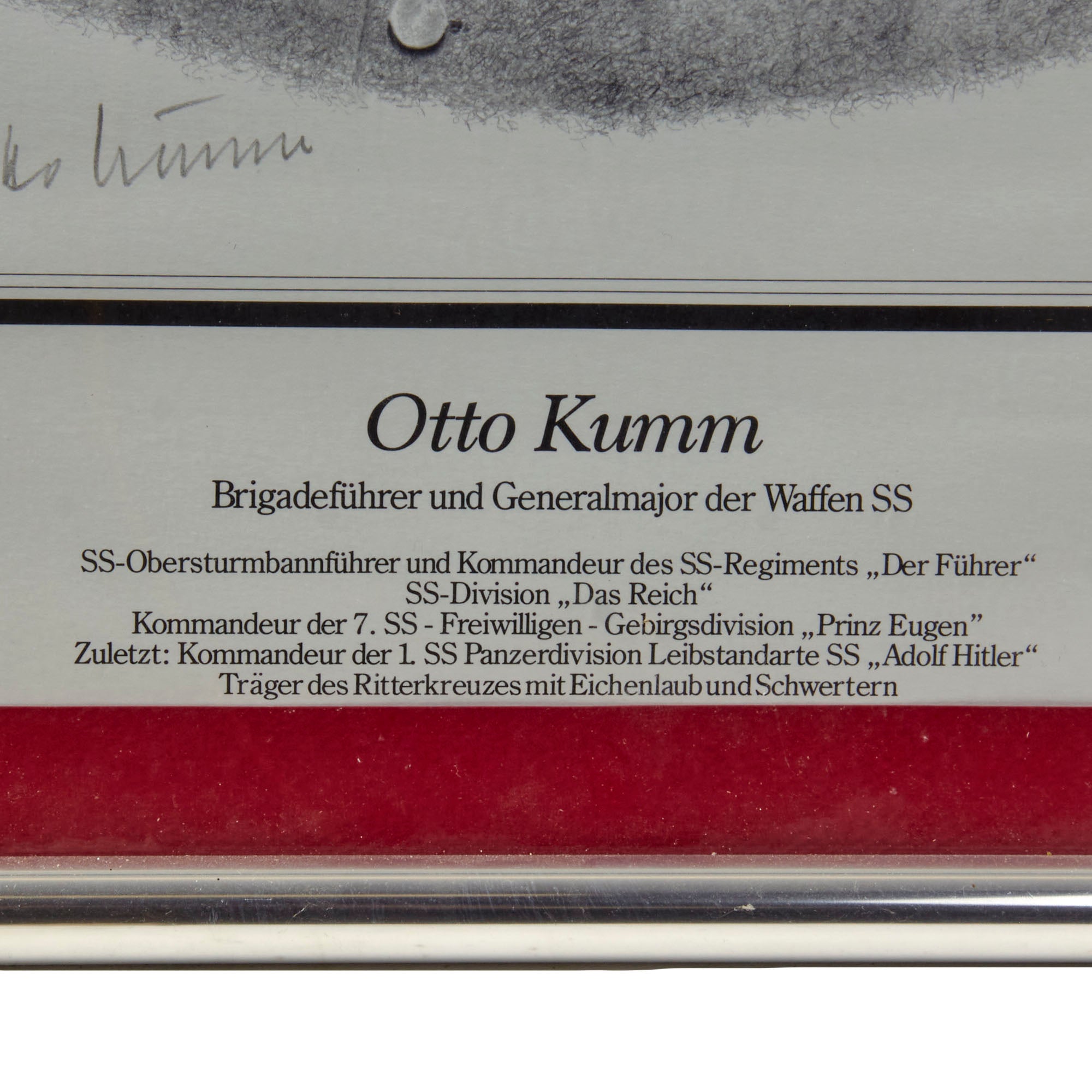 • Original Item. Only One Available. Otto Kumm (1 October 1909 – 23 March 2004) was a German military officer who commanded two Waffen-SS divisions in the latter stages of World War II and was a recipient of the Knight's Cross of the Iron Cross with Oak Leaves and Swords.