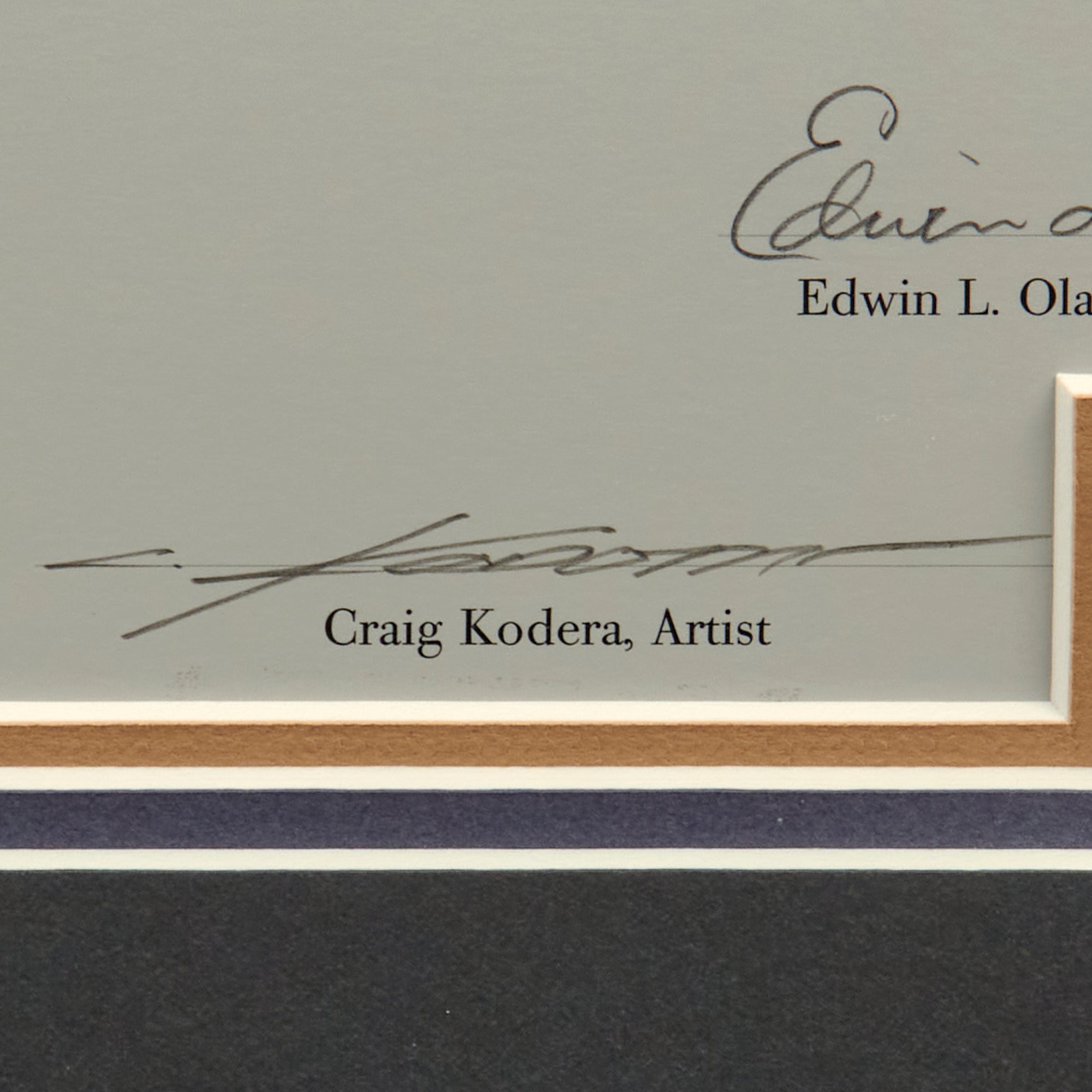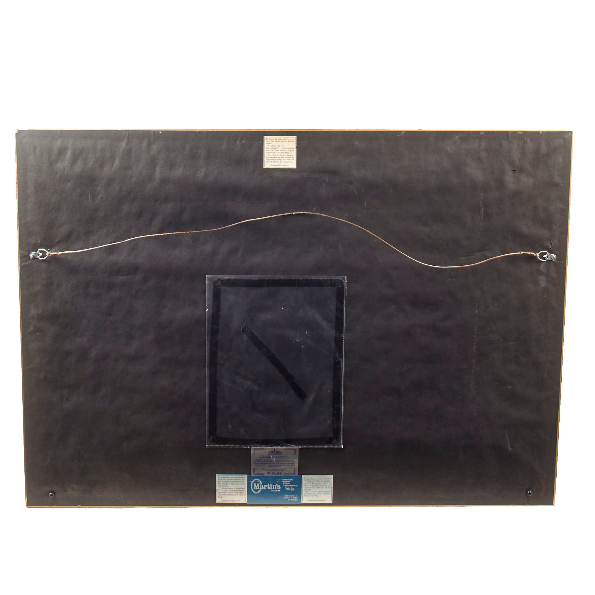 The frame measures 28 ½ x 35 ¾” and no longer retains the certificate of authenticity, though there is a sleeve where one used to be.