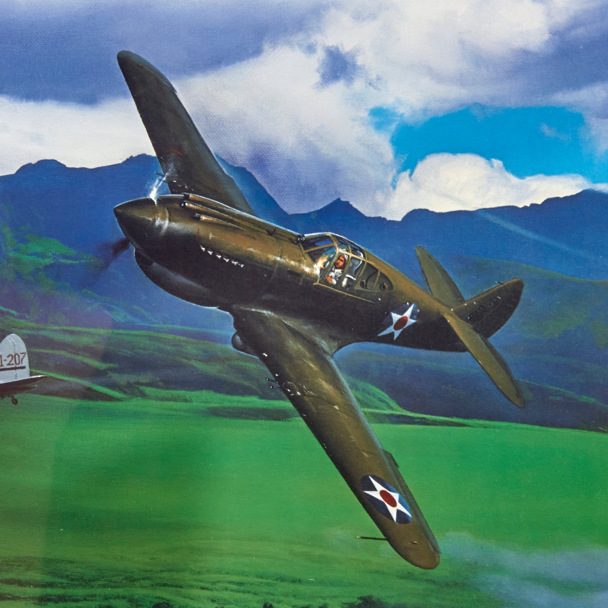 Craig Kodera's tribute to the Americans who got airborne on the "date which will live in infamy." More than a thrilling image of a lone P-40B and Japanese Val, this special limited edition fine art print is countersigned by Brigadier General USAF (Ret.) Kenneth Taylor, the pilot pictured, and Zenji Abe, a Lieutenant Commander of the Imperial Japanese Navy, who took part in the raid.