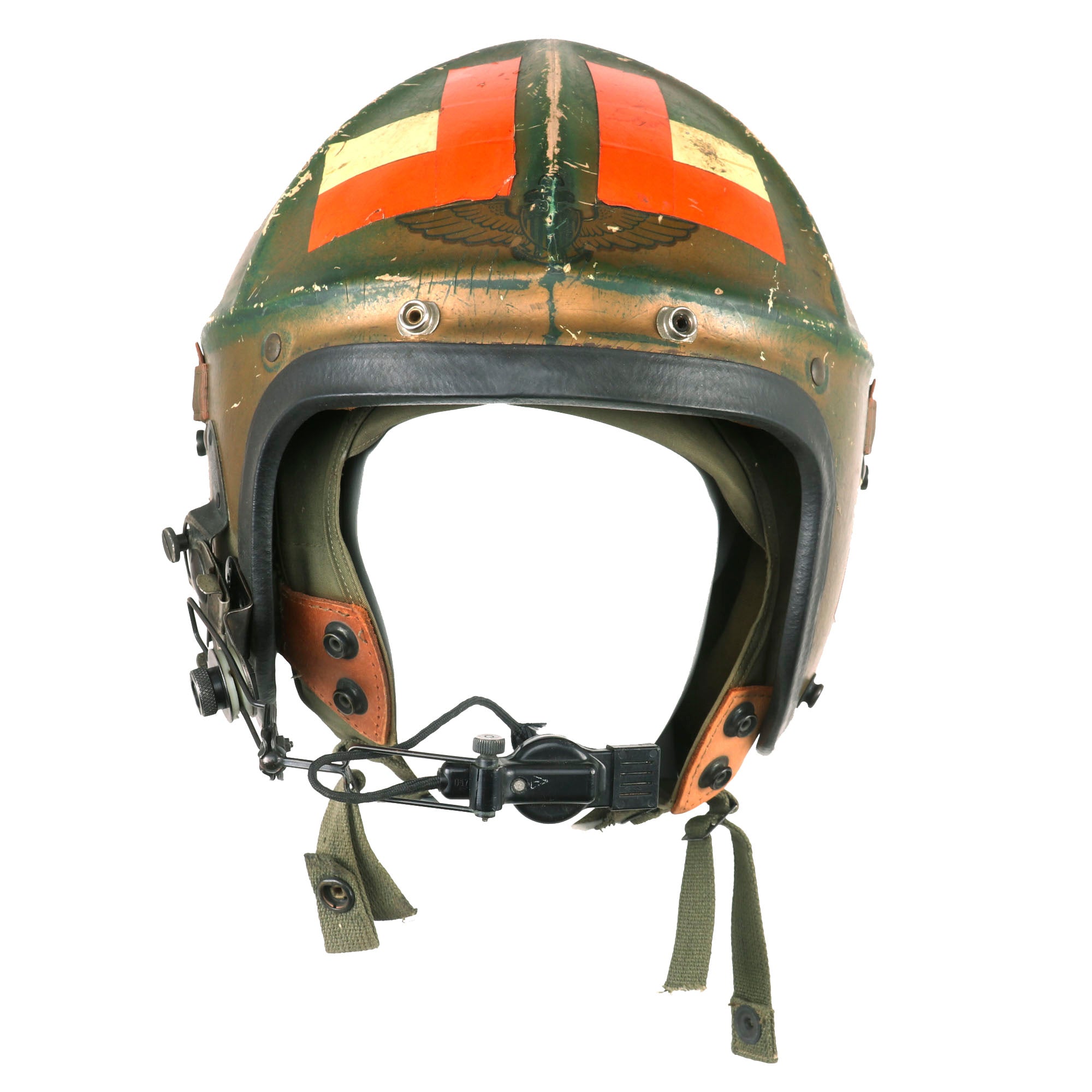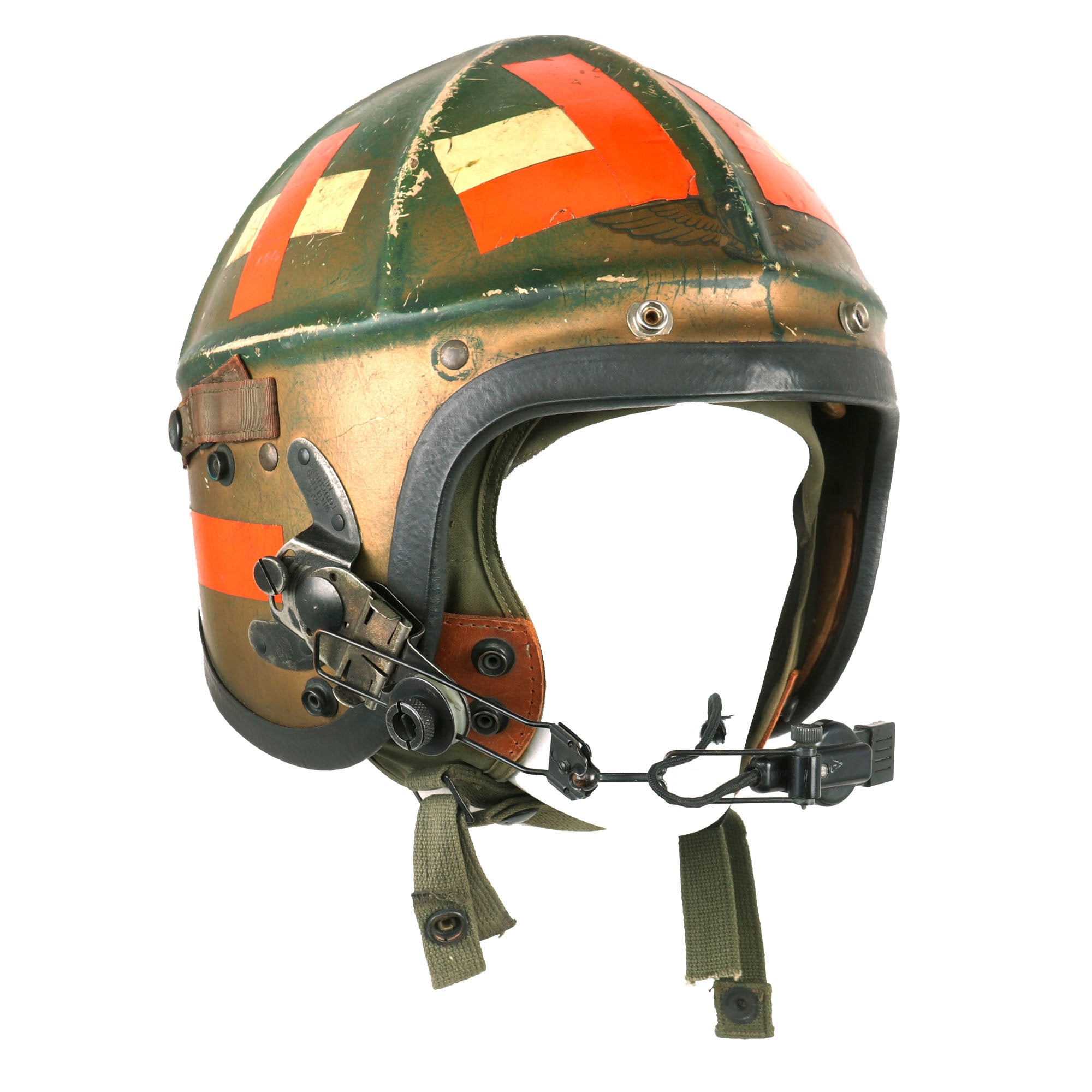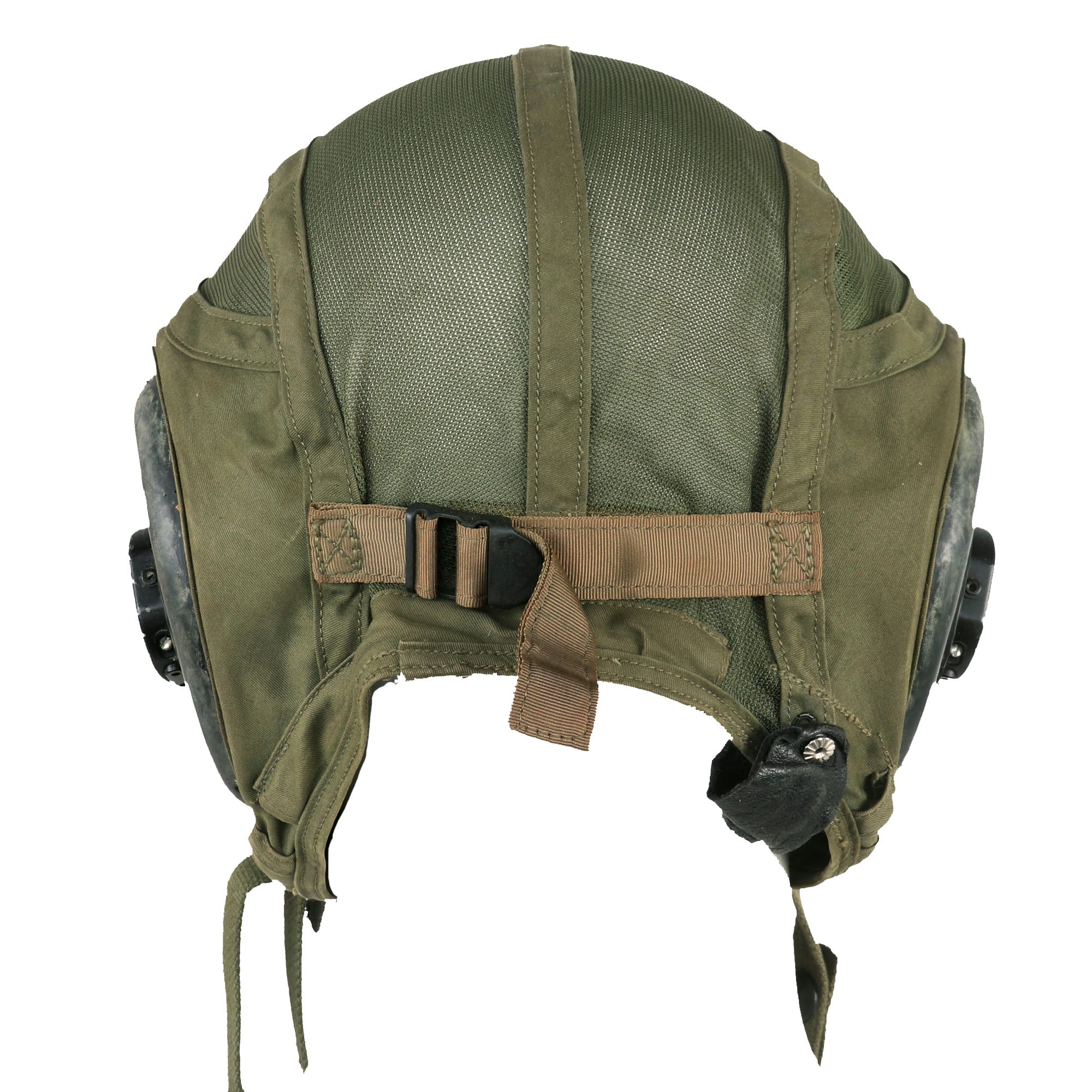 This set comes with the original 62.H-4 interior helmet with headphones by Gentex, in Size 7¾. The headphones are P/0H87A/U PERMOFLUX RHR-10. The microphone of the helmet has come off and we weren’t able to get it put back on.