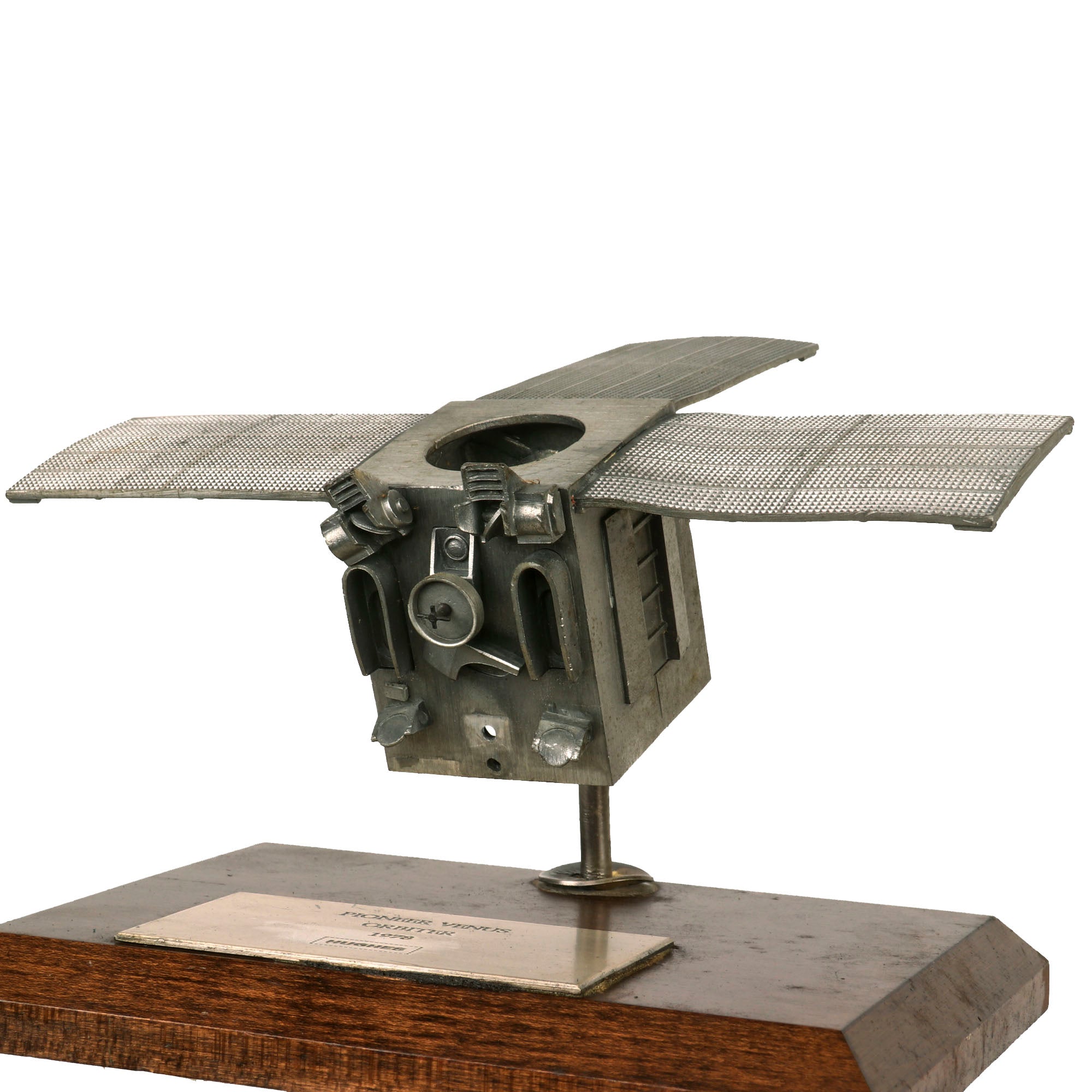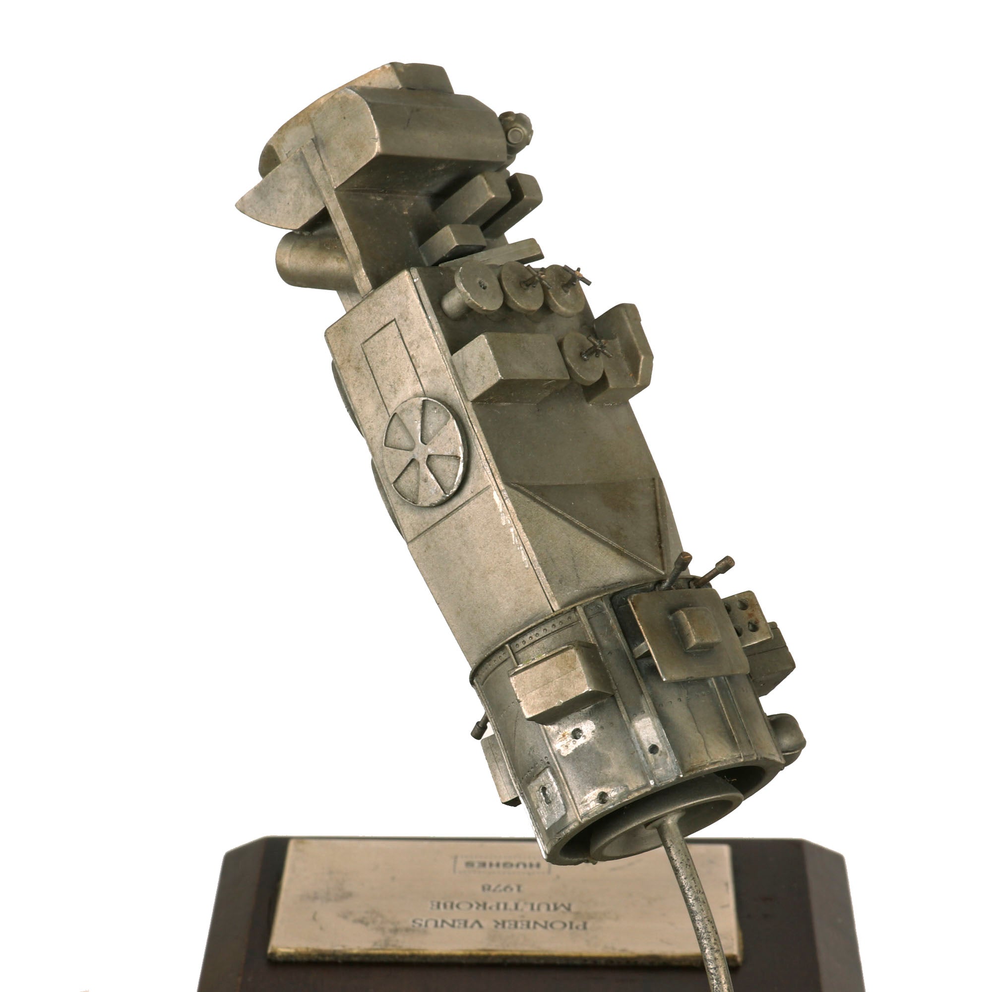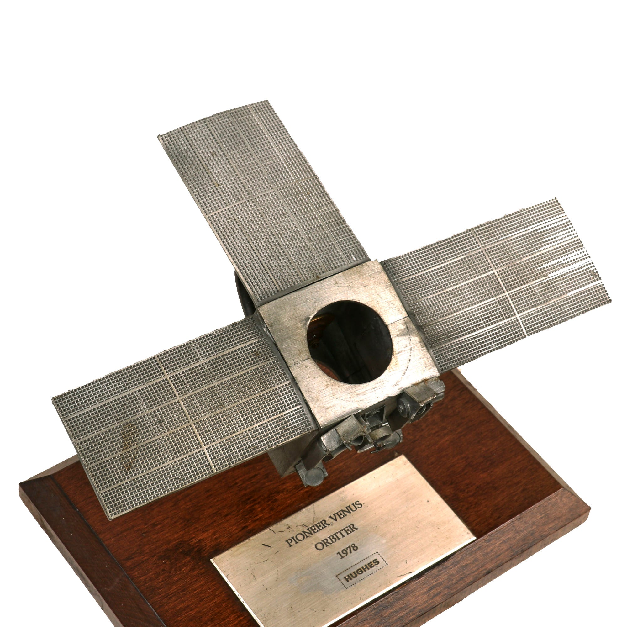 - Pioneer Venus Orbiter - Launched in May 1978 atop an Atlas-Centaur rocket, the spacecraft was inserted into an elliptical orbit around Venus on December 4, 1978. It returned data from Venus until October 1992. The model measures 8 x 6½ x 5” and is a great example, but it may be missing some parts. Some paint is chipping from the base. Dated 1978 by HUGHES.