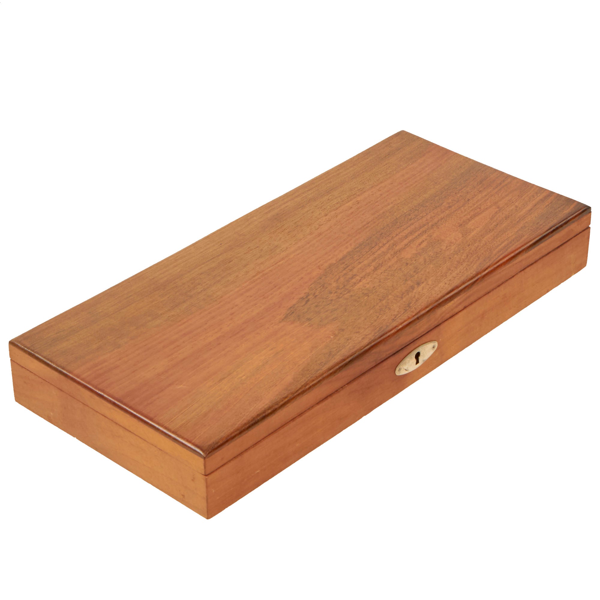 To make this offering even better, it came to us with a fantastic custom wood case, which measures approximately 15 1/8" x 7" x 2", and has different compartments inside, all red plush fabric lined. These are for various accessories one might use with the pistol, and in the case is a very nice COLTS PATENT marked bullet mold for round and conical bullets with a built in nipper to take off the casting stem, as well as an example of each type of bullet. There is a lovely worn bronze powder flask, which is dented and missing the nozzle, and there is also a lovely tin of percussion caps. The case is lovely, and at one time had a lock at the front, however it has been disabled.