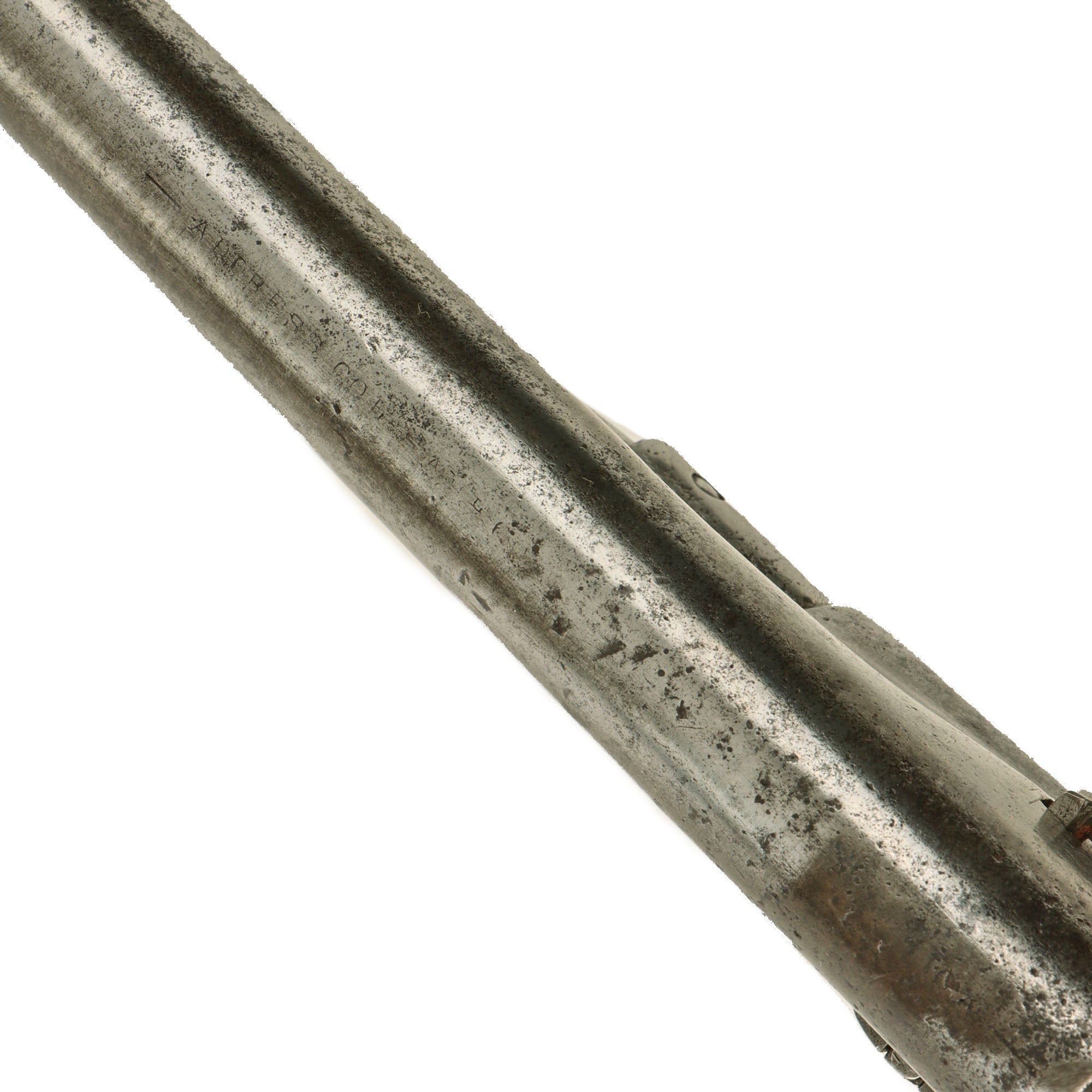 Functionally, the action is excellent, with good indexing and a strong cylinder lockup. The mainspring is strong, and we did not notice any of the usual finicky behavior we usually see on Civil War era Revolvers. The bore is in very good condition, showing strong rifling with a partly bright finish. There is some oxidation and fouling overall, as well as a bulge on the right side from a stuck cartridge about 3 inches from the forcing cone. The cylinder cap nipple cones are in very good condition, and all six are still clear.
