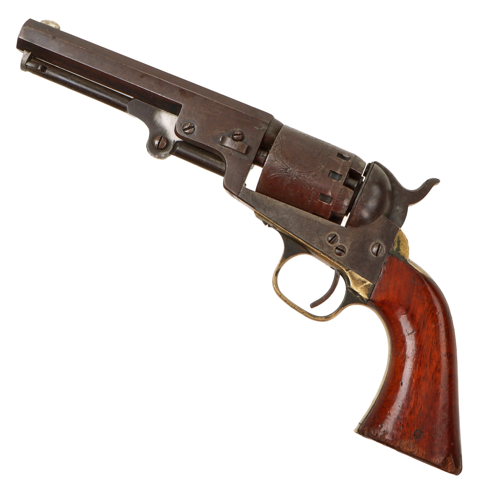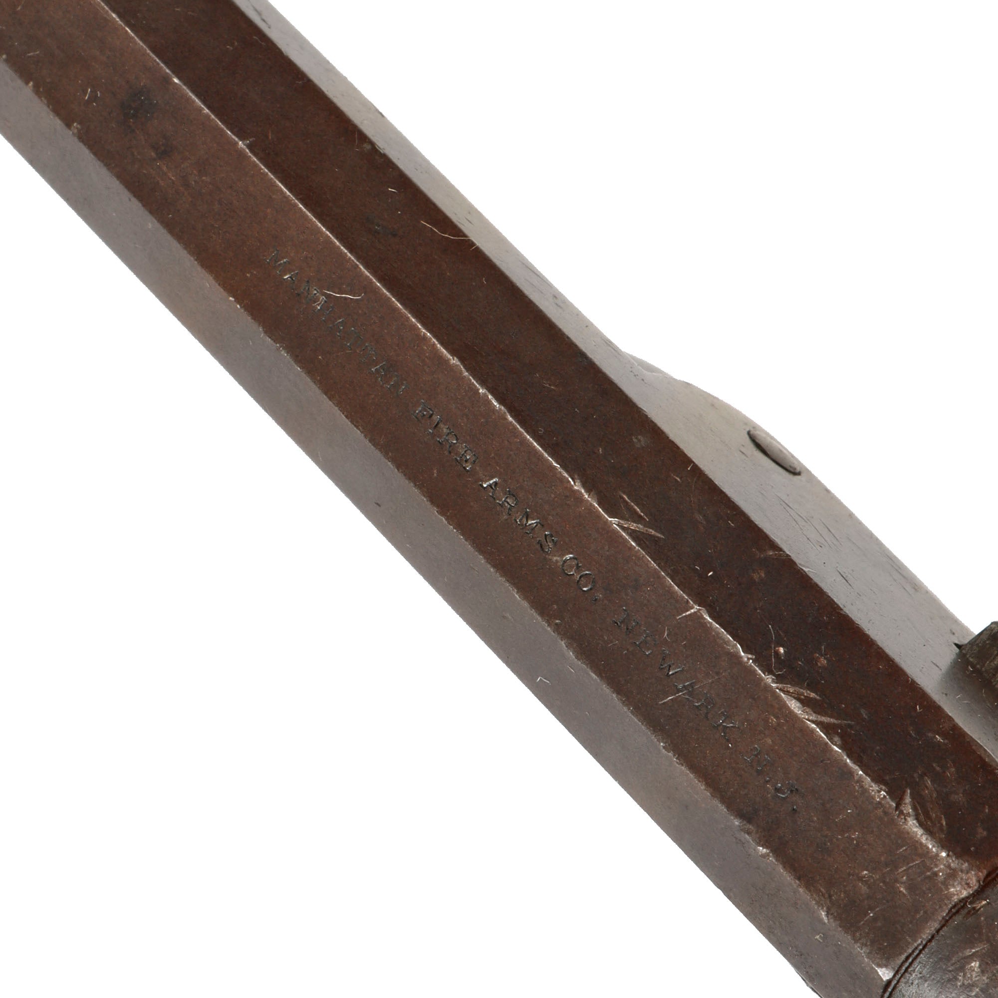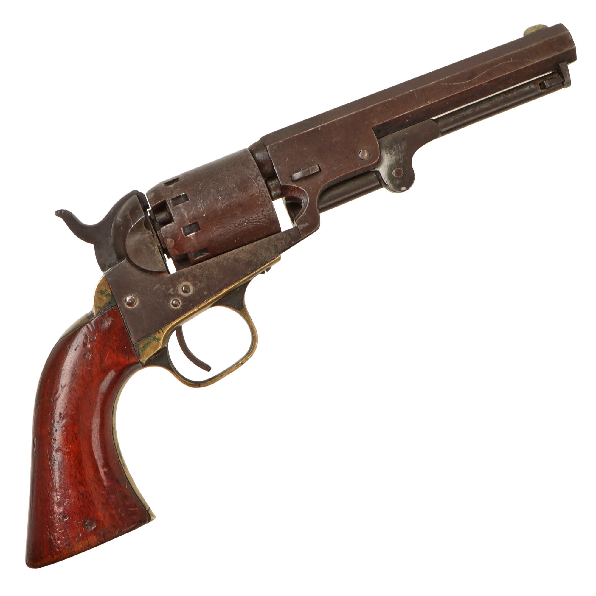 Original Item: Only One Available. Well THIS is a real peach! This is a very nice service used condition Civil War revolver, made by the MANHATTAN FIREARMS COMPANY of NEWARK, N.J.. The company was originally founded in 1856, mainly to make Colt-style revolvers once their patent ran out in 1857. This revolver looks just like a Colt Navy but it has a five shot cylinder, instead of the Colt's six.