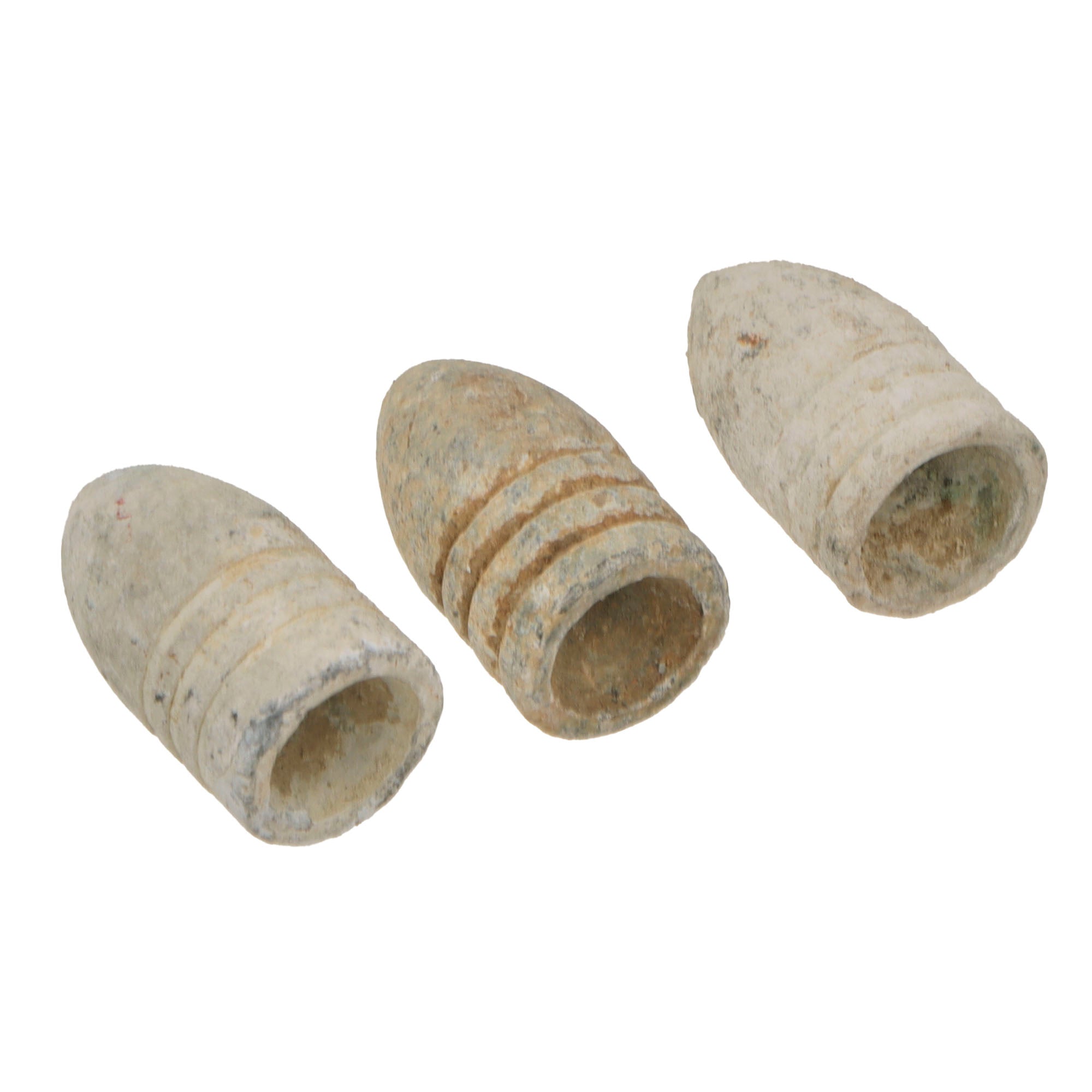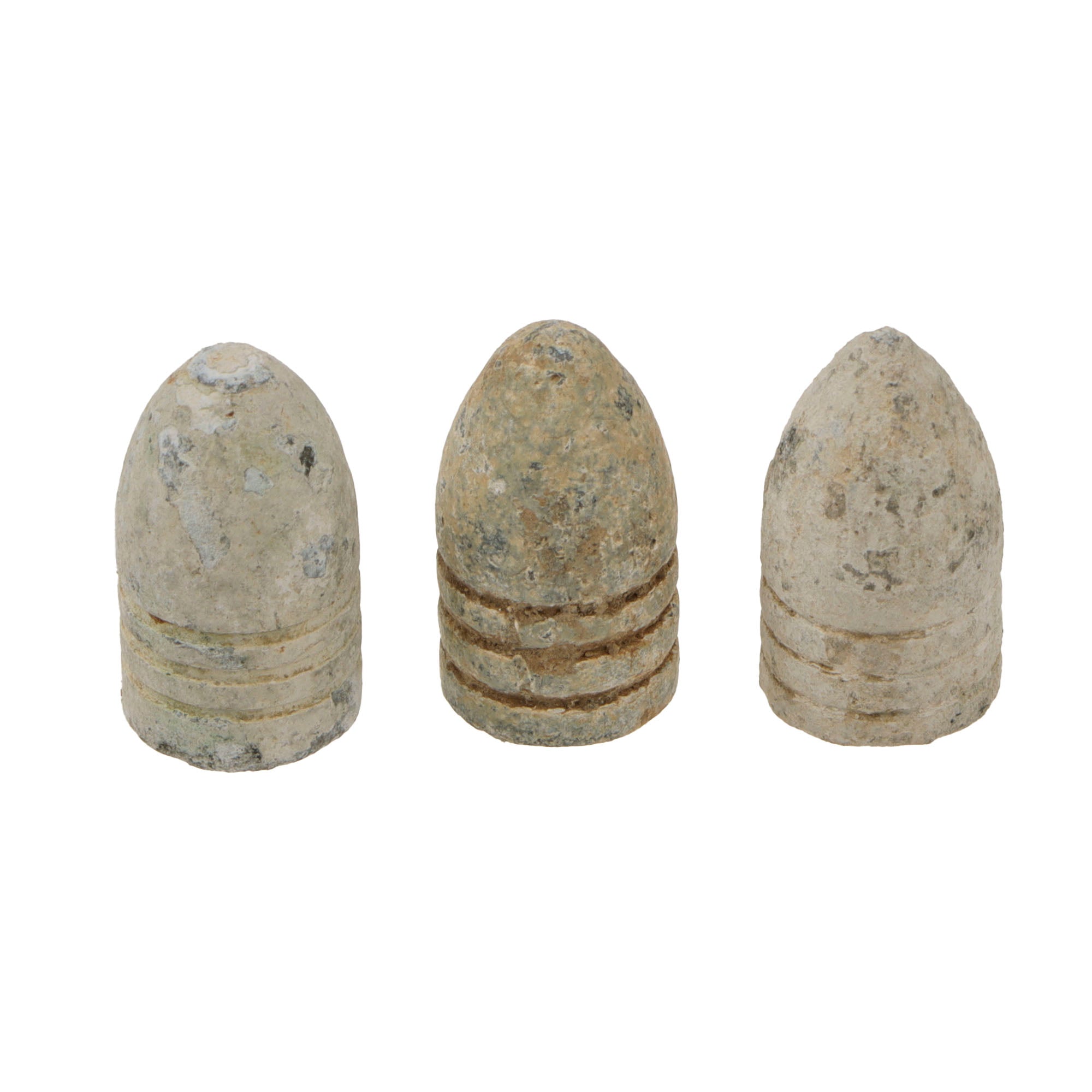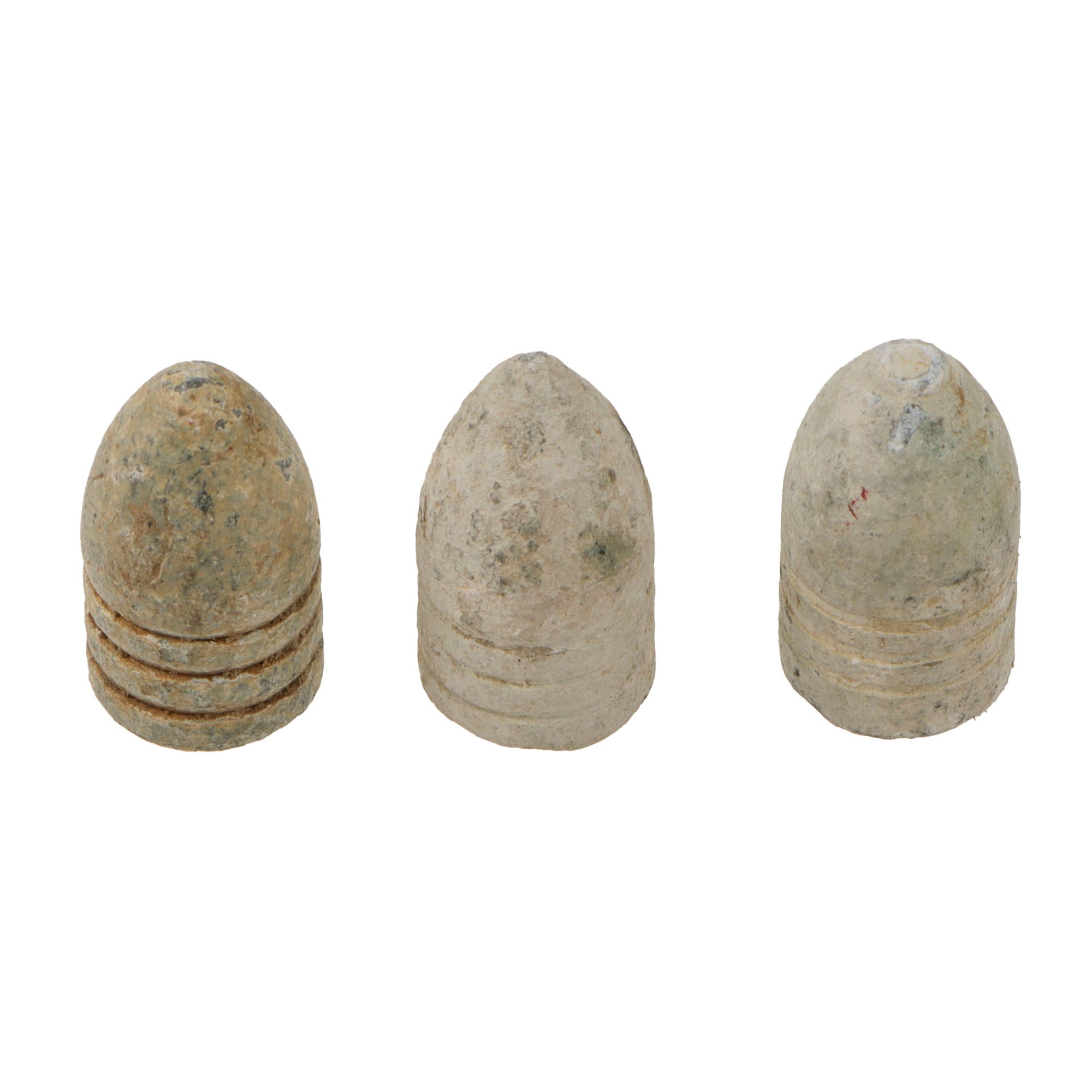 - Three Civil War ground dug bullets, all appearing to be of the .58 Caliber Union Minie Ball variety. Varying conditions.