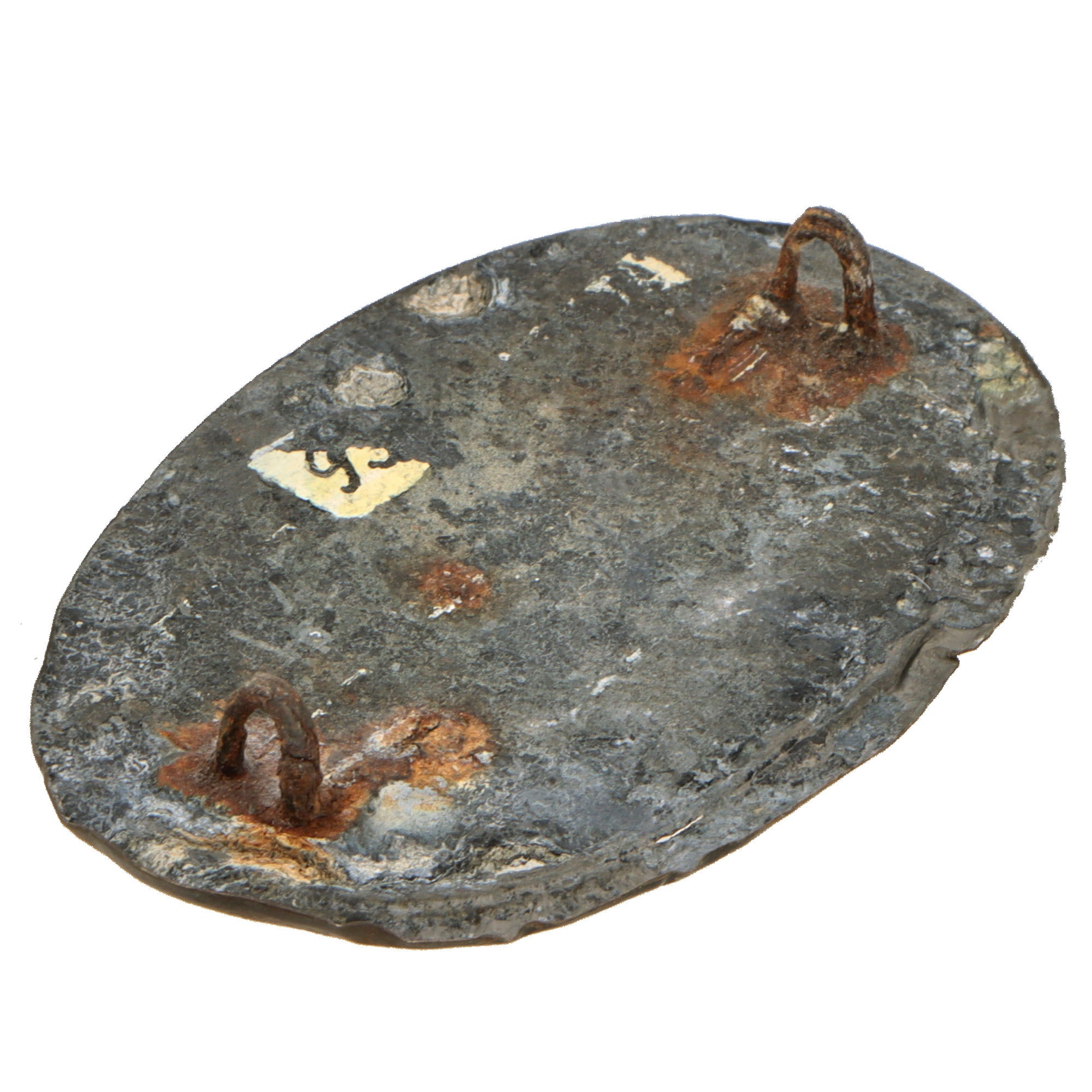- Pattern 1861 Cartridge Box Plate: This is a genuine Pattern 1861 pattern Federal issue leather cartridge box front plate. This example was dug and is missing much of the lead content on the back, but this example does retain both of the iron retention loops, despite very heavy oxidation. There is remnants of an old dug number painted on.