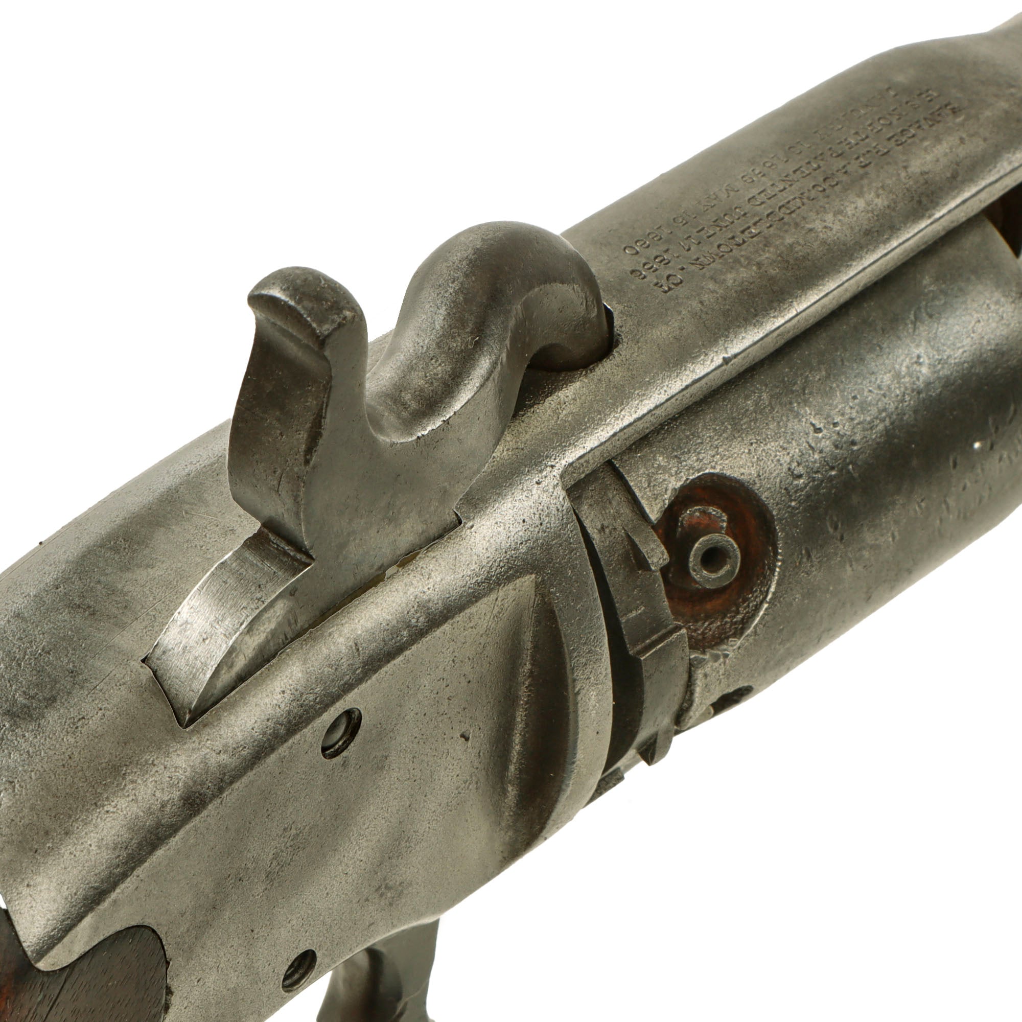 These antique guns are not sold in "live" condition, and are not tested for the the ability to feed or load any type of cartridge. They are sold as collector's items or as "wall hangers" not for use, and we make no guarantees regarding functionality aside from what is stated in the description. Any attempt at restoring an antique gun to be operational is strongly discouraged and is done so at the risk of the customer. By purchasing an antique gun from IMA you thereby release IMA, its employees and corporate officers from any and all liability associated with use of our Antique guns.