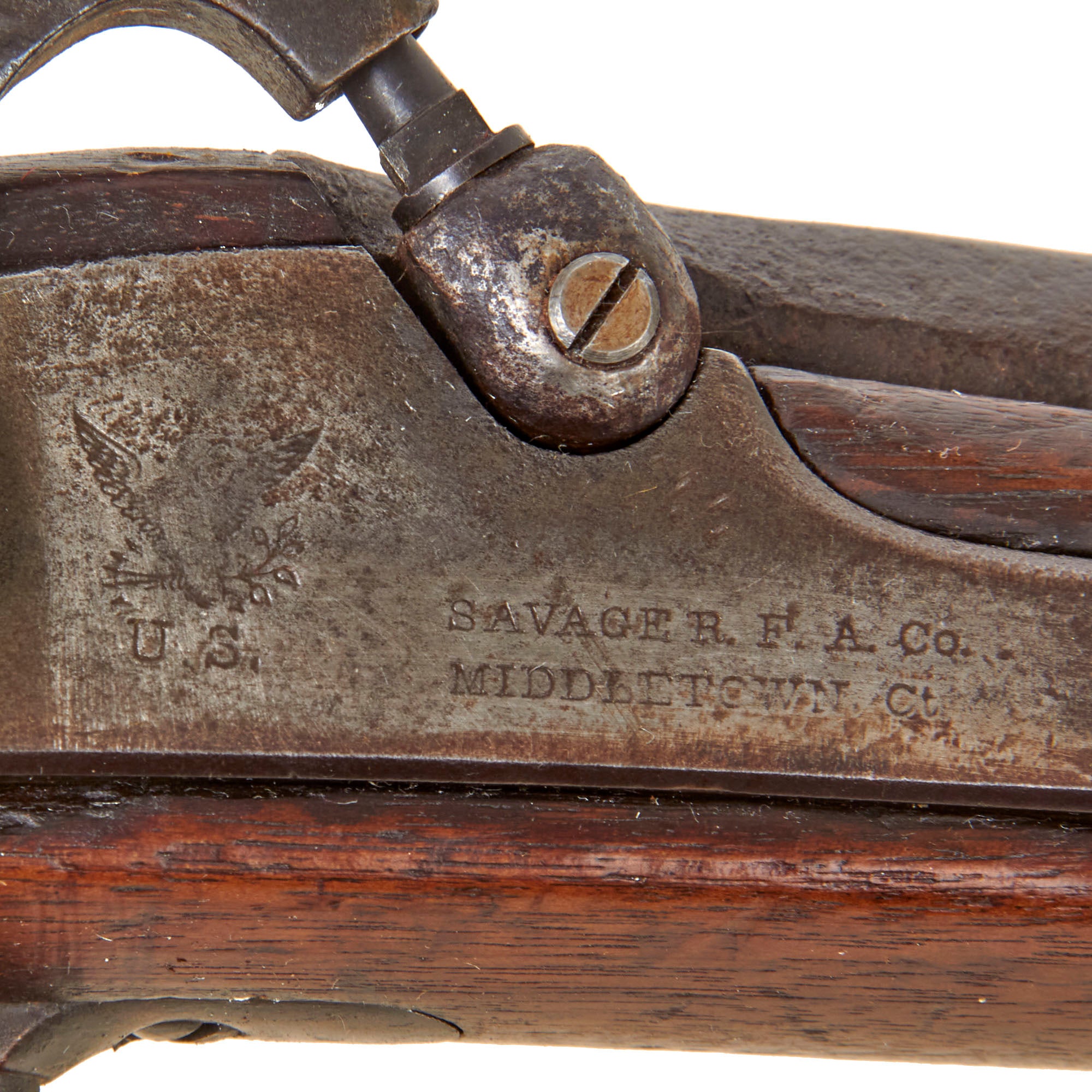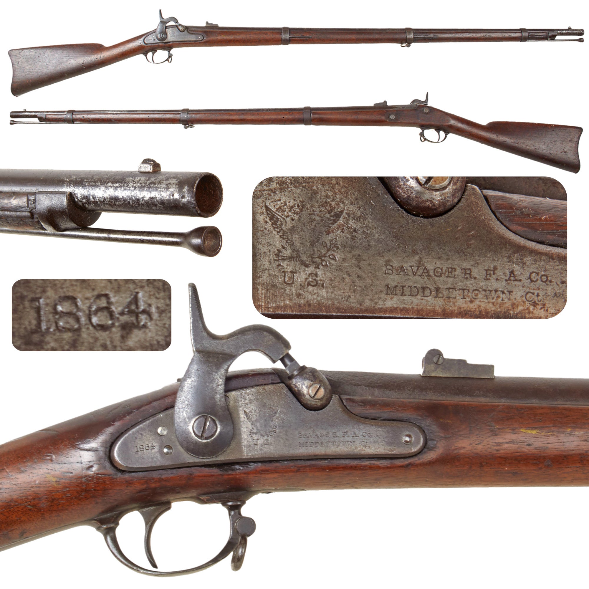 The Springfield Rifle cost $20 each at the Springfield Armory, where they were officially made. Overwhelmed by the demand, the armory opened its weapons patterns up to twenty private contractors, including Savage Revolving Fire Arms Company of Middletown, Connecticut circa 1862-64. Savage was a major contractor in the Civil War who supplied the government with some 25,500 such muskets for the Army over the period 1862-1864. As with other contractors, they did not change to the model 1863 specifications, so there are examples of Model 1861 rifled muskets dated 1864 and possibly later.