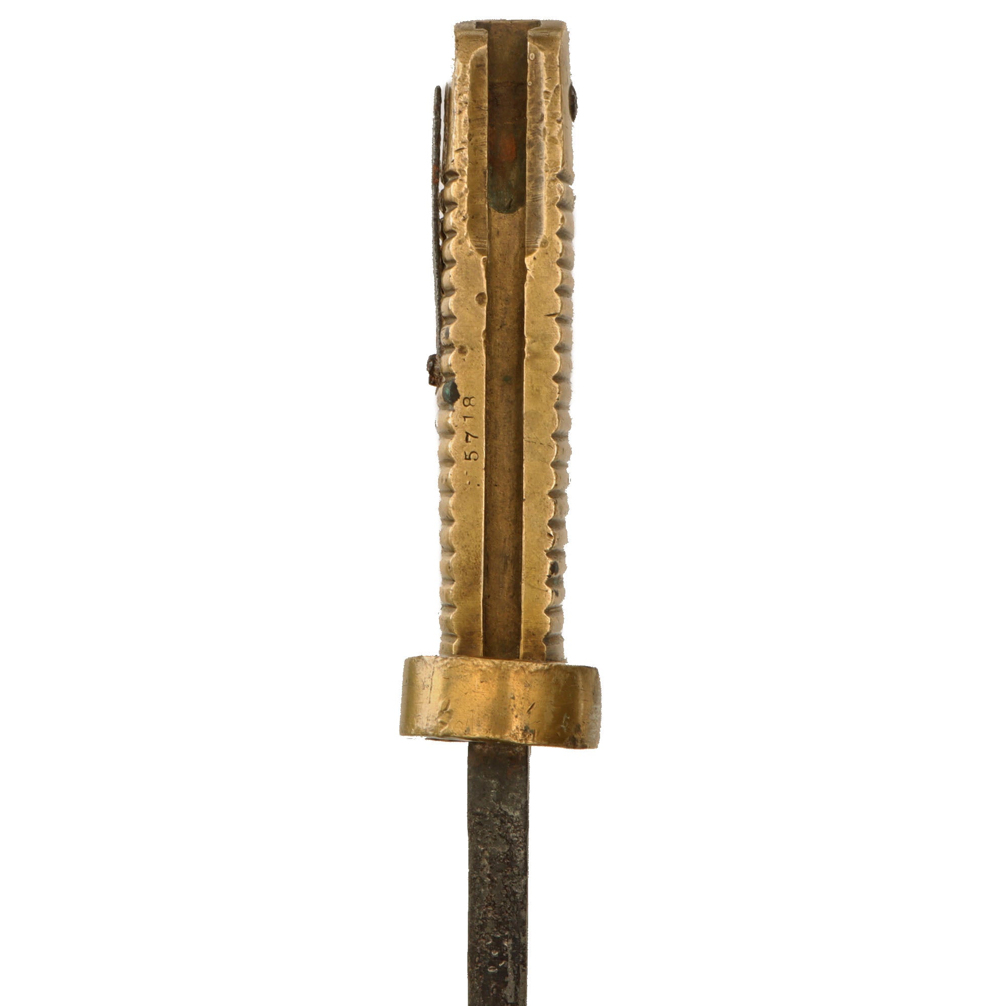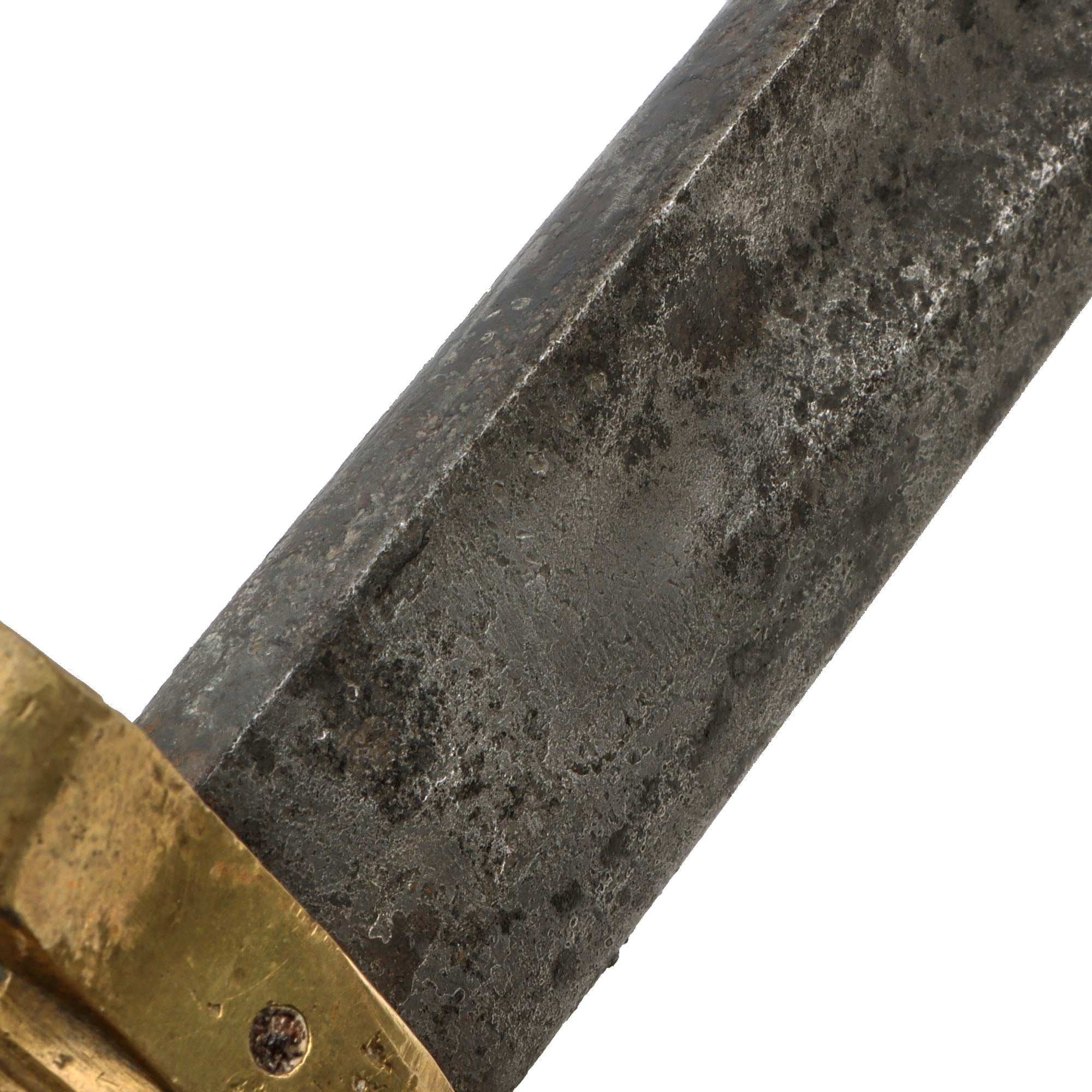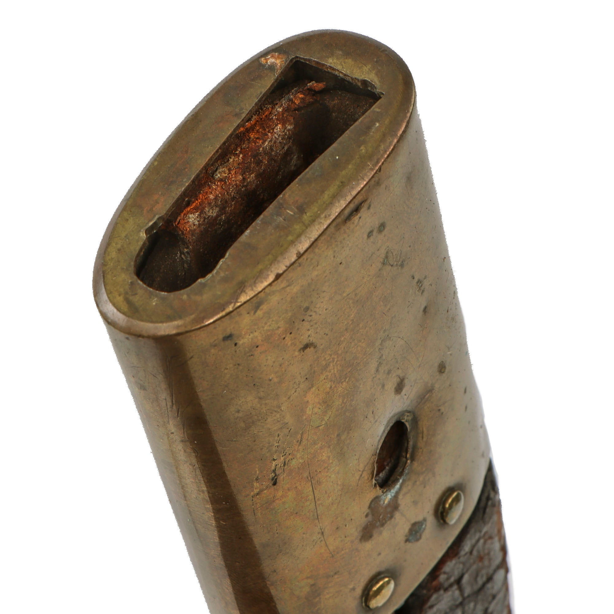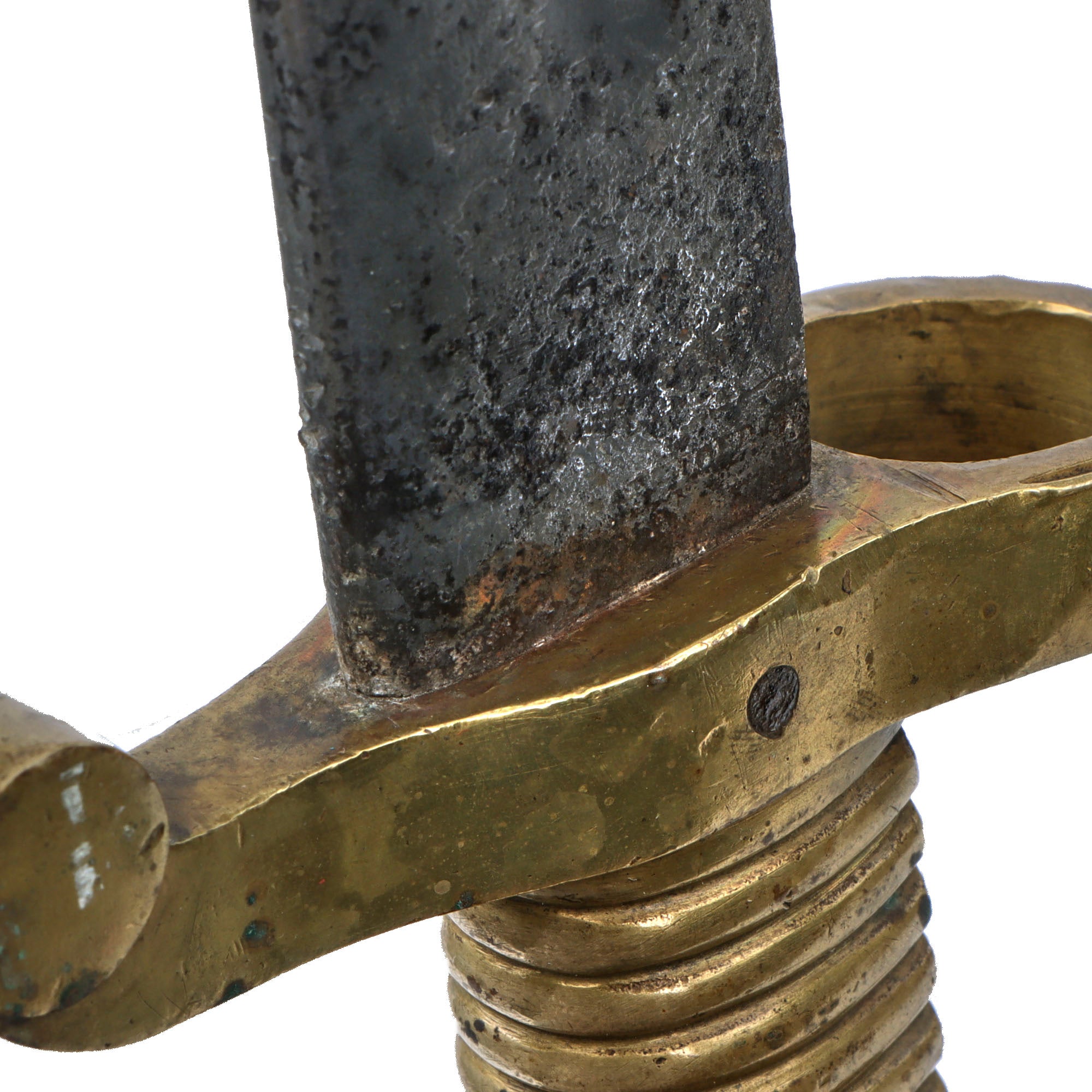 Original Item: Only One Available. Here we have a good example of the rare brass hilted bayonet for the U.S. Civil War "Plymouth" Navy Percussion Rifle. 10,000 of these rifles were made by Eli Whitney’s manufactory, Whitney-ville, based on an 1861 contract to the U.S. Navy. Five sample rifles were delivered in October 1862 and regular deliveries started in February 1863, with 5,300 delivered that year and the remaining 4,695 in 1864. Collins was contracted to produce an equal number of bayonets to go with the rifles.