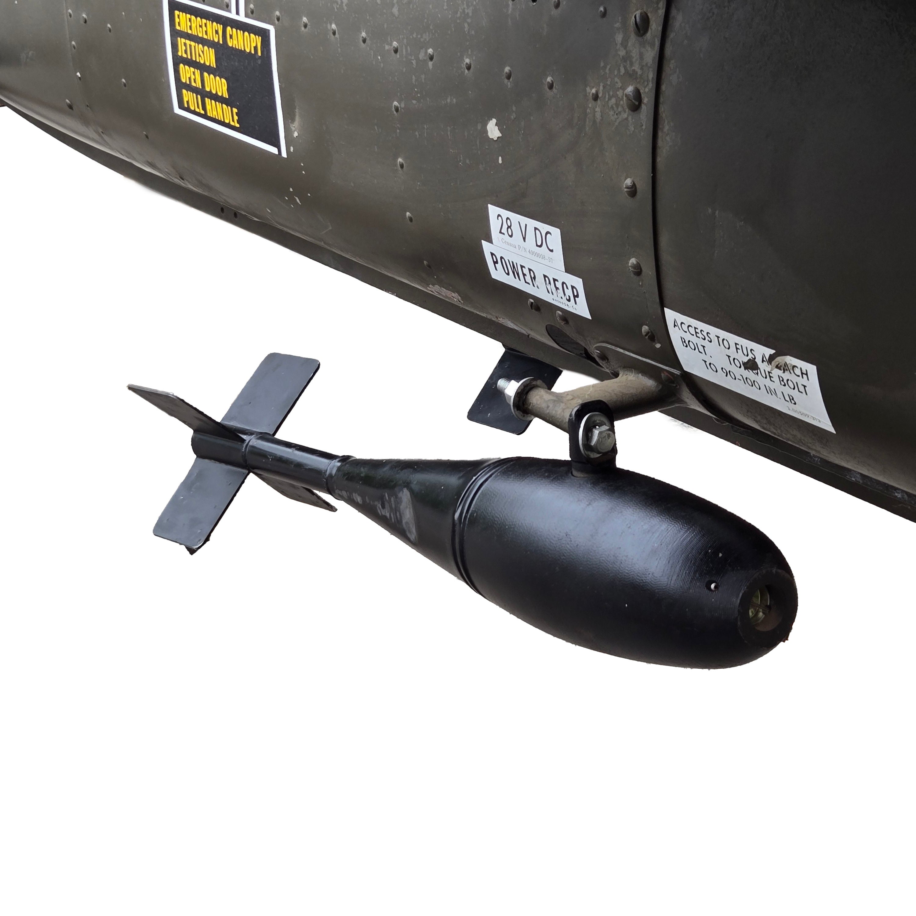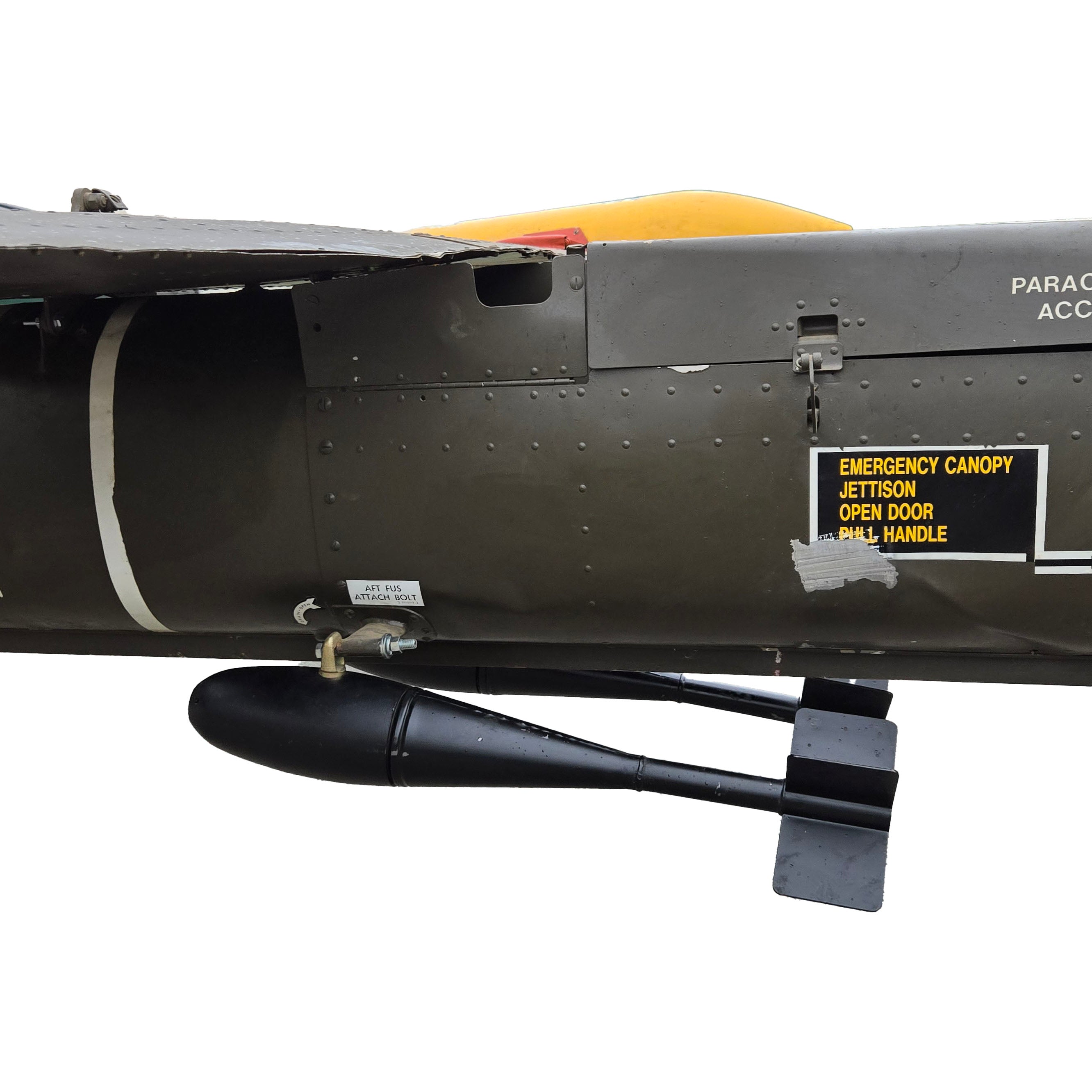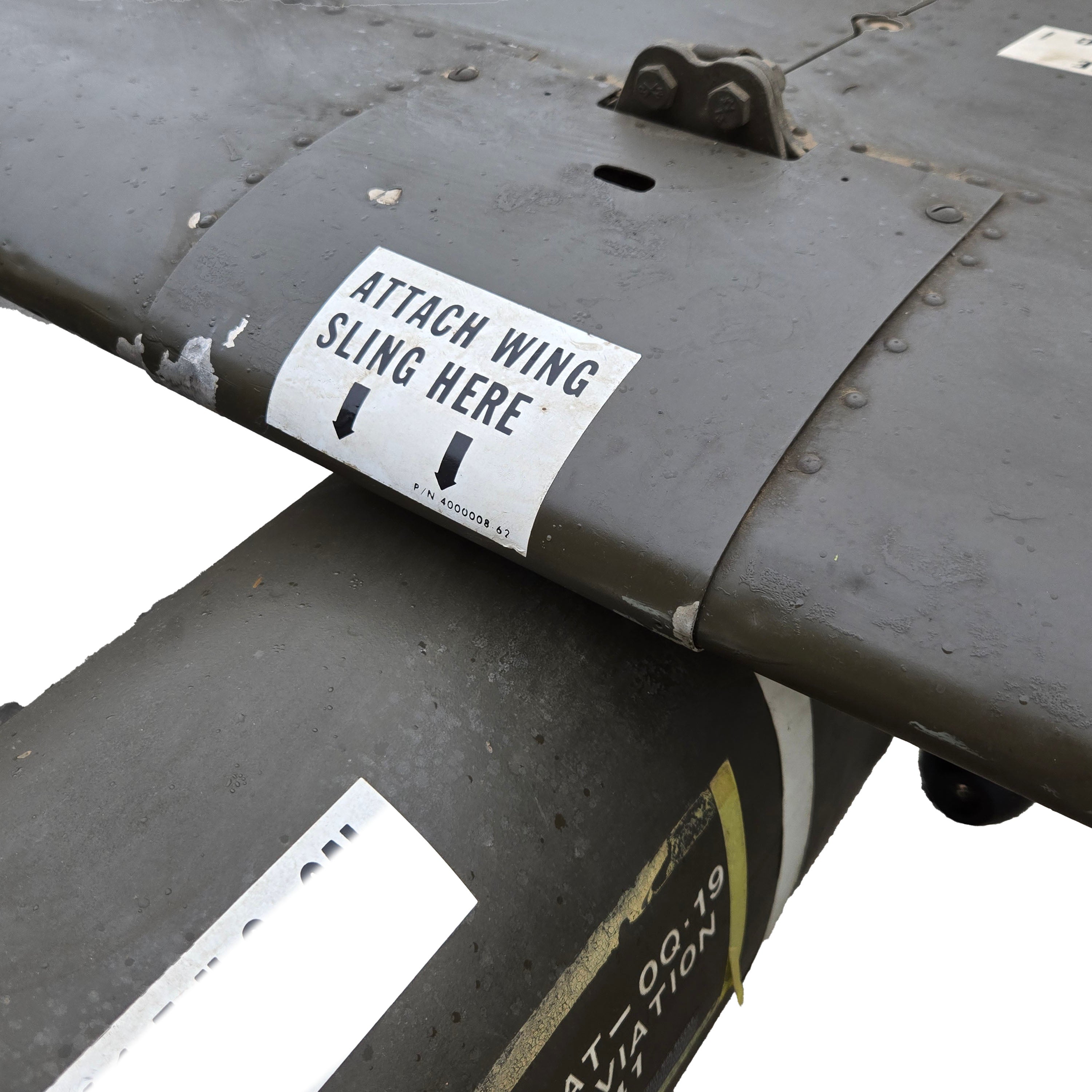 This is a fantastic Drone-RCAT-OQ-19 Target Drone which was painted for a museum display. The drone retains its detachable wing as well as two practice bombs which hang off of the sides. This would make for a phenomenal ceiling display!