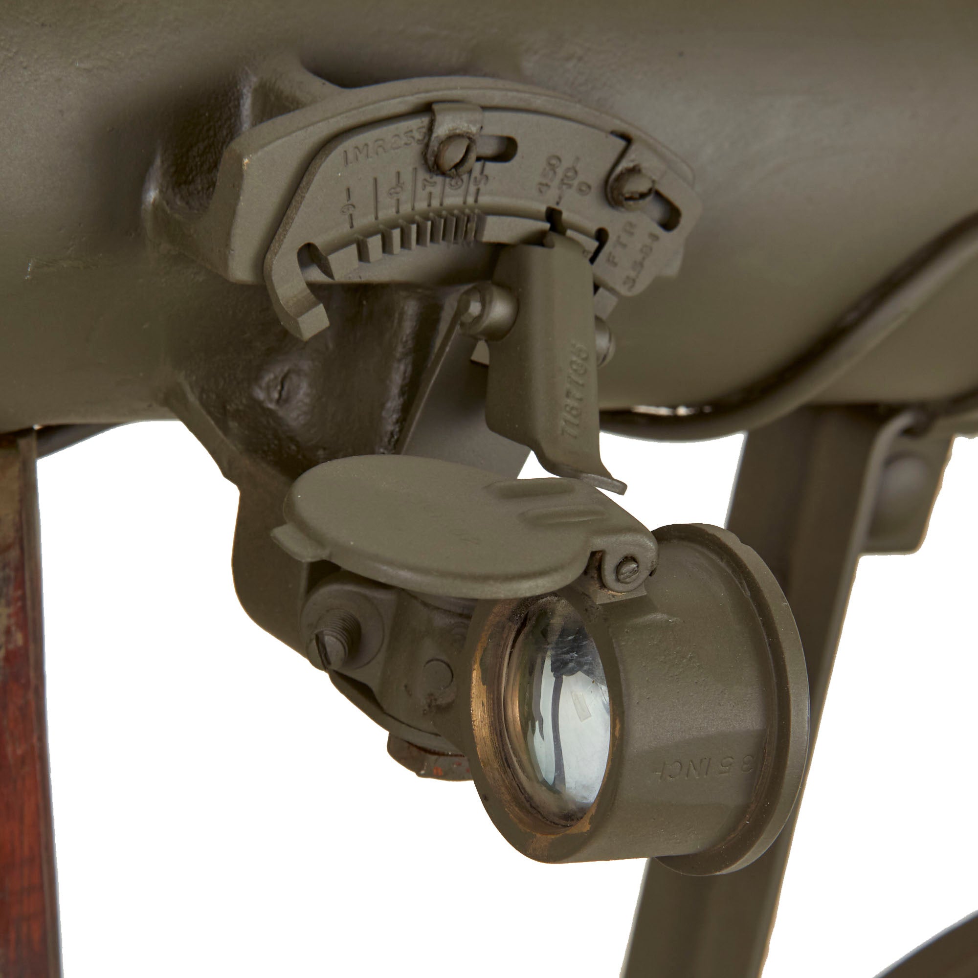 This example was made under agreement with the United States by the Rifle Factory Ishapore, India, and is identical to the U.S. made version. It is in great shape, with the original wooden grip featuring a moveable trigger and safety mechanism, and the loading lever at the rear is still movable as well. Comes complete with an original optical sight, which is in very good shape, though as we usually see the rubber eye cup is missing. It also has a lovely period sling installed, which is the correct M1 Garand type. Light weight and assembles to approximately 60 inches in overall length.