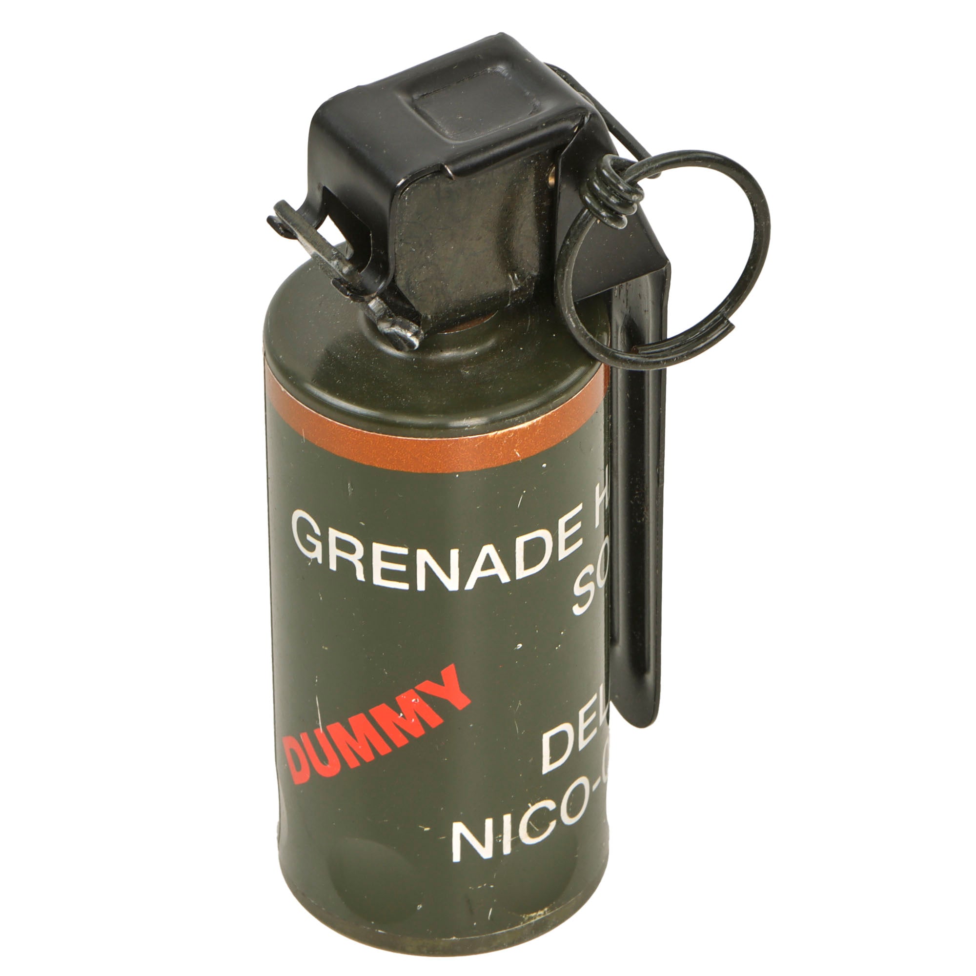 This is a great U.S. GWOT era sample/trainer example of a scarce Rheinmetall “6 Bang” flashbang grenade. The side of the grenade is stamped:
