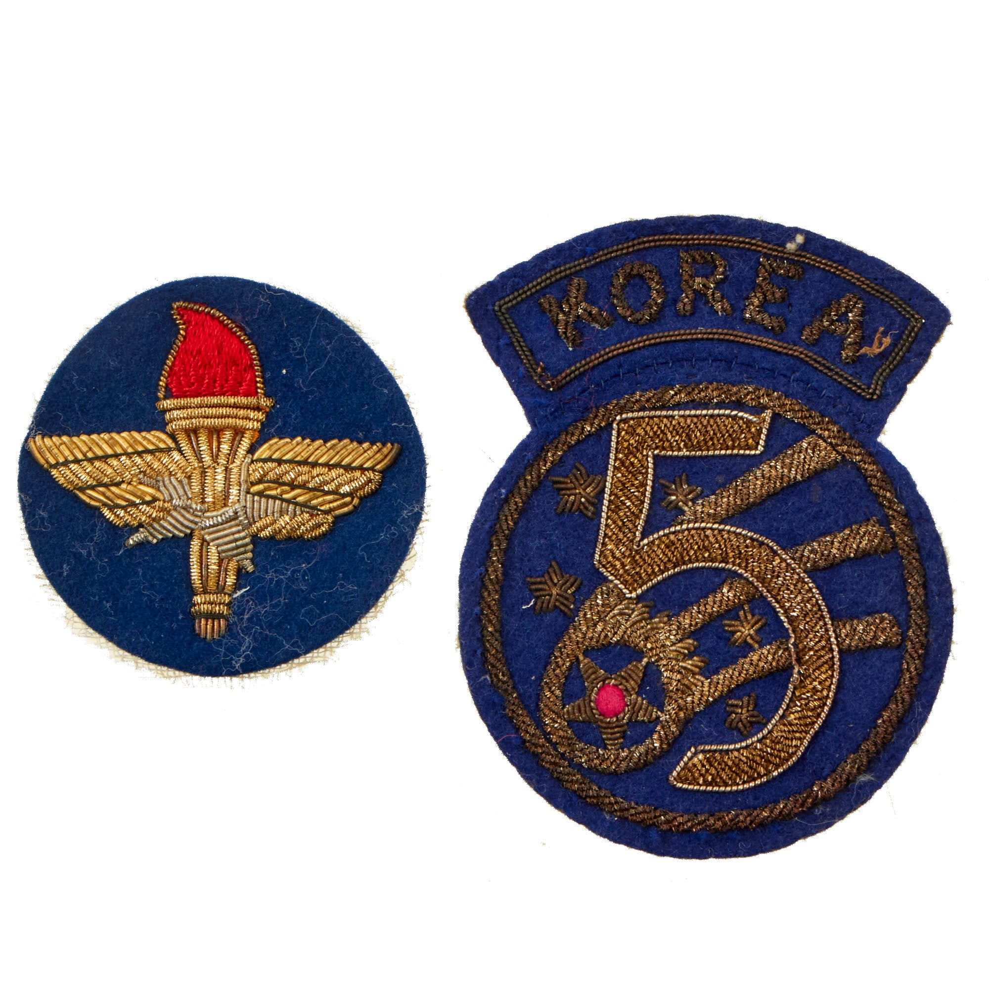 Original Items. Only One Lot Available. This is an outstanding lot of great Korean War bullion theater-made patches with some very rare variations. There are two great 5th Air Force in Korea patches, a Support Command patch & rocker, and more!