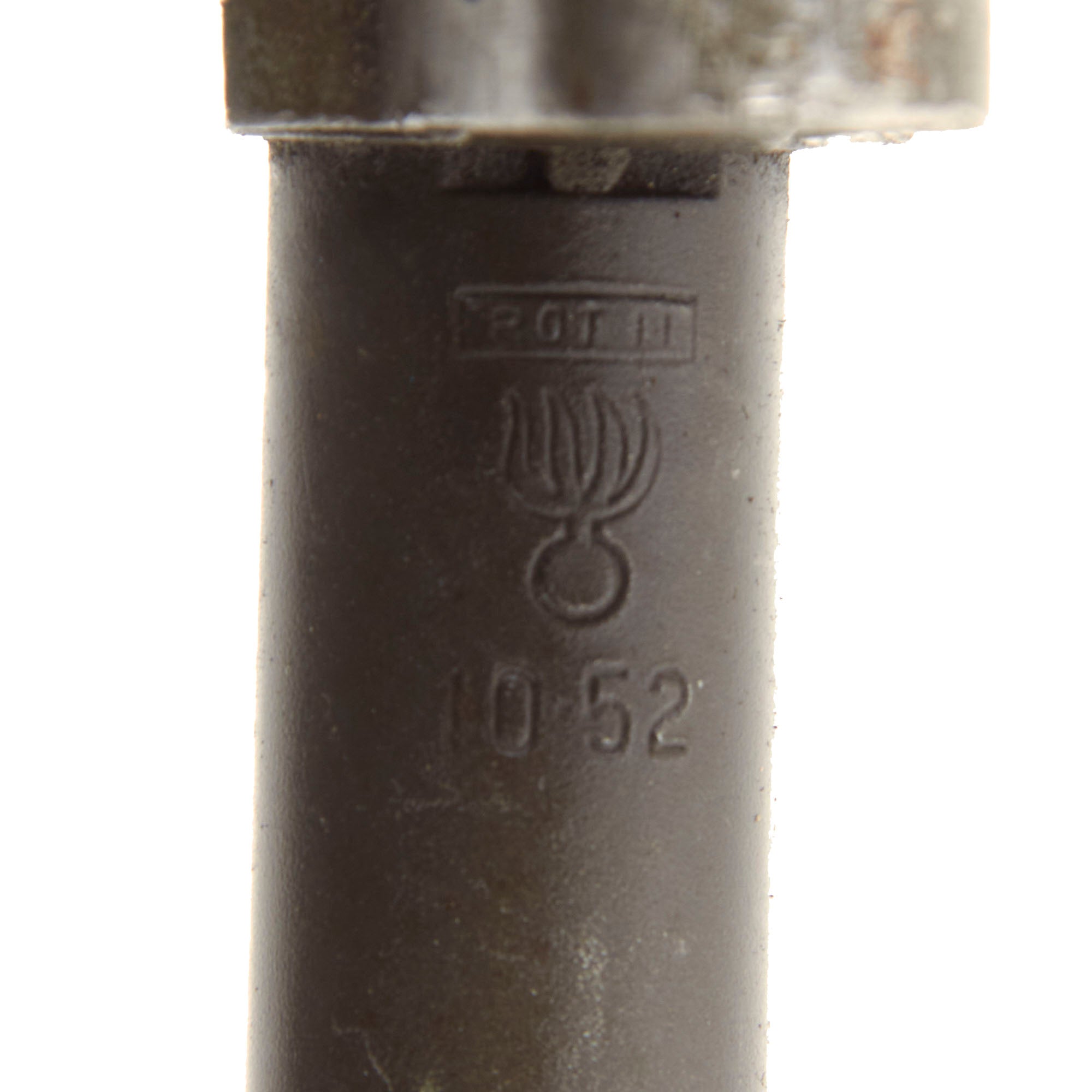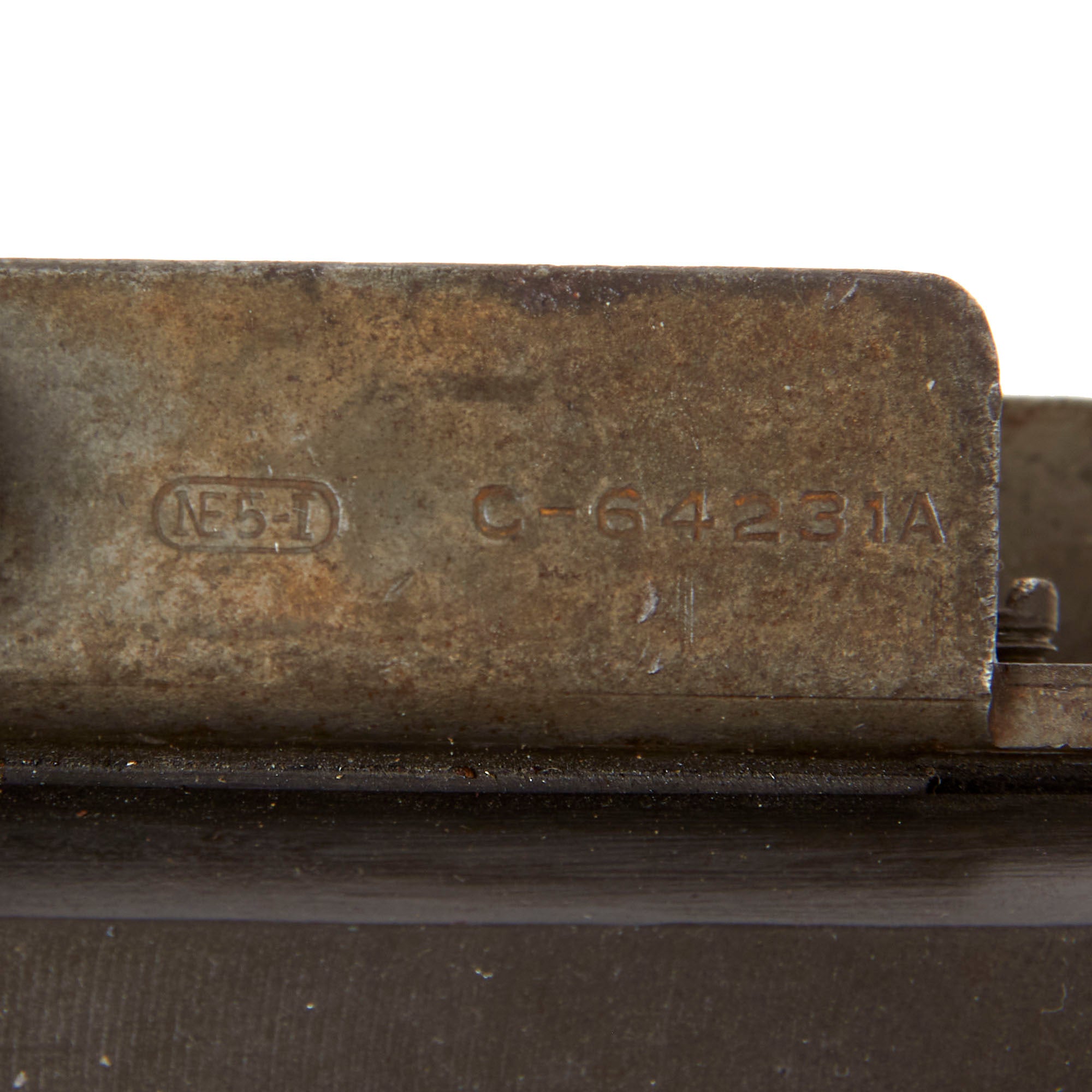 The display gun has a Korean War issue barrel marked ROT II / (Flaming Bomb) / 10 - 52, for October 1952 Manufacture. The barrel has not been deactivated, rifling is still easily visible, and the chamber is still intact. The bore is in very good condition, showing wear from service and subsequent cleaning. All parts aside from the receiver are genuine U.S. issue parts, many of which have issue markings and part numbers.