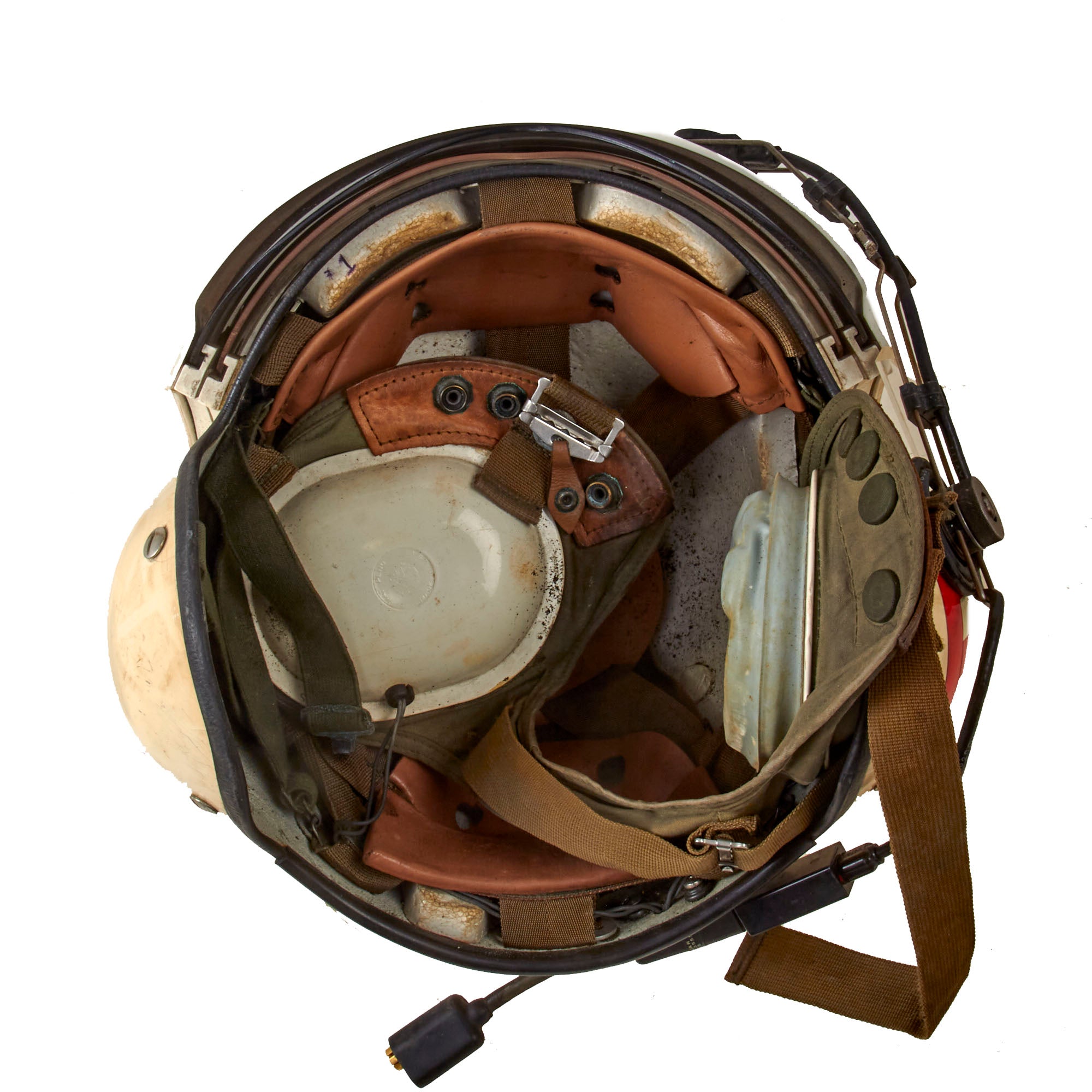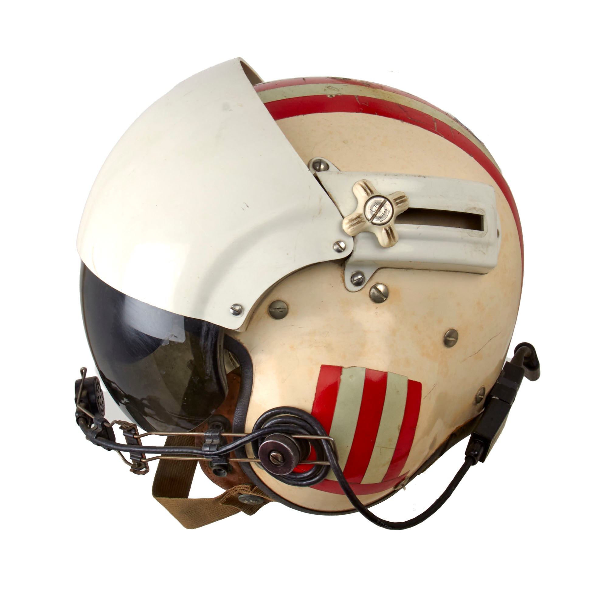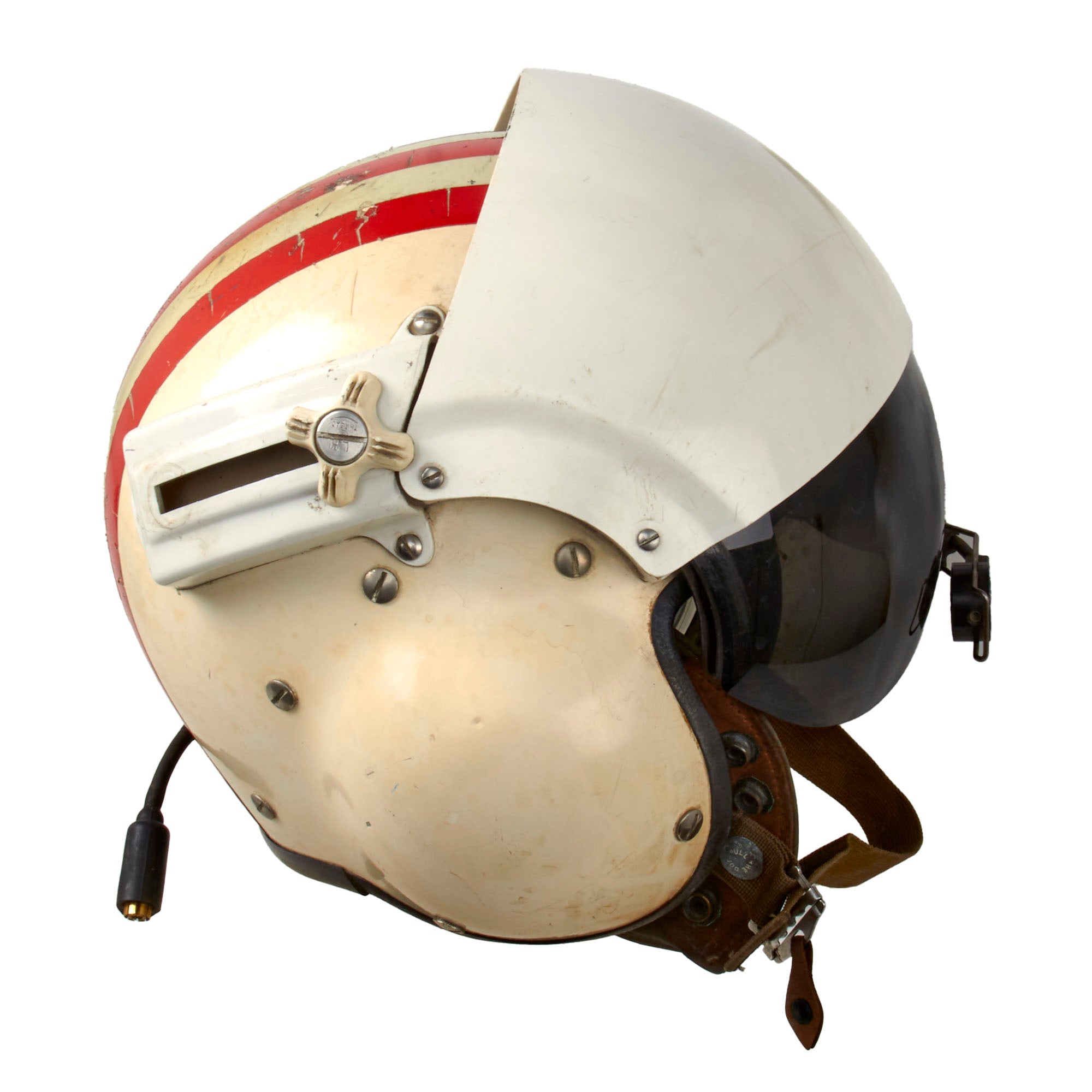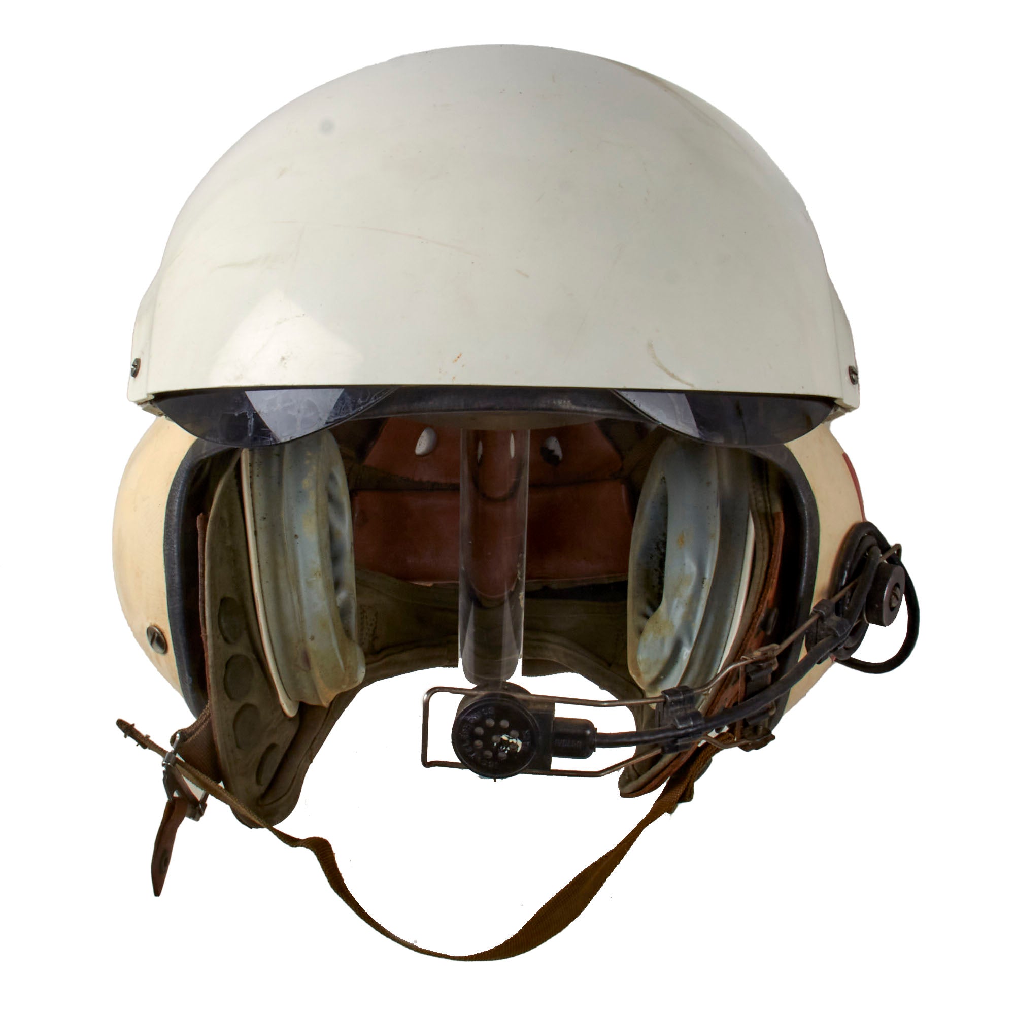 Original Item: Only One Available. This is a United States Navy Helicopter Flight Helmet type SPH-4 likely made by Gentex, but there is no tag we can find on the interior. We believe this helmet is from the 1980s, or was possibly refurbished for use then, and it features rare early Rams Horn dual visors (one tint and one clear). Later examples with dual visors did not have the "horns" behind the visor assembly.
