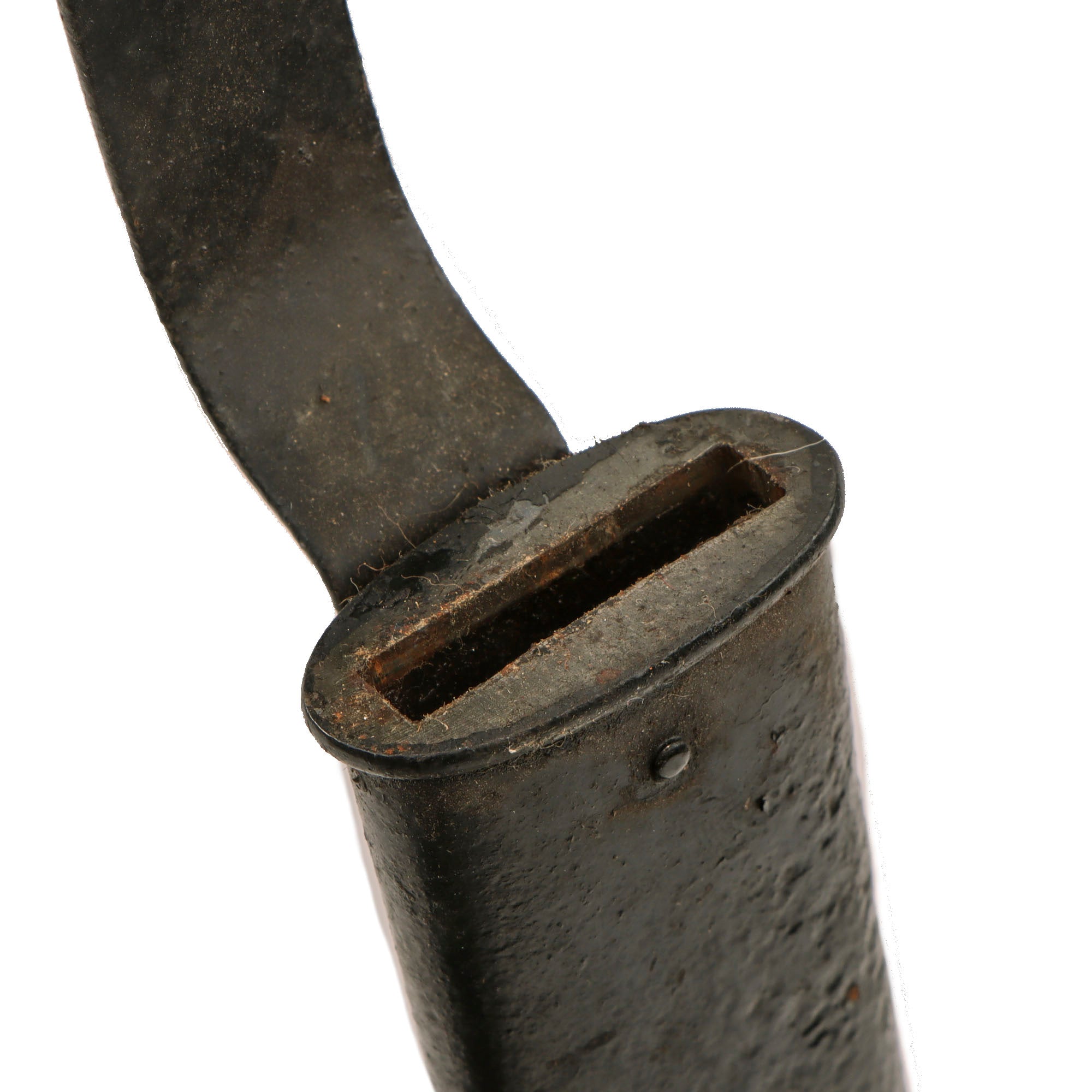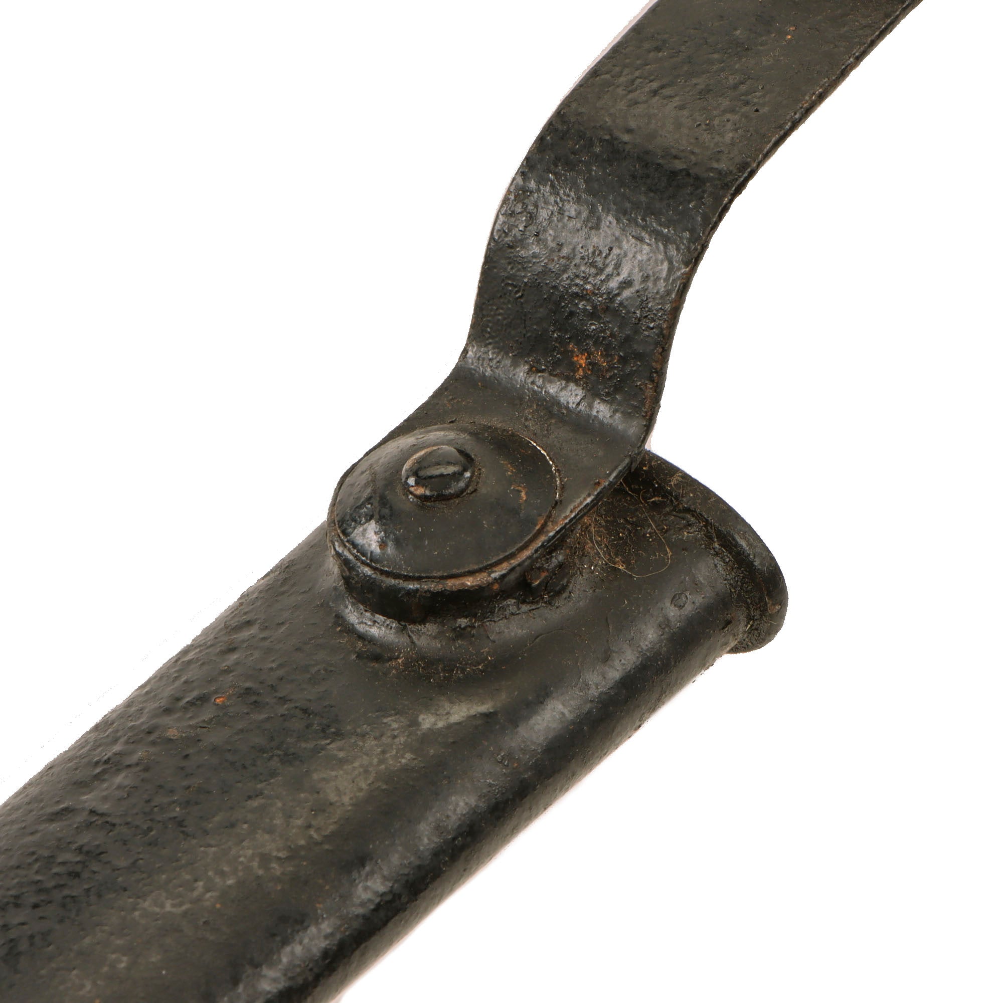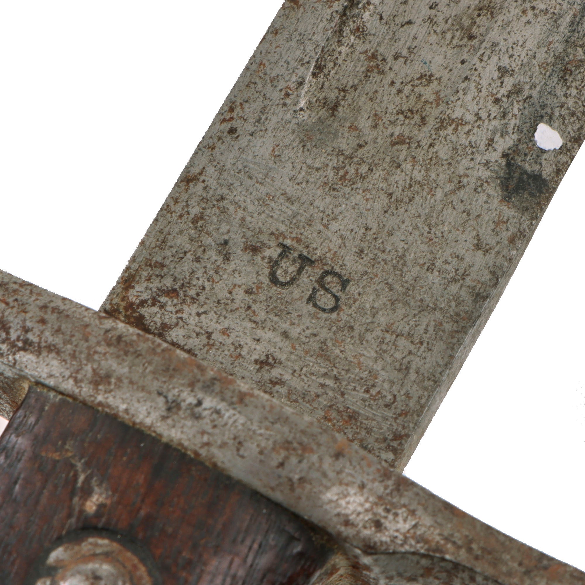 The blade is marked 1902 on one side, and US on the other, and has a fully functional bayonet catch. The scabbard is in good condition, though it was repainted black, but it has a fully functional swivel.