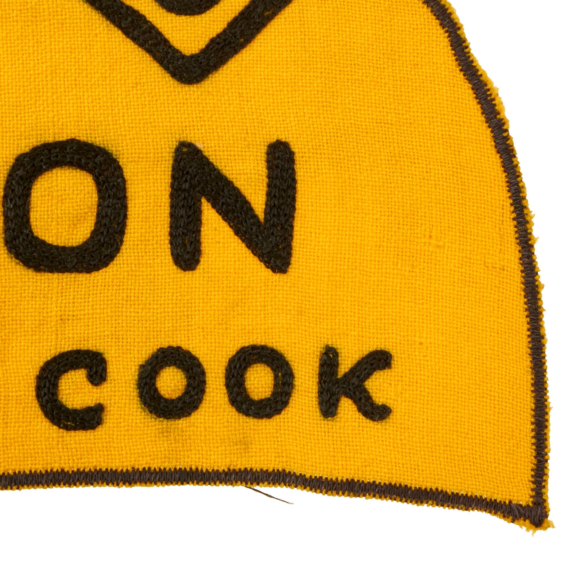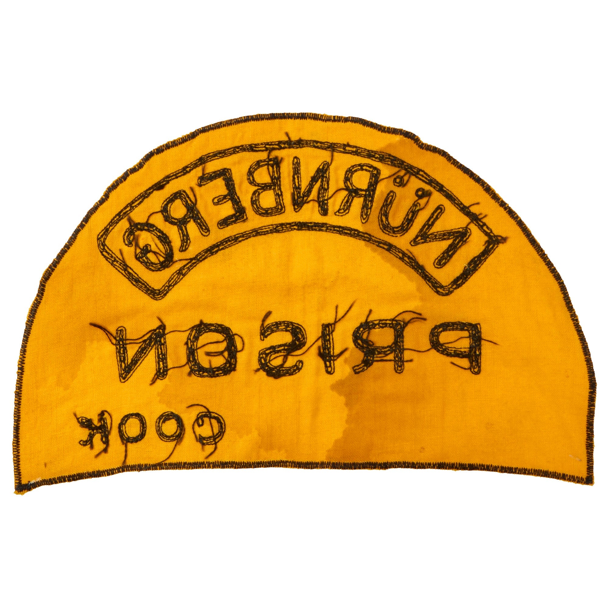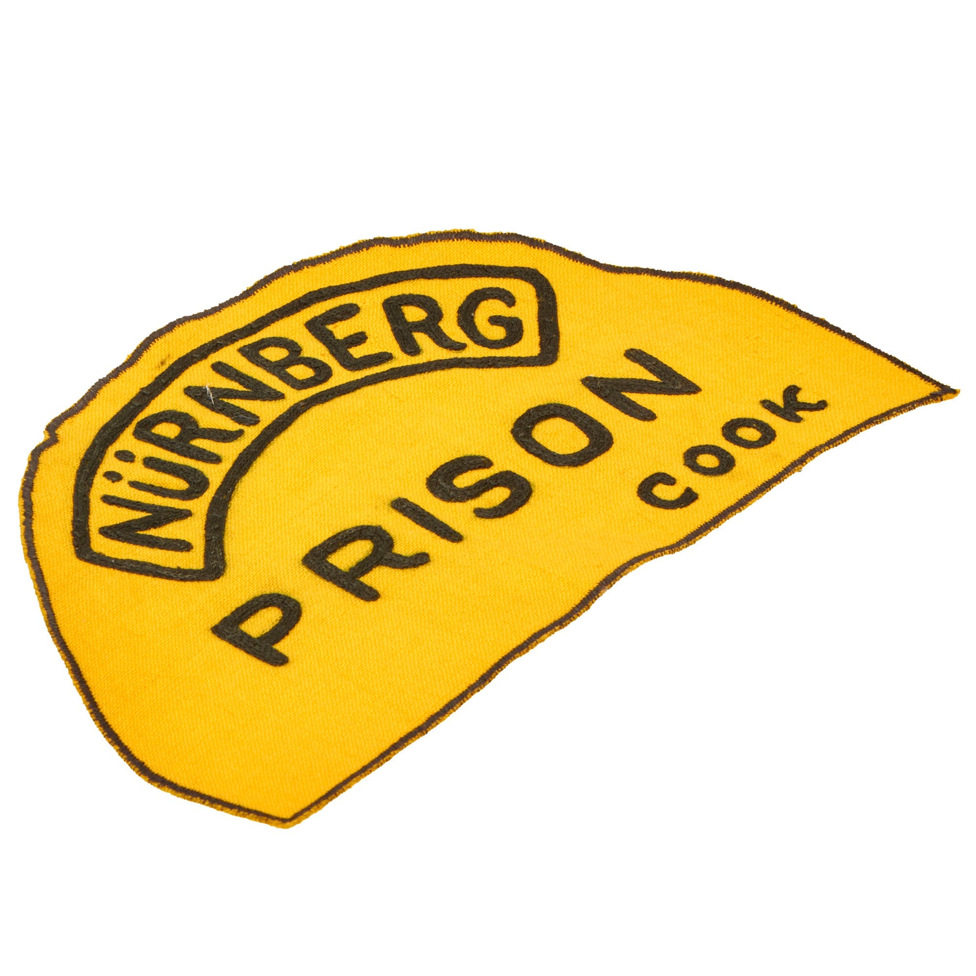 Original Item. One-of-a-Kind. This is a very interesting piece of Nürnberg Trials history, a patch meant to be worn by a prisoner of the Nürnberg Trials who worked as a cook in the prison. The patch has the German spelling of the word and is hand-embroidered, with the individual stitching visible on the reverse. There is a good bit of wear to the patch, and it certainly appears period.