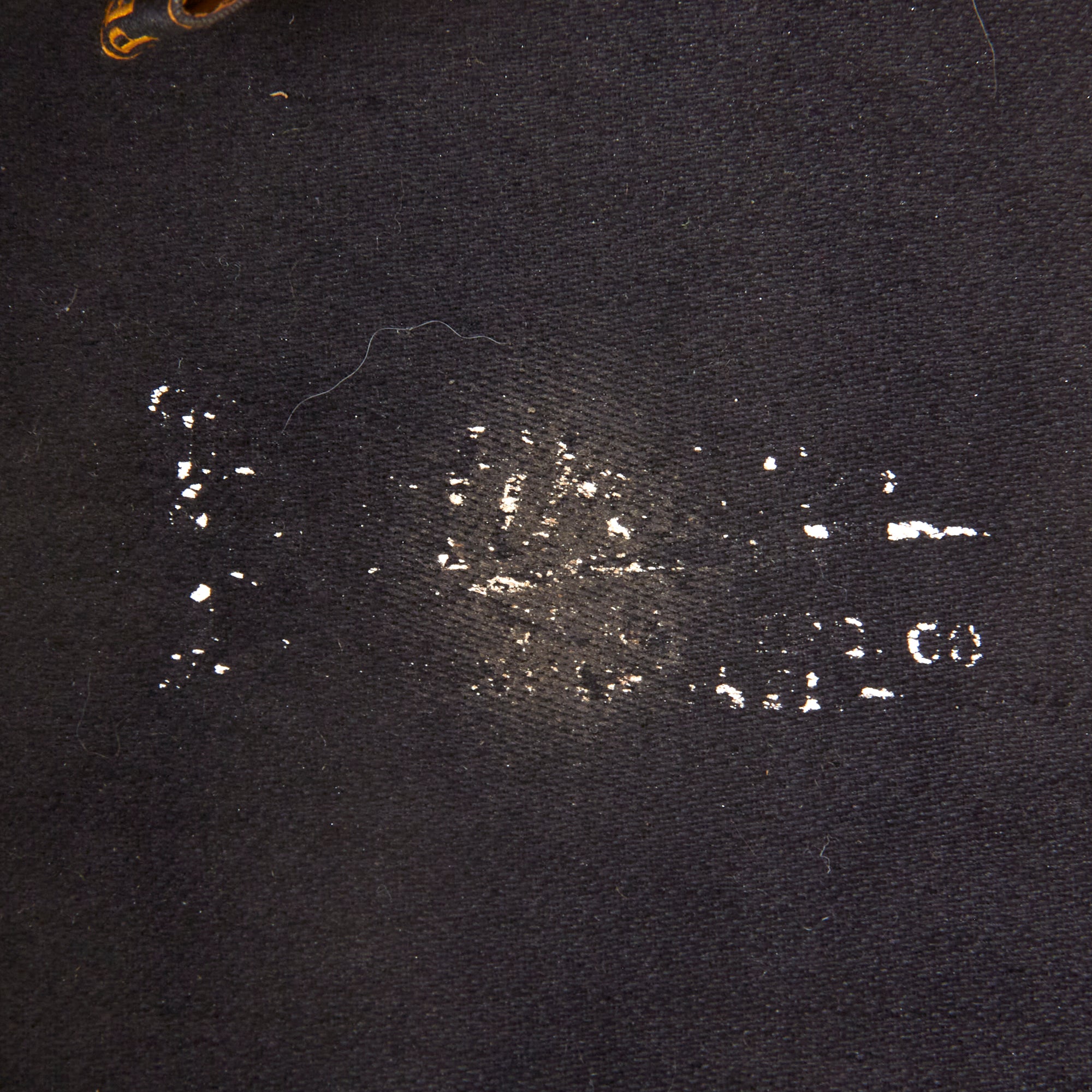 Despite the minor wear and tear, the overall condition of this visor is impressive. The scattered moth nips on some areas are not too damaging and do not detract from the visor's beauty and historical significance. This Model 1902 peaked visor is a valuable piece of history that has been preserved in excellent condition. It even retains the small maker’s hanging tag for the Pettibone Brothers of Cincinnati, Ohio.