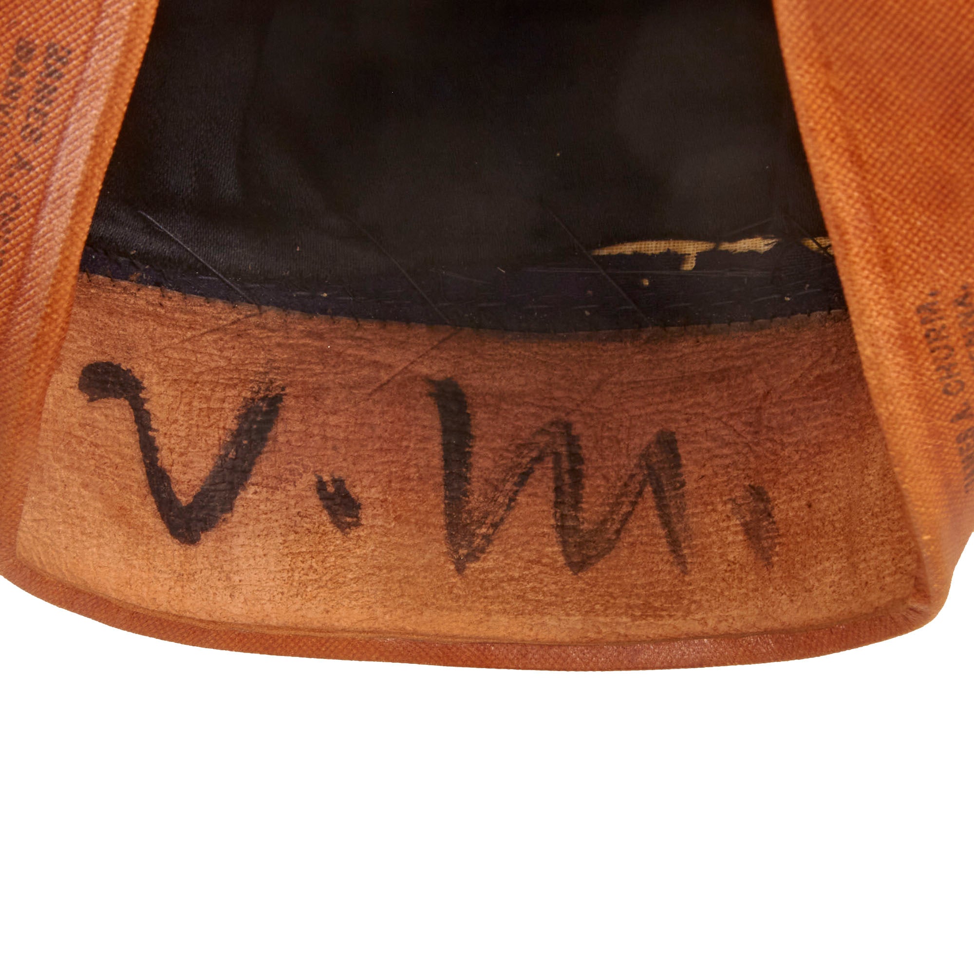The inside lining of the visor is in great condition and still has a polished black cotton appearance, which is a testament to the quality of the material used during that time. The brown leather sweatband is in great shape and retains the size tag, 7, and a very small stamped name and location, JAMES A. CHURM / DANVILLE, PA. We’ve identified this as an NGP Sergeant who served from 1905-1917.