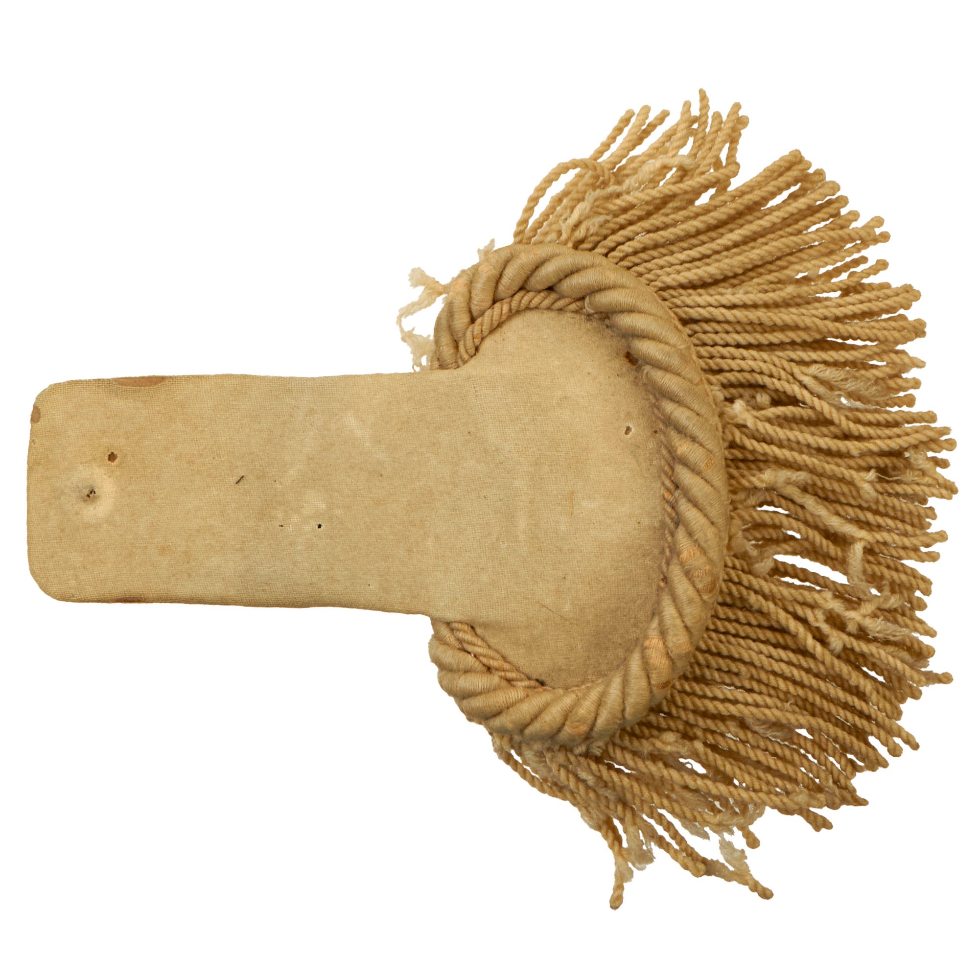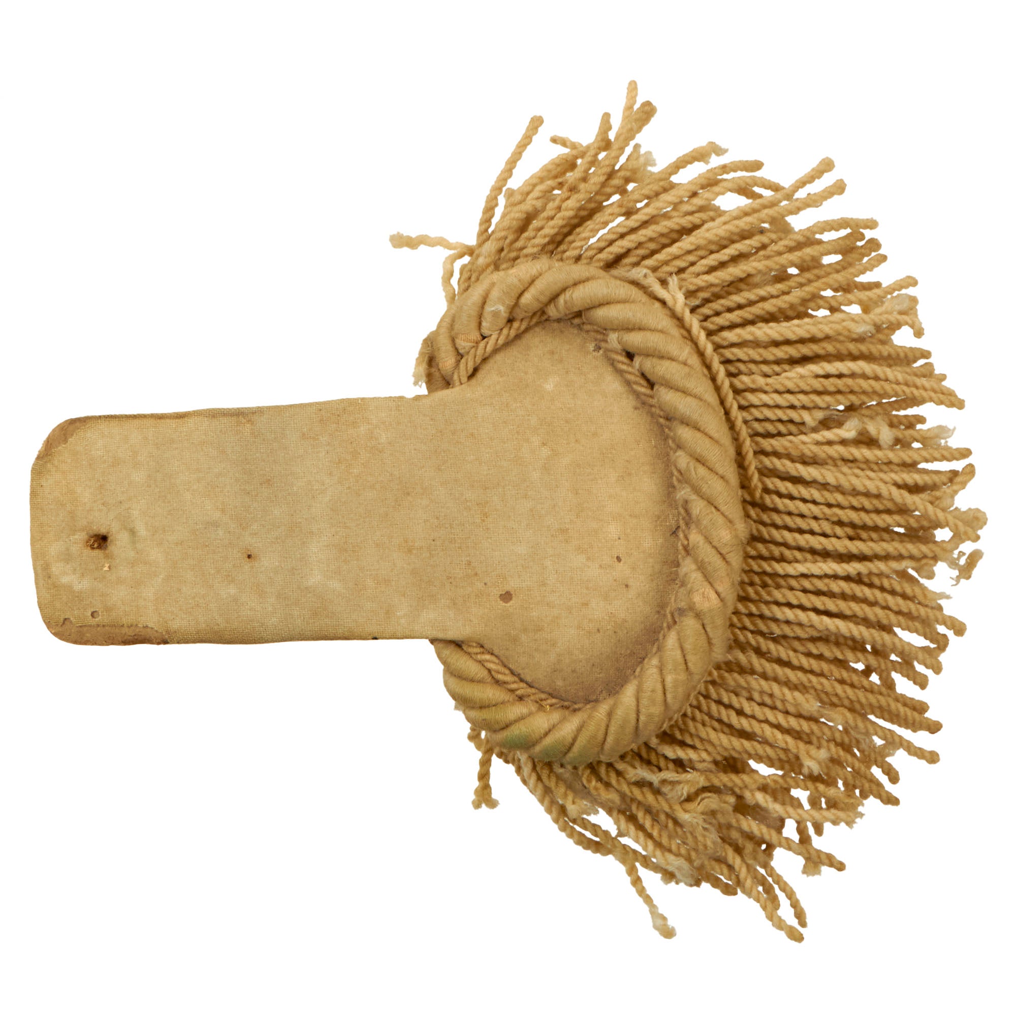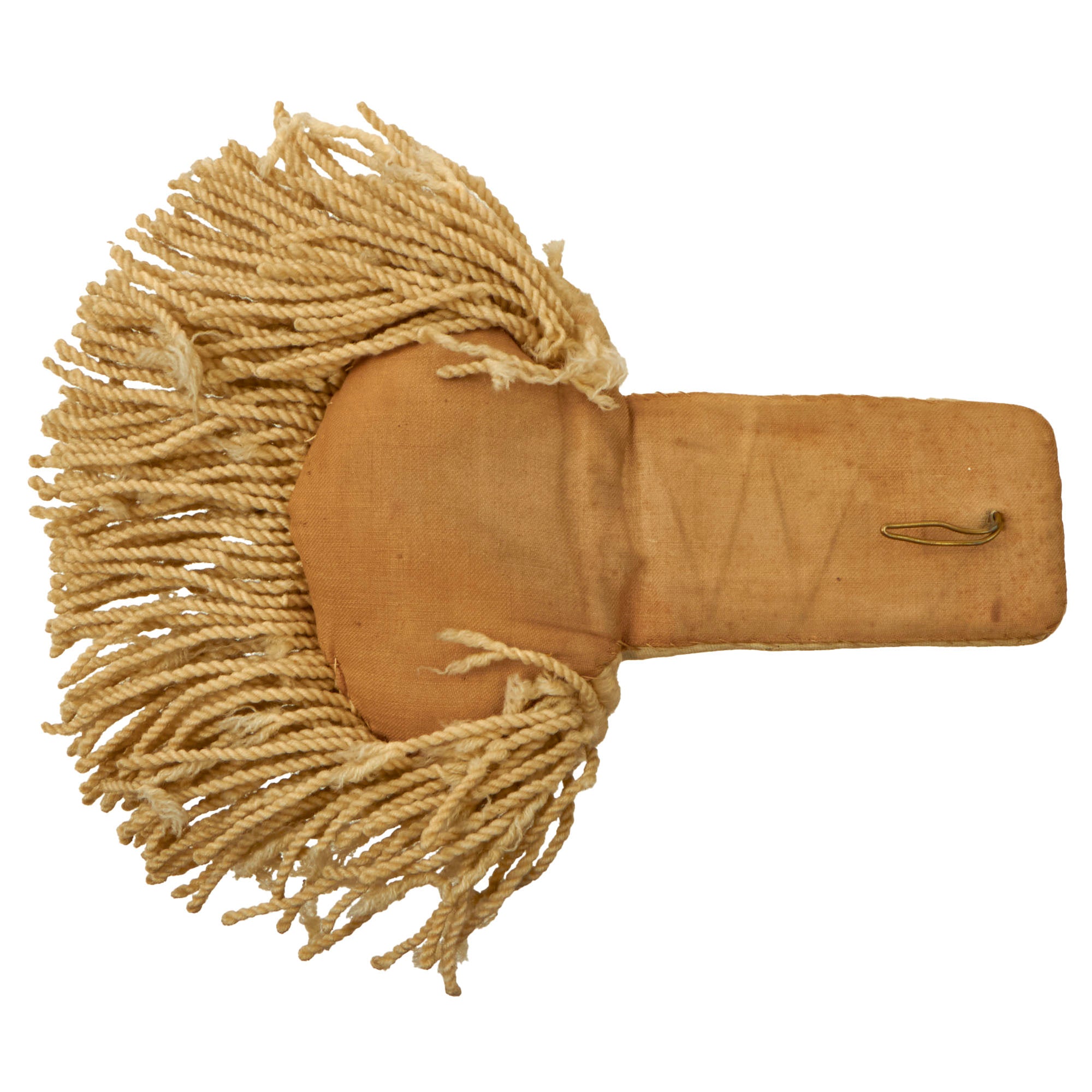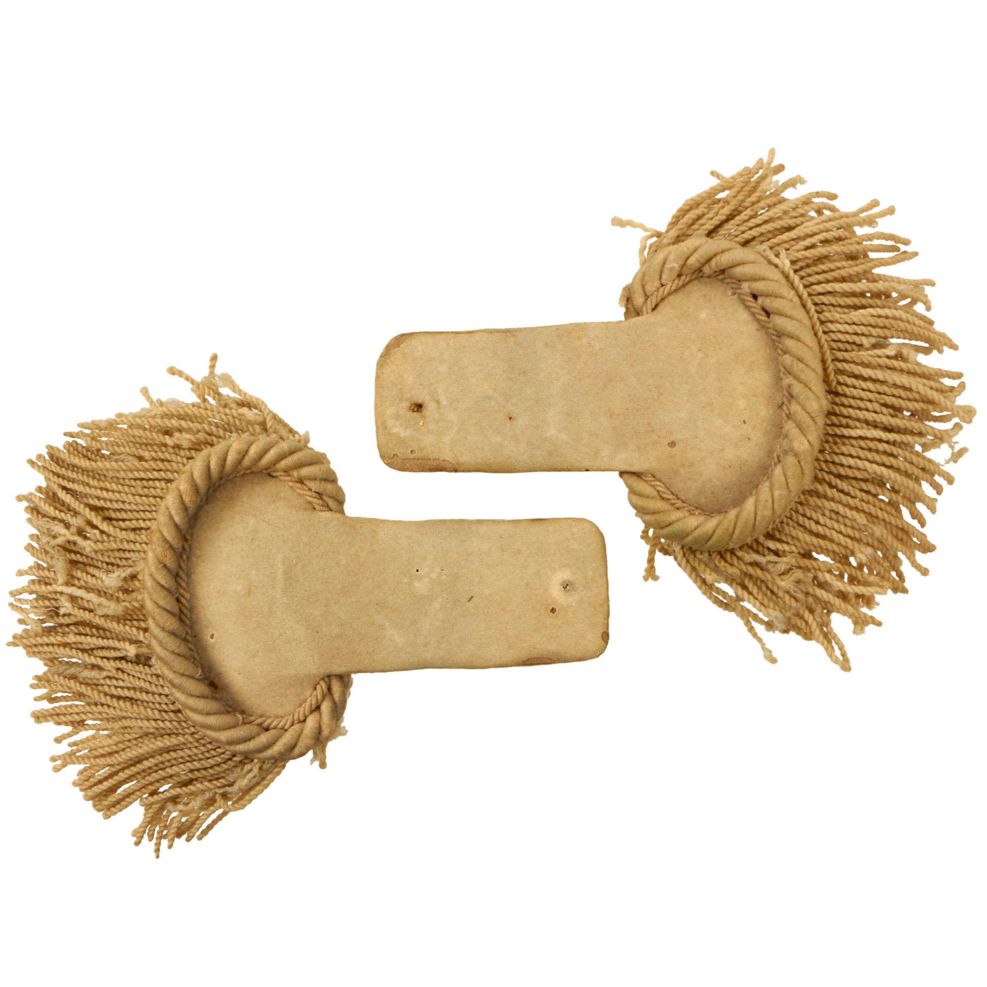 Original Items. Only One Set Available. Epaulettes are a type of ornamental shoulder piece or decoration used as insignia of rank by armed forces and other organizations. Flexible metal epaulettes (usually made from brass) are referred to as shoulder scales. Their direct origin lies in the bunches of ribbons worn on the shoulders of military coats at the end of the 17th century, which were partially decorative and partially intended to prevent shoulder belts from slipping. They gradually became more ornate, particularly in France, and the ornate coiled metal design then spread throughout Europe, and began to be an indicator of higher rank, after which officers of many different types of units began to wear them.