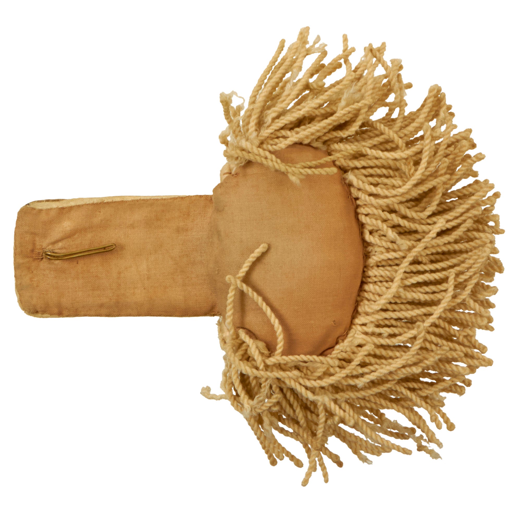 This is a lovely set of white epaulets dating to the 1830s, the Seminole Wars era. There is some material loss to their face, and the buttons they would have had are missing. The two hooks are still intact on the backs, and the white fabric coils are very well-retained, but there are areas of material loss.