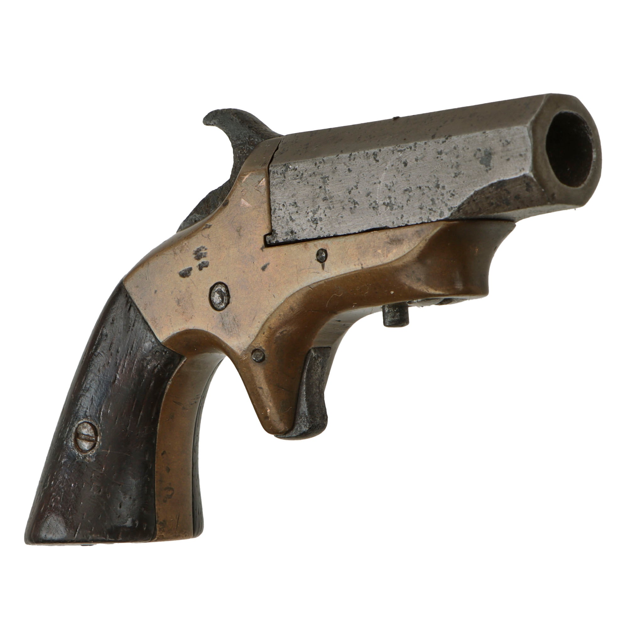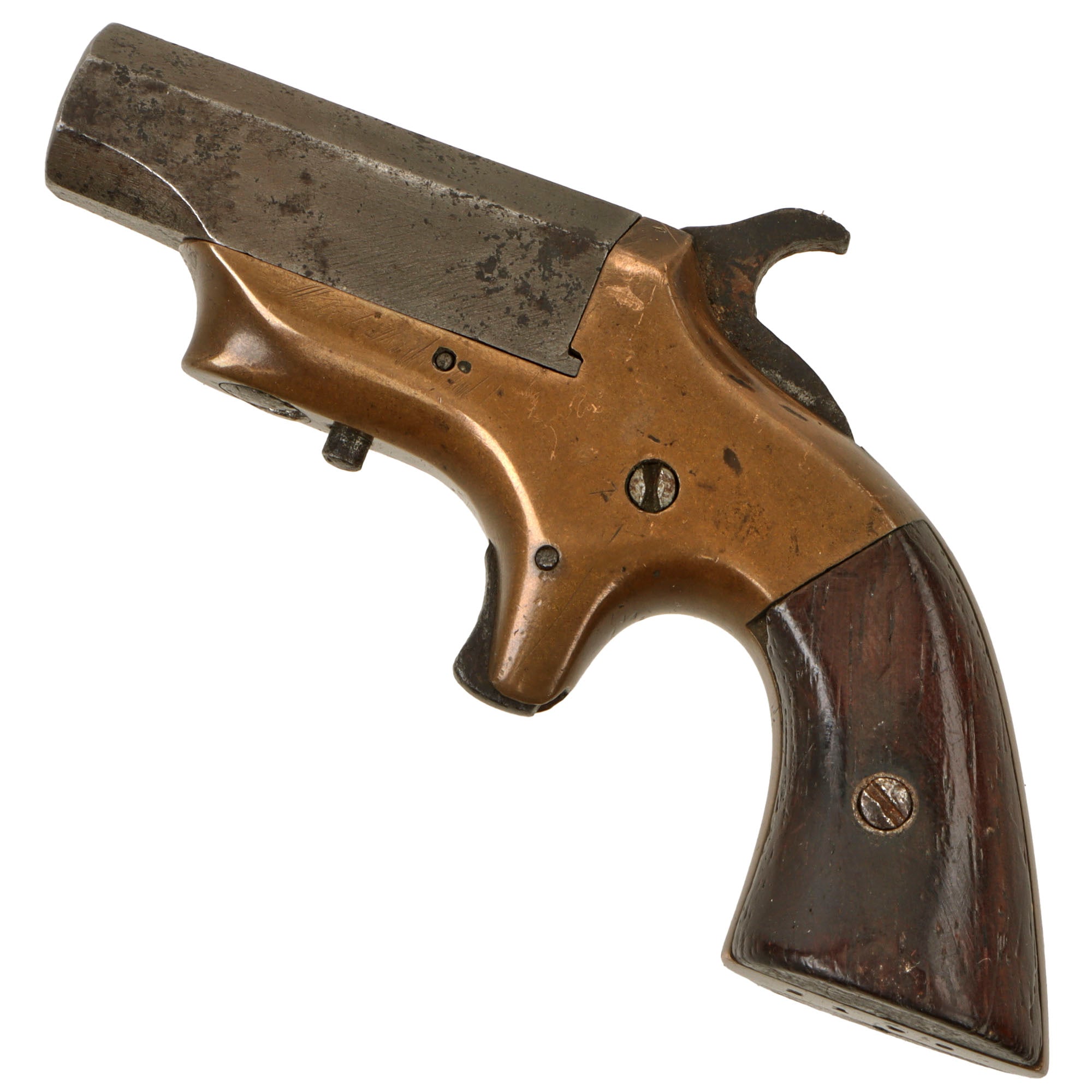 Original Item: Only One Available. This is a very nice "salty" service used example of one of several .41 caliber single shot pocket pistols, usually referred to as "Derringers", after the legendary pocket pistols made in Philadelphia before the civil war. The National Arms company had made one of the early examples, which featured a rotating barrel based on a 1861 patent held by Daniel Moore. This company was later purchased by Colt, who continued production. However they were definitely not the only company that made pistols like this.