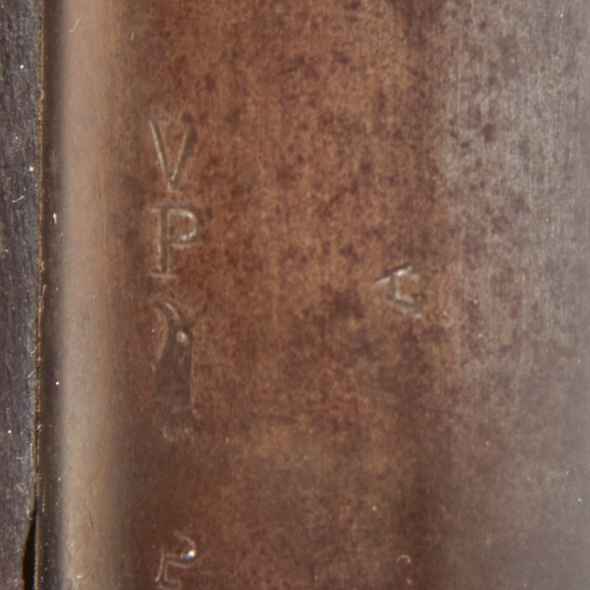 The elegant script SWP belongs to Samuel W. Porter, who was the Master Armorer and Chief Inspector of Springfield Armory from 15 September 1879 to 18 June 1894. A VERY faint stylized P in a circle under the wrist of the stock indicates that the rifle passed all of its overpressure proof testing. Additional marks of interest include inspectors' and proof marks around the breech end of the barrel: a capital A on top; and a V over a P over an Eagle's head over another P on the left side just above the stock. The upper right corner of the Buffington sight leaf is marked R to indicate that the sight graduations are for a rifle and not a carbine.