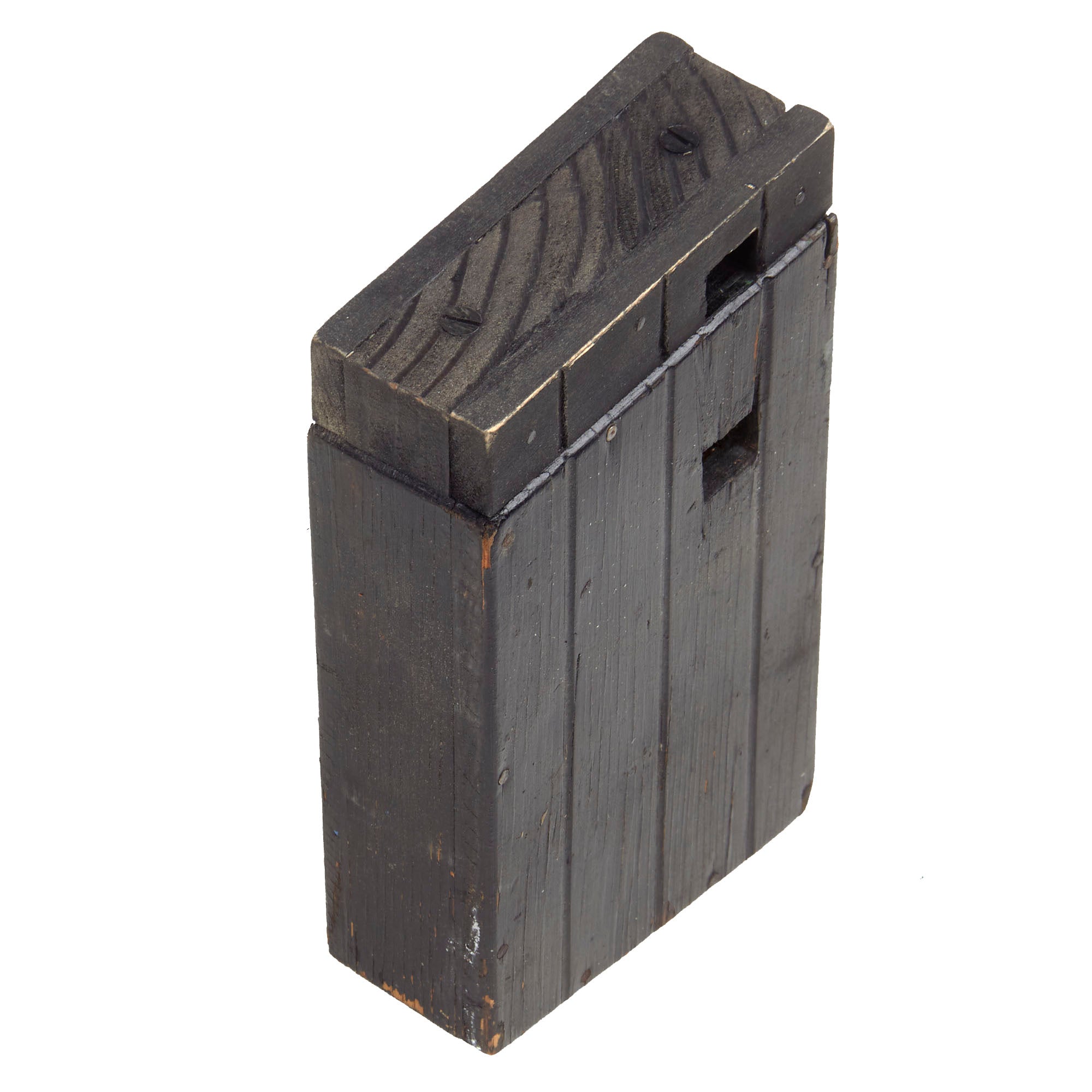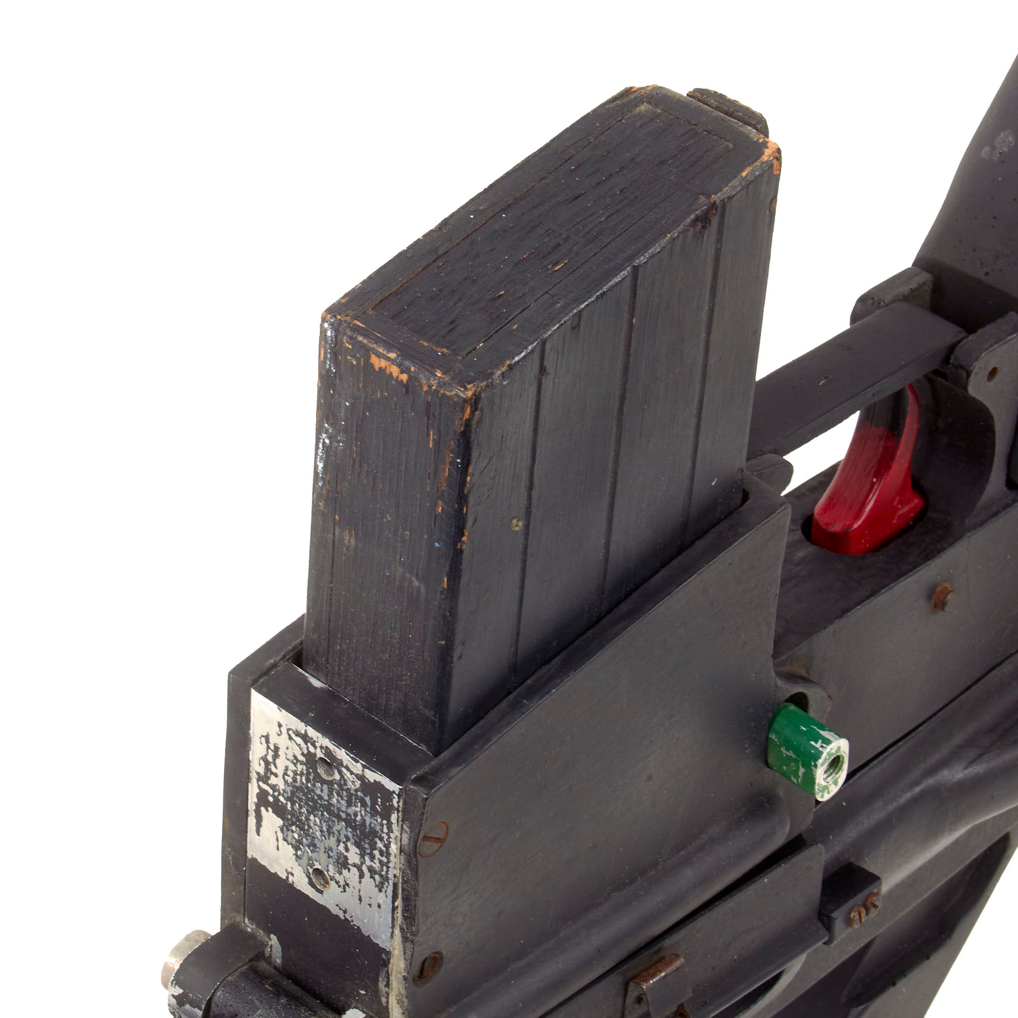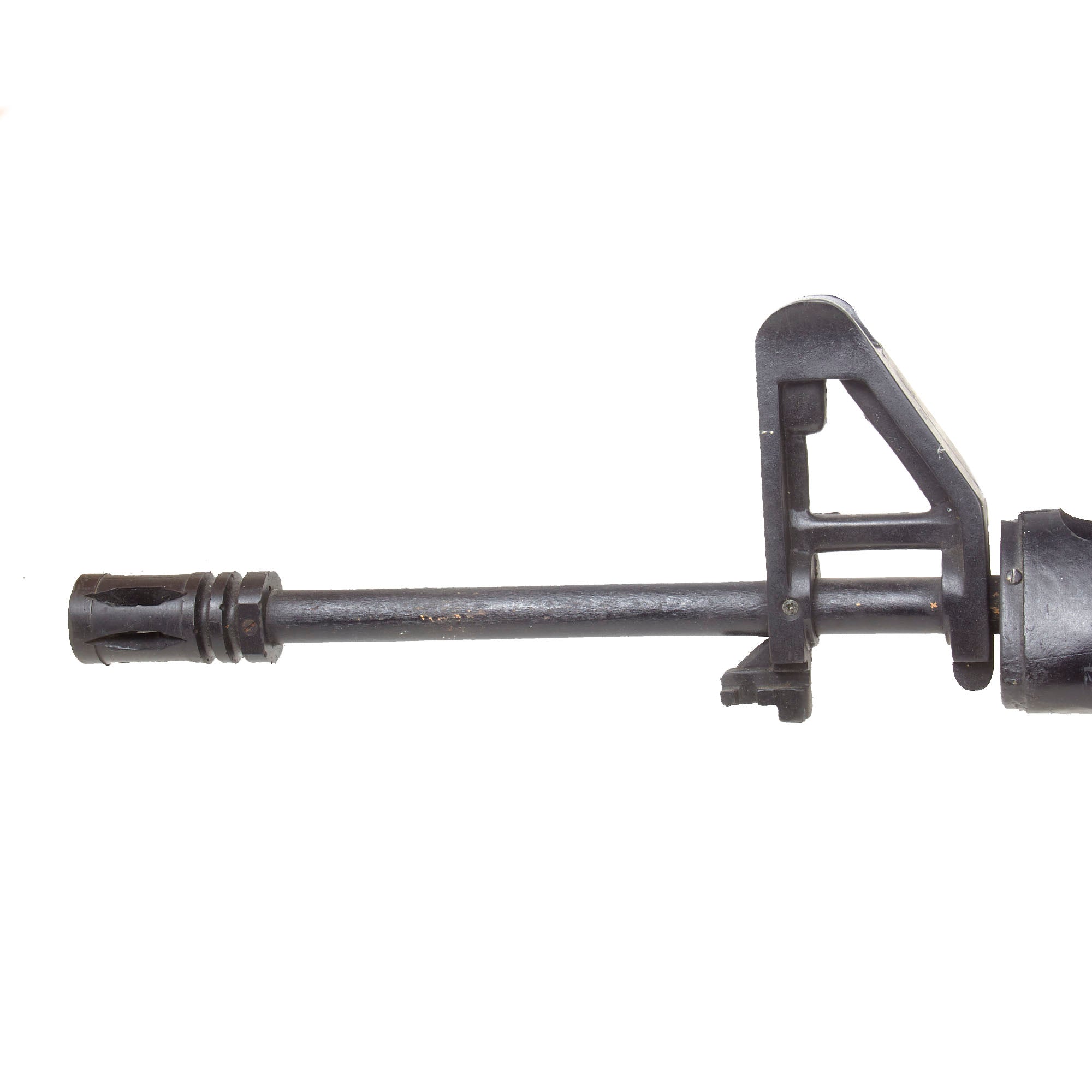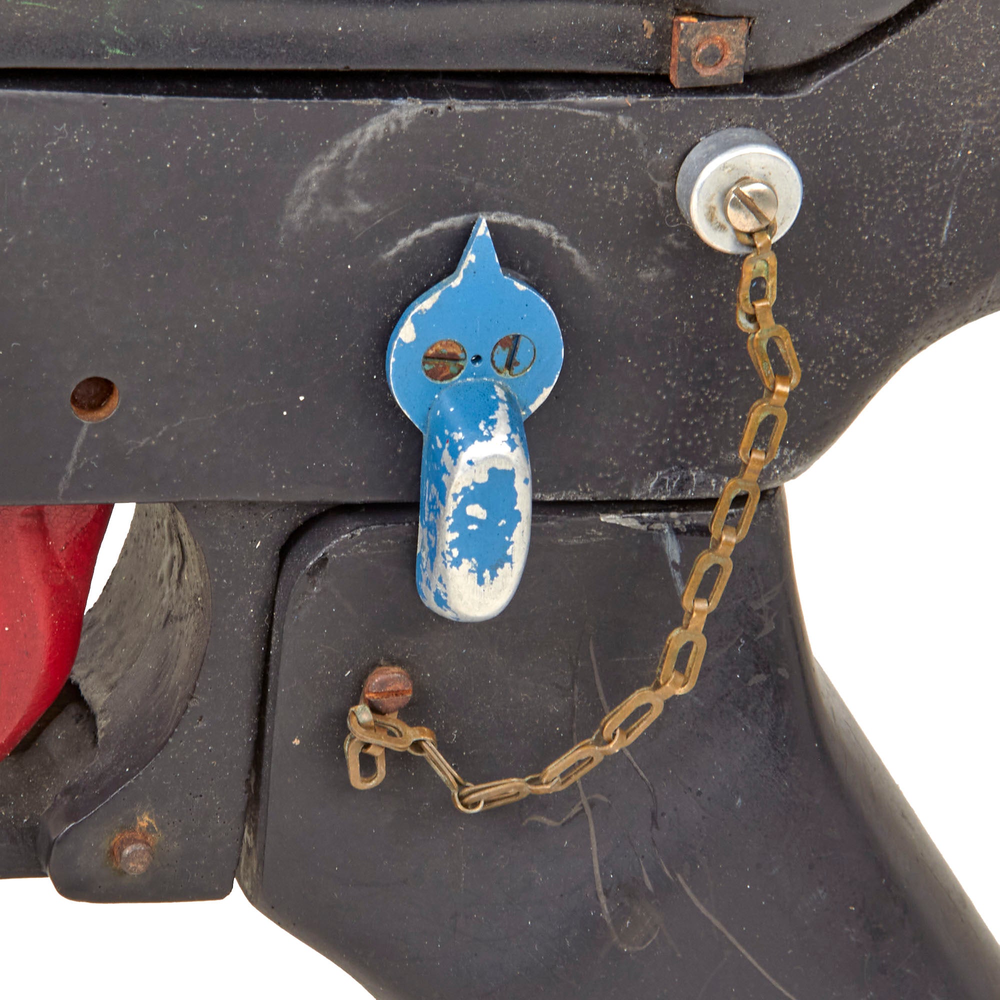 Original Item: Only One Available. This is an inert oversized training rifle and it is impossible to convert it into a live round firing weapon. It is not made using any original parts and is completely inert, made from wood and metal. These are very hard to come by, especially with all the parts still intact. Trainers like these were normally made in house at one of the U.S. Military training aid centers, and were used in classrooms used as a way to familiarize service members with the workings of the M16A1 Rifle, which was in use for decades as a front line weapon, and is still in service in many areas today. Not really intended to stand up to any type of rigorous use, these were usually disposed of once damaged or obsolete, so they are extremely rare. This example came to us with the story that it was purportedly made by Colt for Classroom Training purposes, but it doesn’t look like any of the pieces are marked, so we are not sure how true this is.
