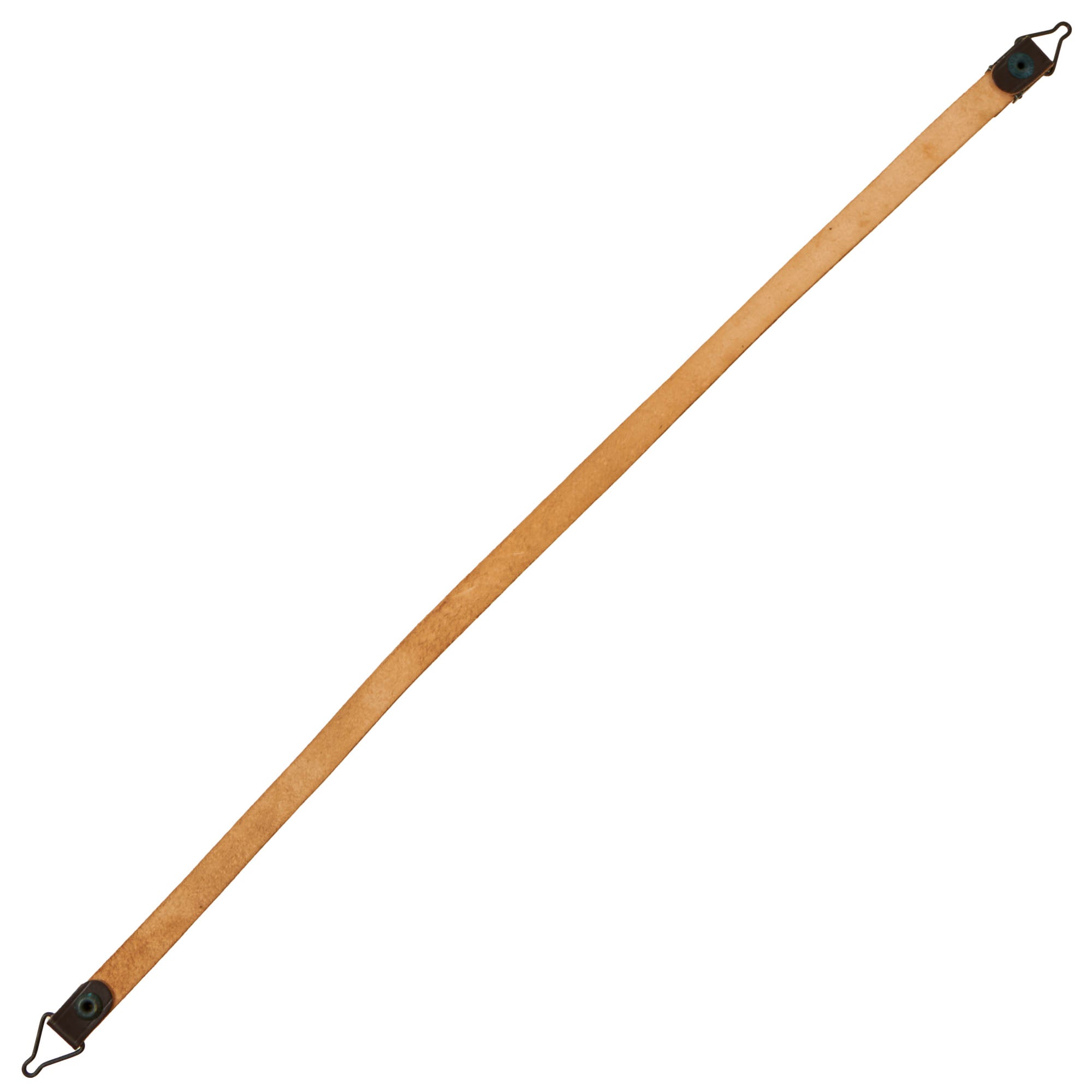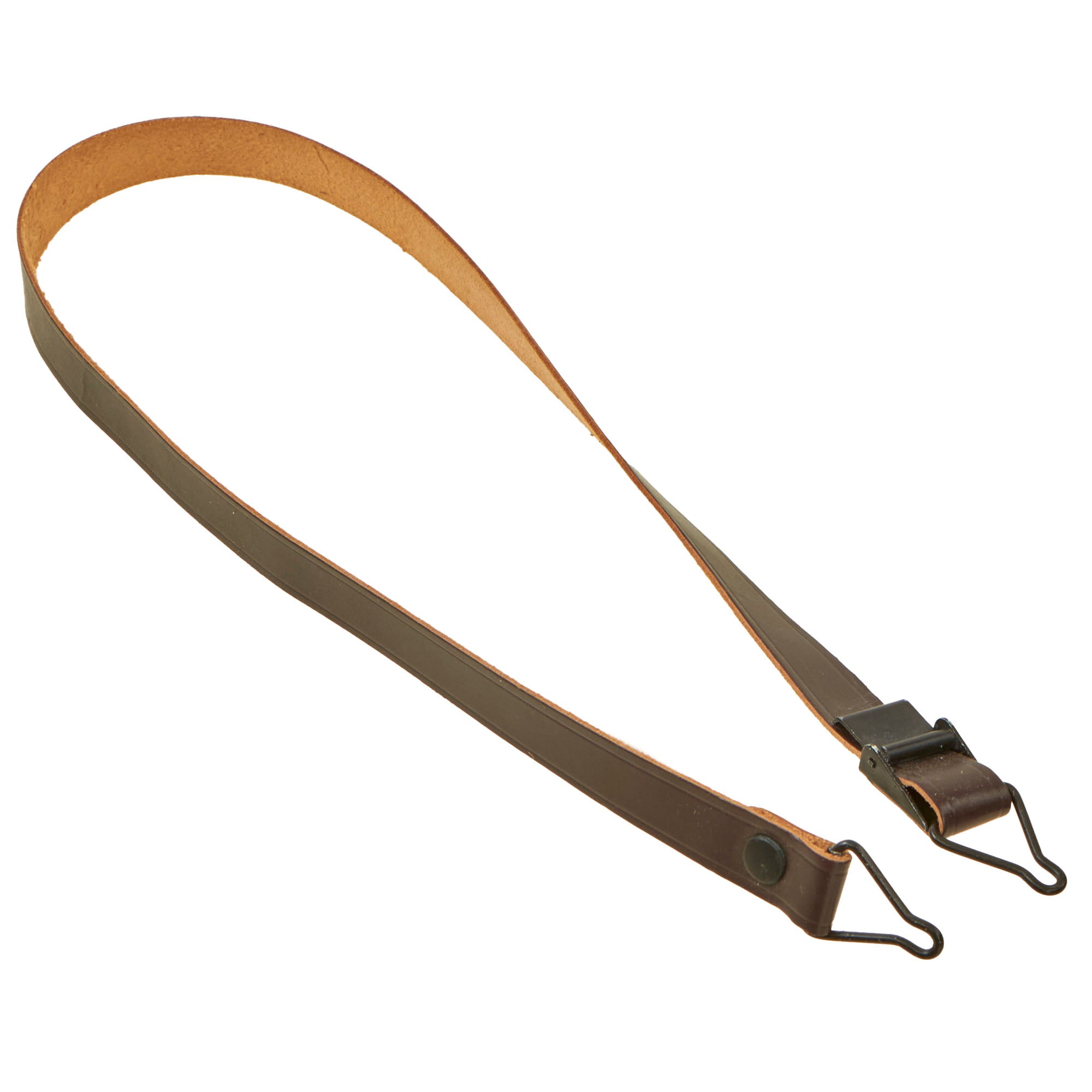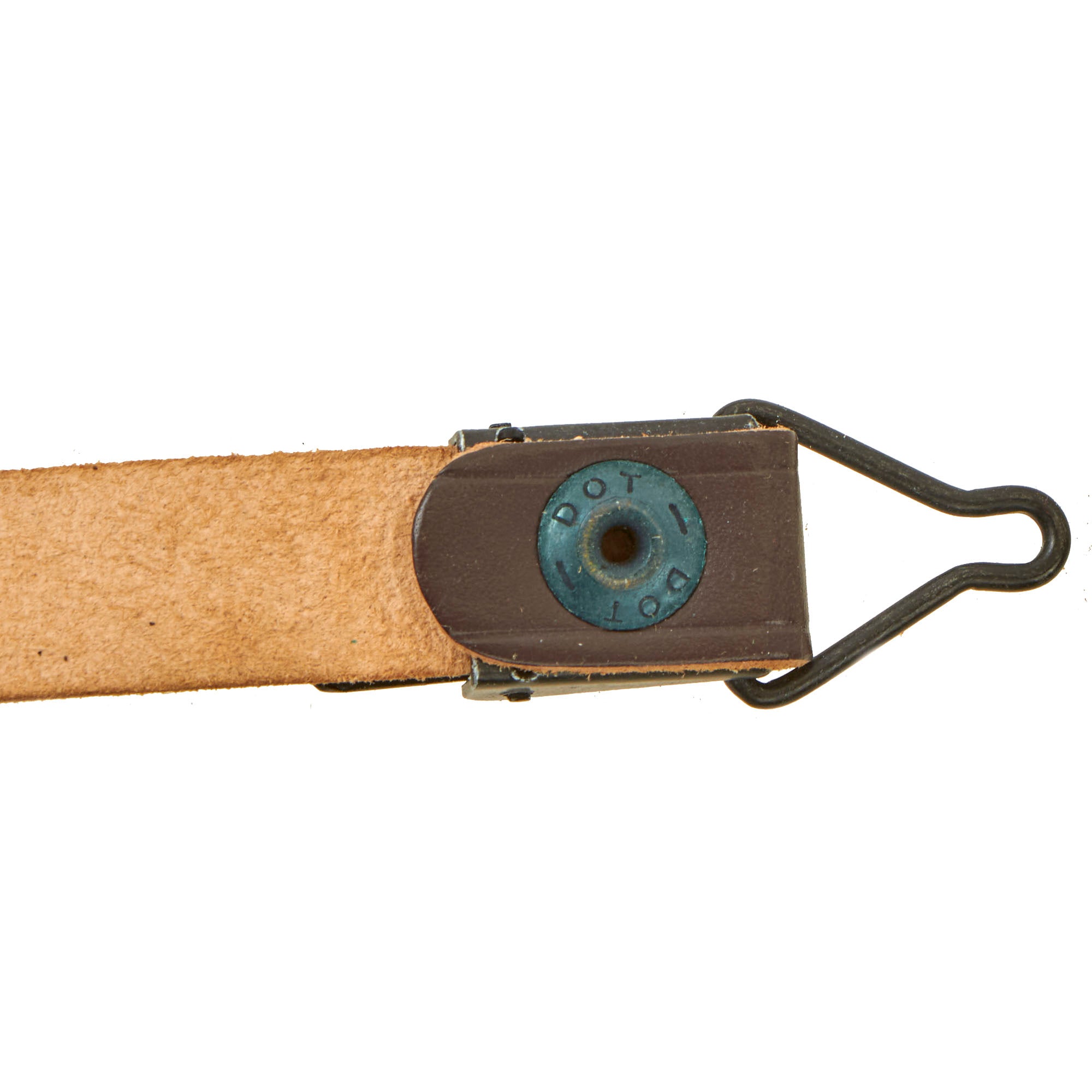 Original Items. Very Few Available. We are offering a great selection of Circa 1962 New/Old Stock U.S. M1 Helmet leather liner chinstraps in fantastic service-worn condition. These are always incredibly difficult to find on their own.Each example measures roughly 19½” end to end, with some having a -5- stamped on the reverse, and others have nothing stamped. The leather on each is very well-preserved, but some examples do have minor cracking. Most examples have a small anchor stamped on the buckles. There is some verdigris on the metal fittings from storage, which verifies the age of these. Some of the snaps are marked DOT, others are blank.Something that’s always impossible to find on their own, don’t miss out on this rare opportunity! Get one before they’re gone!