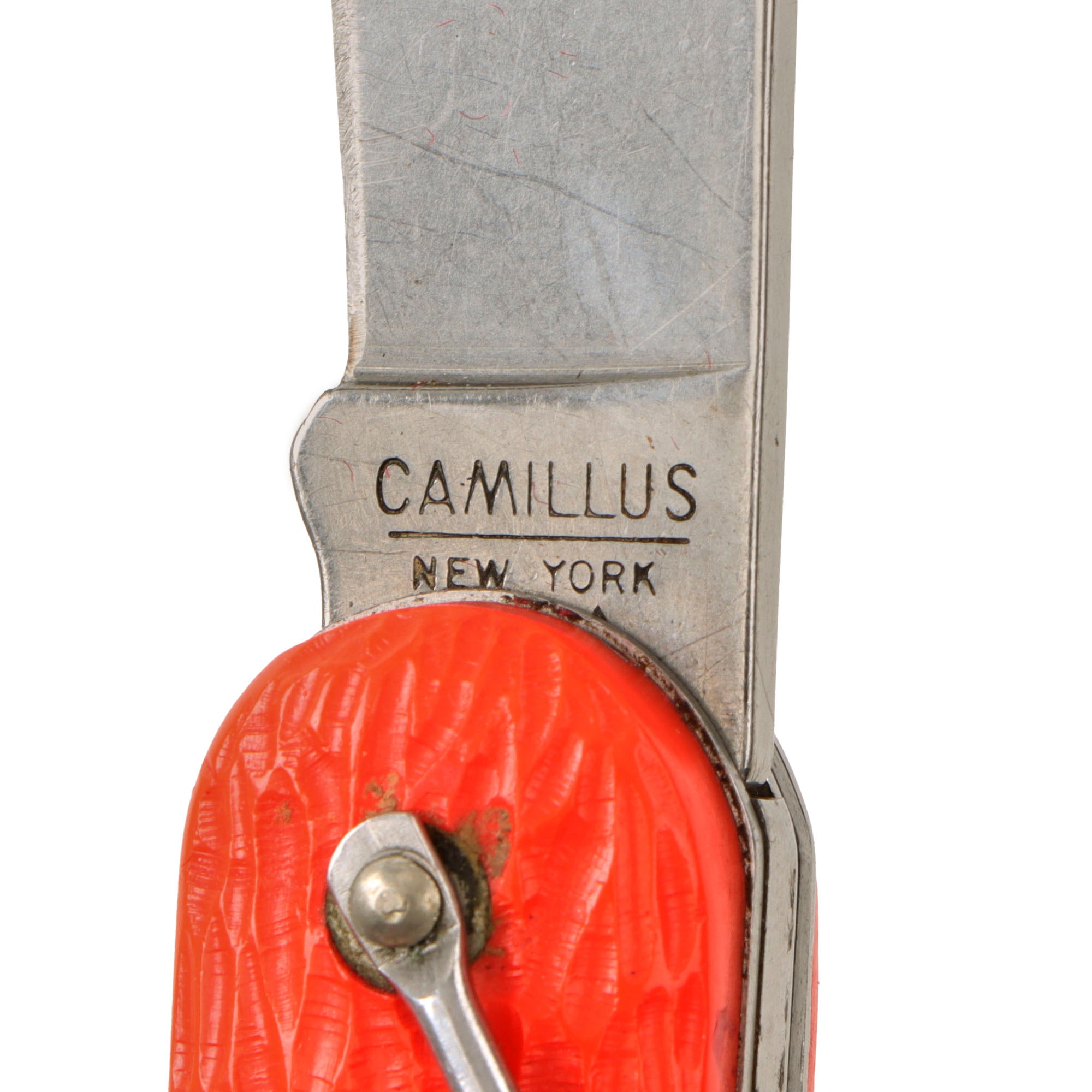 The USAF MC-1 Knife was originally adopted in 1958, and is officially designated as the "MC-1 SURVIVAL KNIFE". It originally was designed with black plastic handles, however these were replaced with orange to make the knife easier to see in low light conditions. They were manufactured by three different companies: Schrade / Walden, Camillus, and Logan / Smyth.