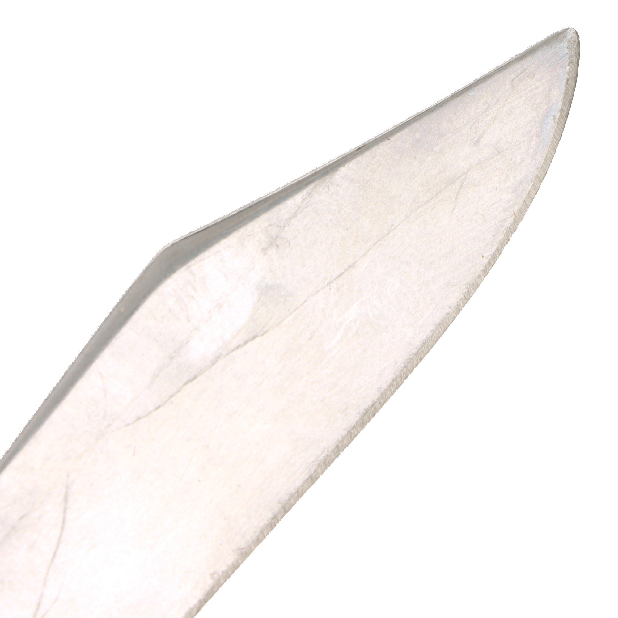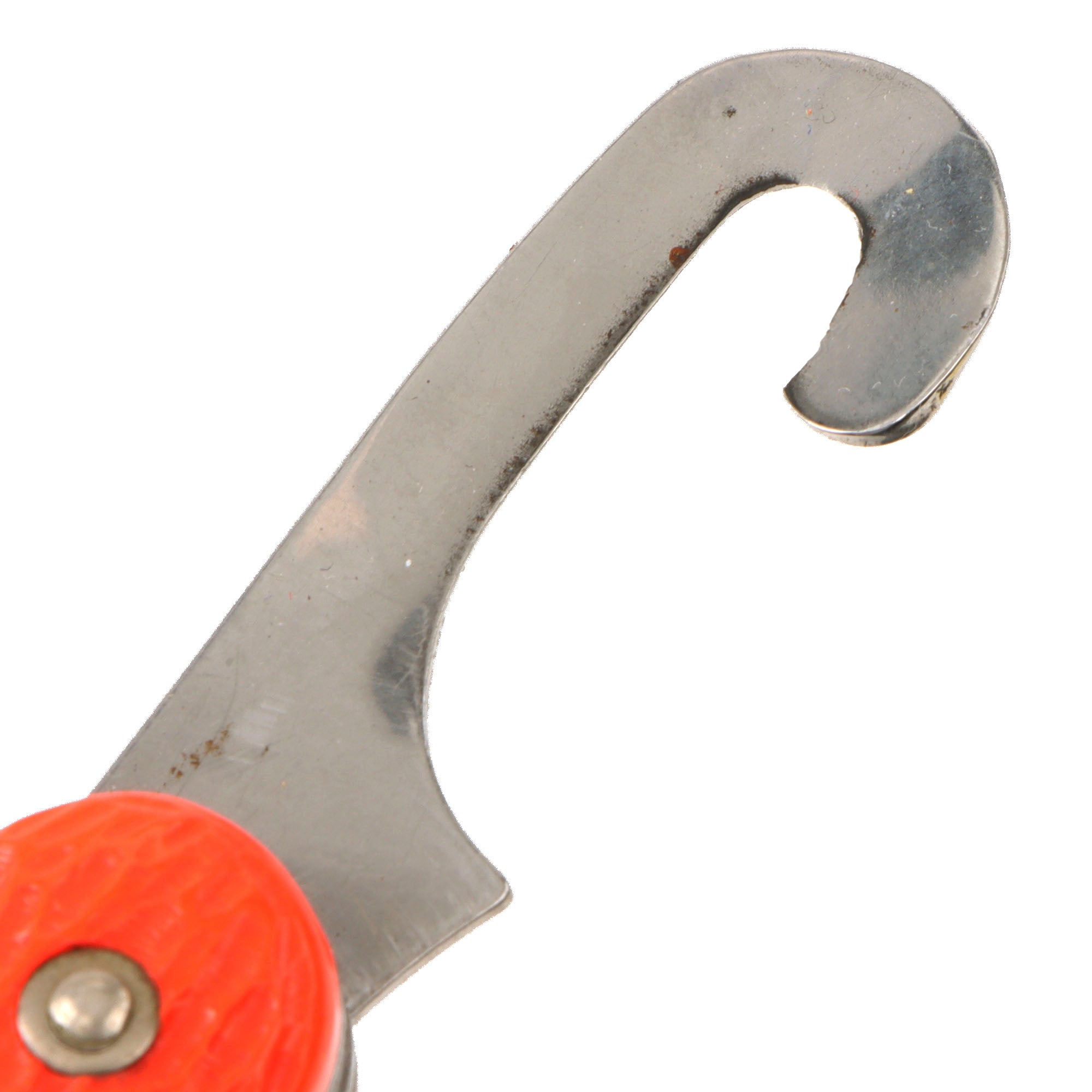 This used example is in fully functional condition and still has the bale ring intact. This would have a cord wrapped around it to ensure it wasn't dropped when being used to cut through parachute rigging. Condition is very good and shows signs of use but nothing major. The blades still retain their original shape, though the cord cutter definitely has been sharpened.
