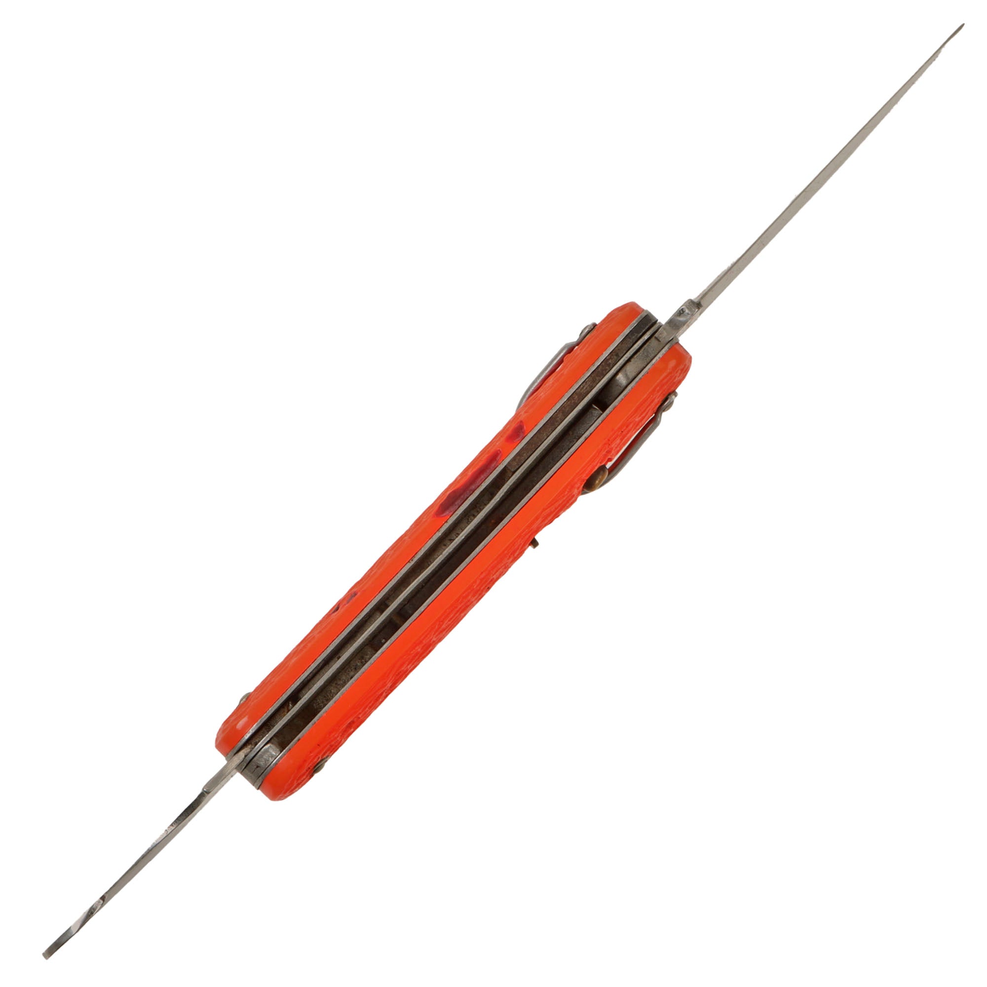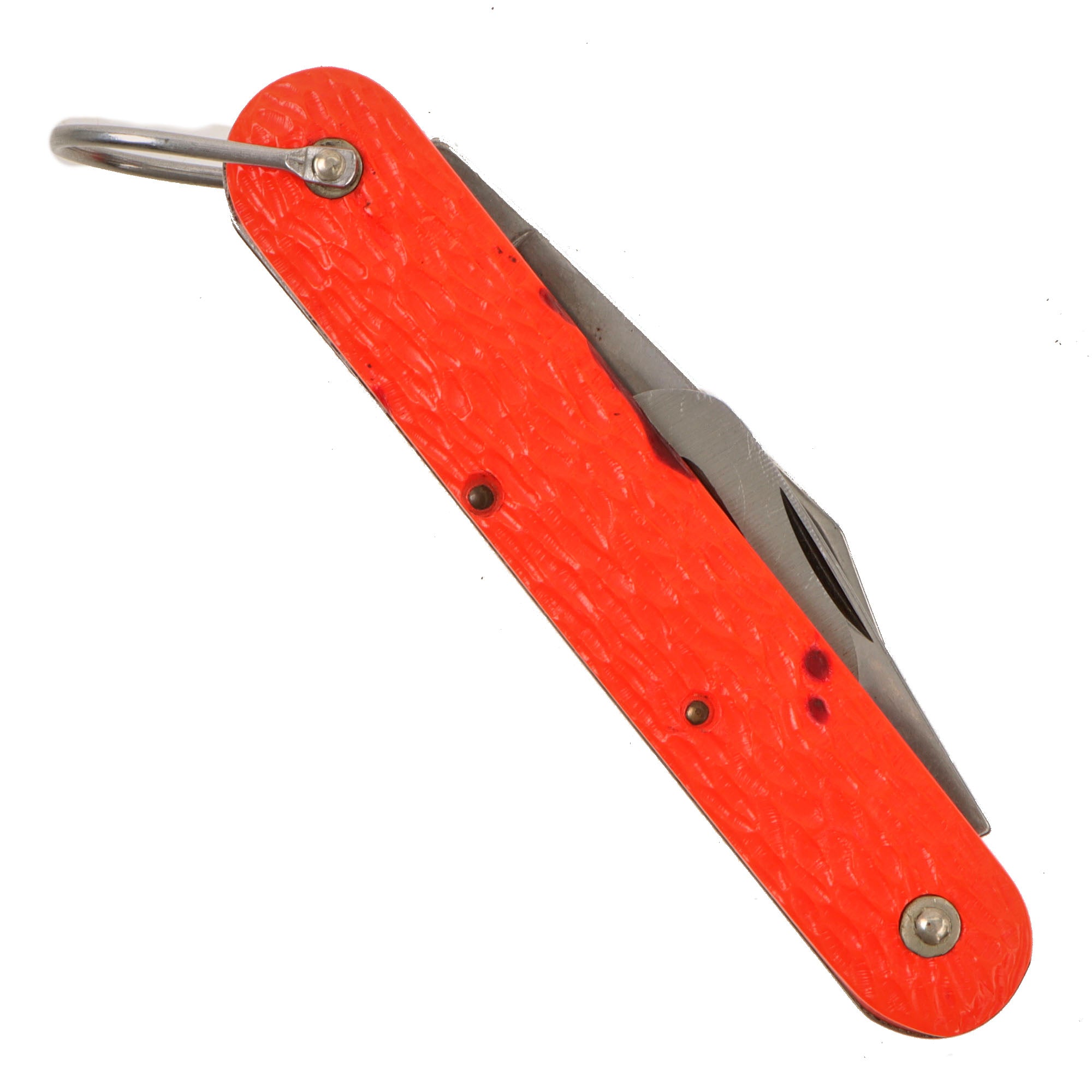 Original Item: Only One Available. This is a very nice service used example of a Vietnam War Issue USAF MC-1 Paratrooper and Pilot survival knife, with correct orange plastic "jigged bone" handles. These differ from the WWII and Korean war issue knives in that they have a second blade, specifically designed to cut cords. This would be used to help free the owner from tangled parachute rigging, or even their harness if they were a helicopter pilot.