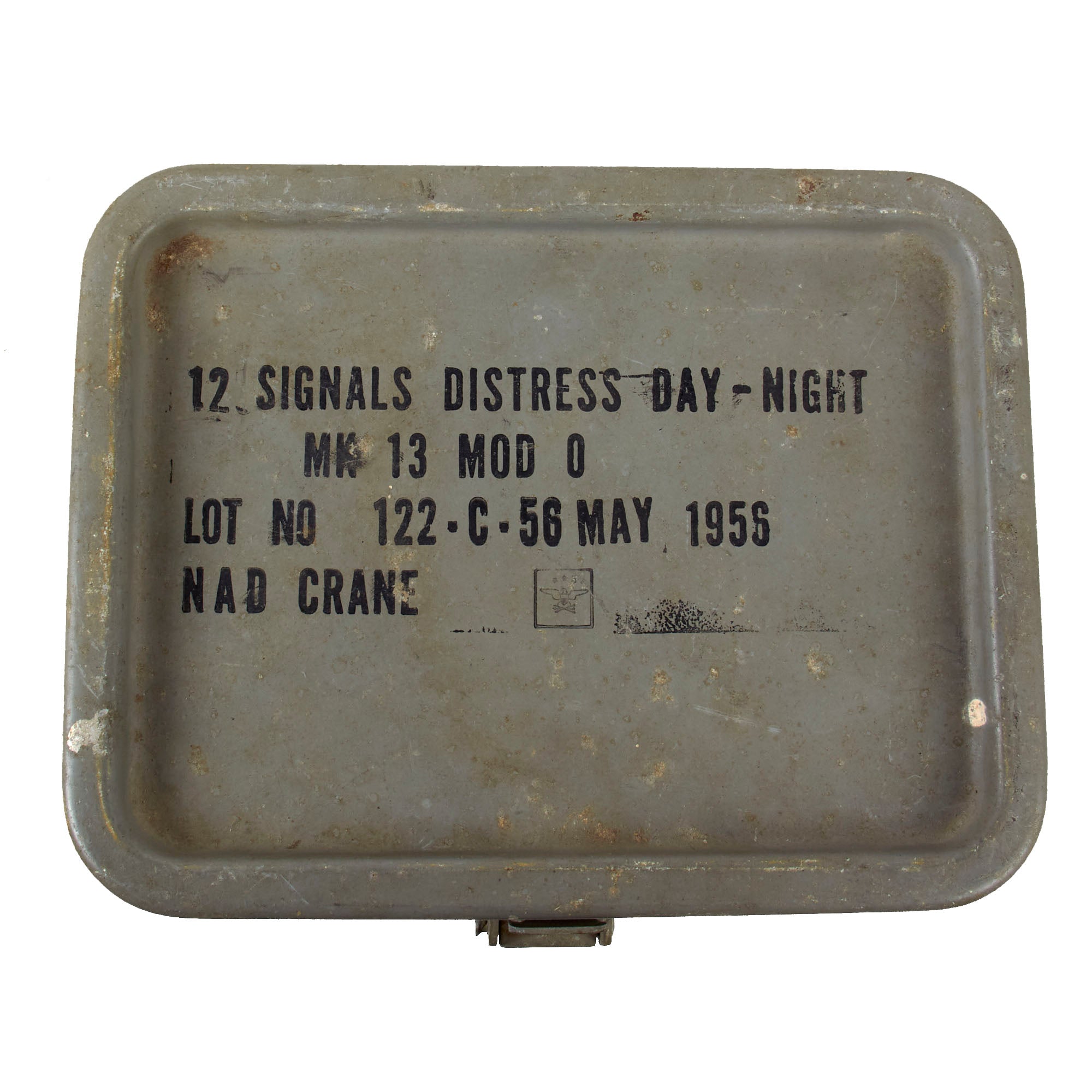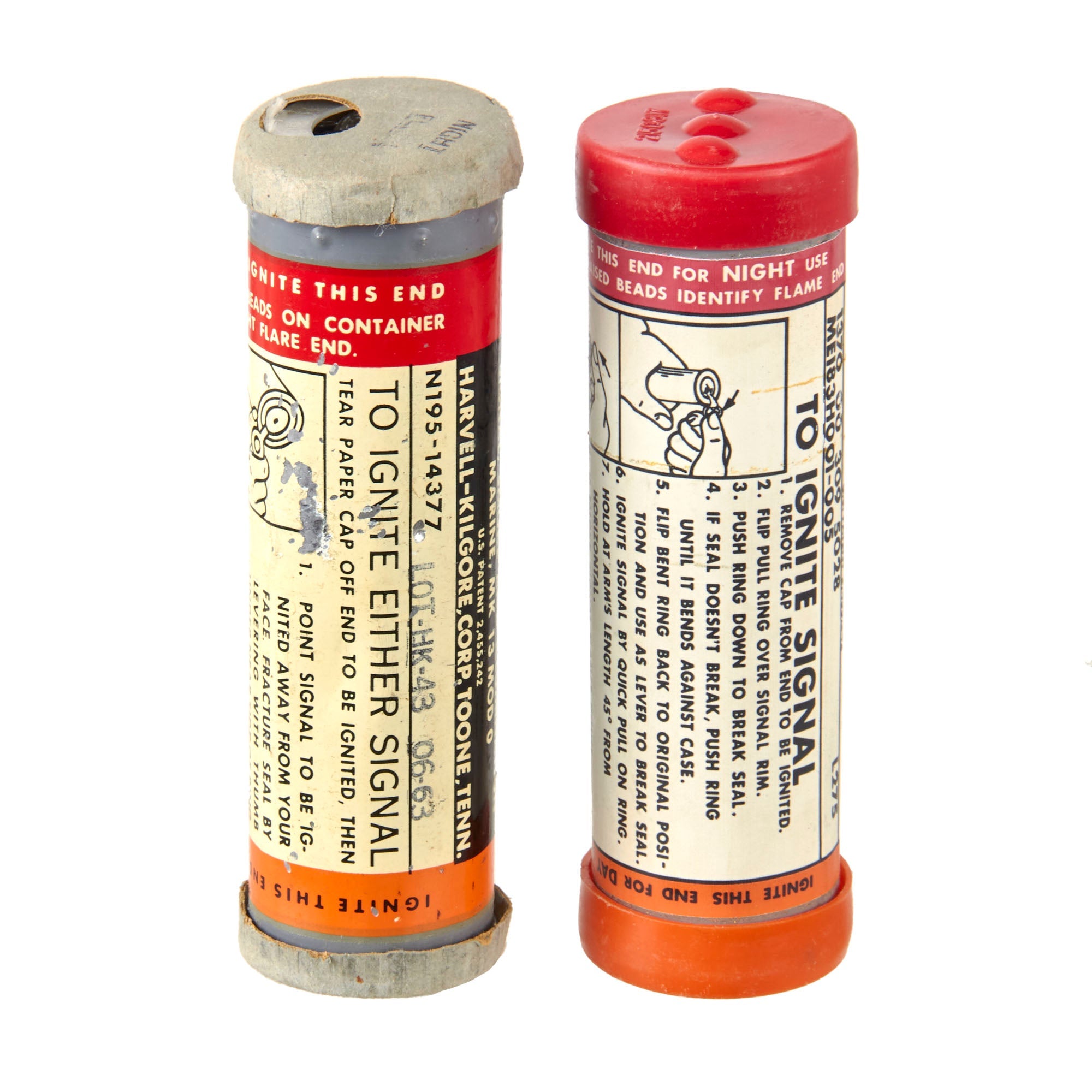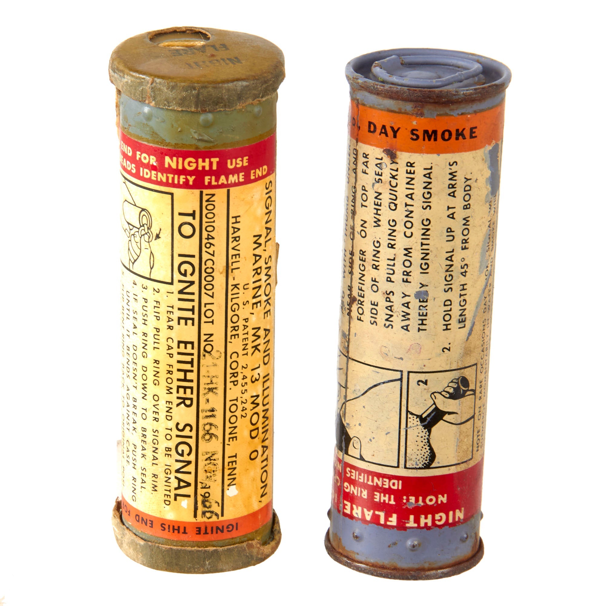 Original Items. Only One Lot Available. Adapted for both day and night use, the Hand Signal Mk 13 contains both the orange smoke canister for daylight and a flare pellet for darkness. Like the Smoke Signal AN-Mk 1 in appearance and operation, the Signal Mk 13 is small and is easily stowed in life vest pockets, flight suits, or life rafts. Not Available for Export.