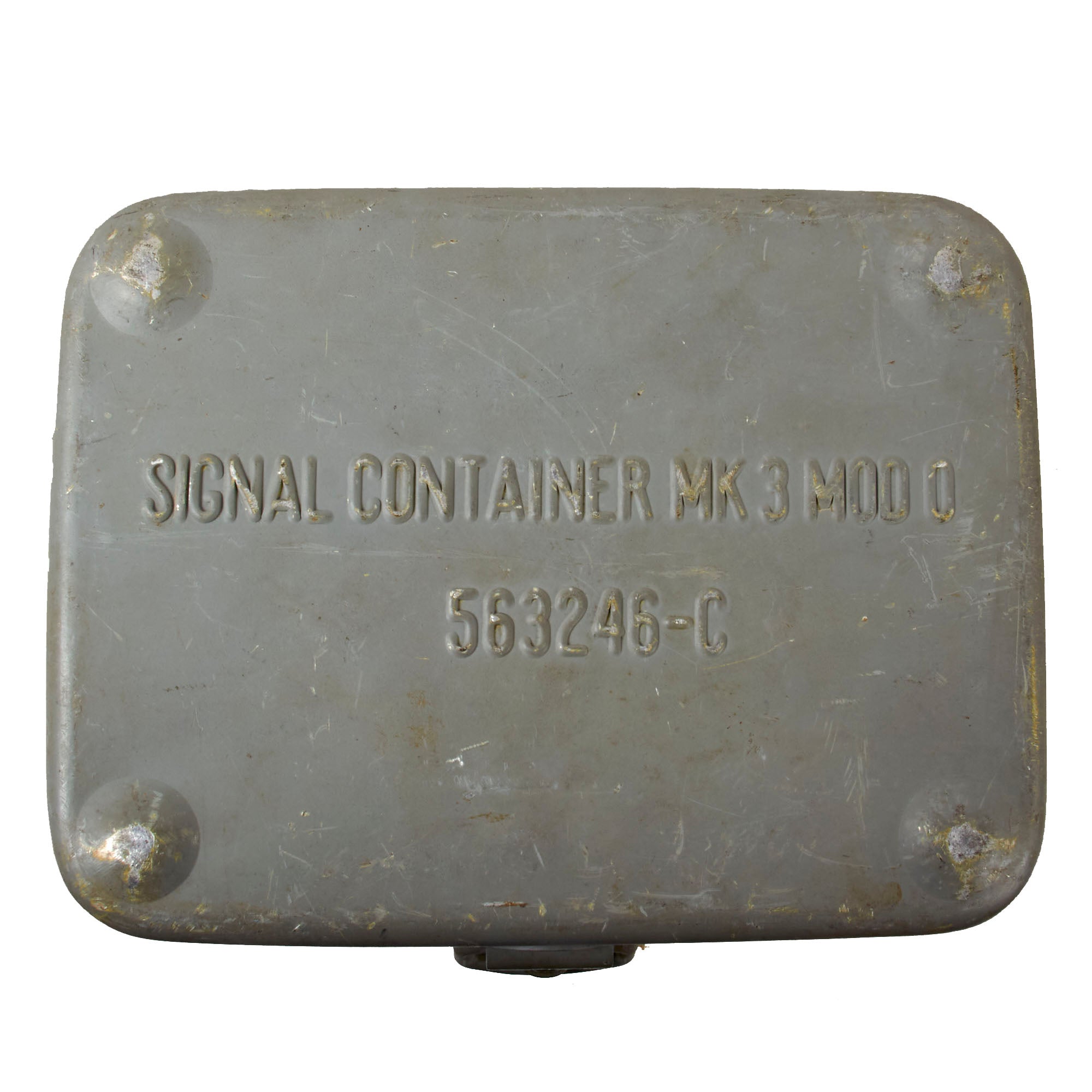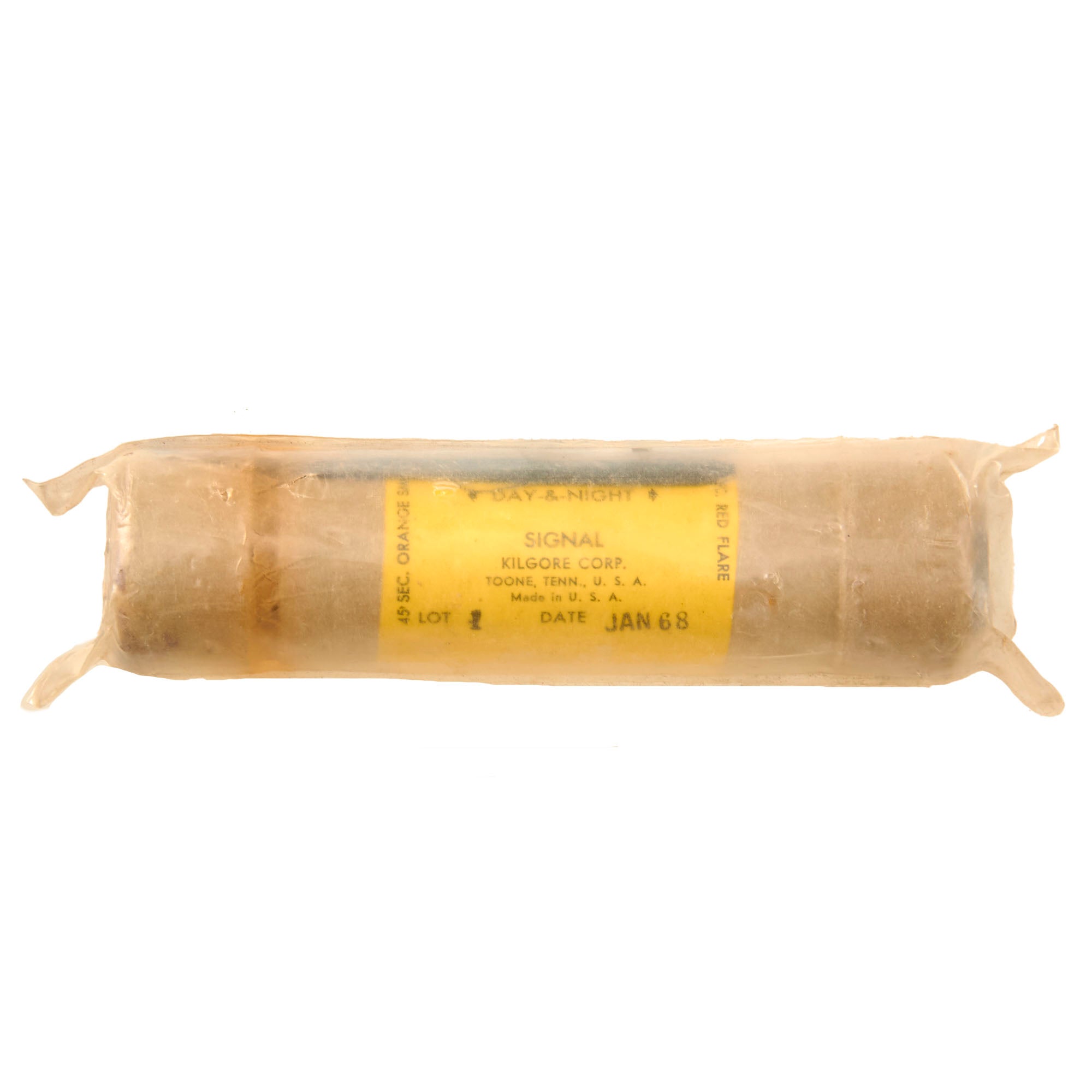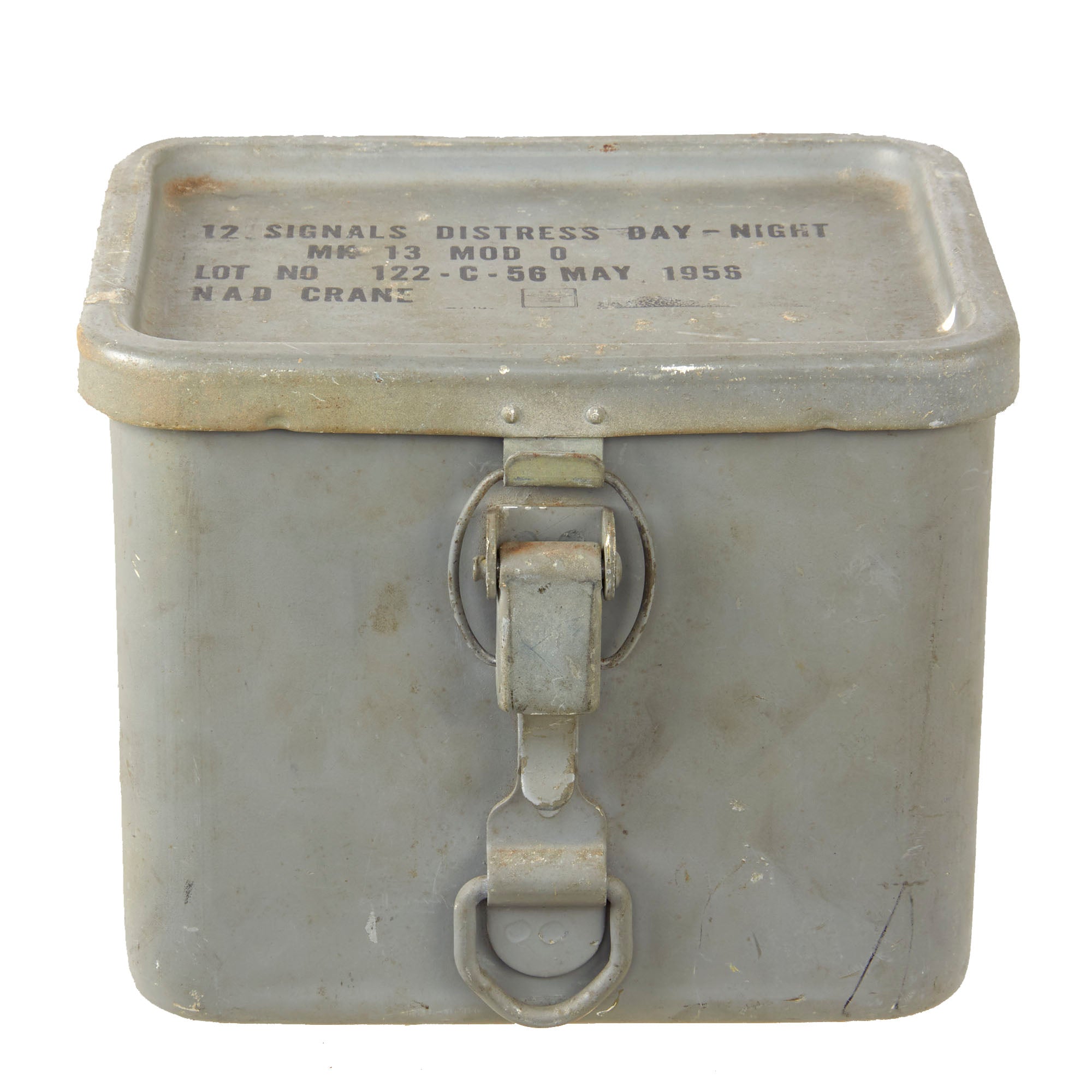 Original Items. Only One Lot Available. Adapted for both day and night use, the Hand Signal Mk 13 contains both the orange smoke canister for daylight and a flare pellet for darkness. Like the Smoke Signal AN-Mk 1 in appearance and operation, the Signal Mk 13 is small and is easily stowed in life vest pockets, flight suits, or life rafts. Not Available for Export.