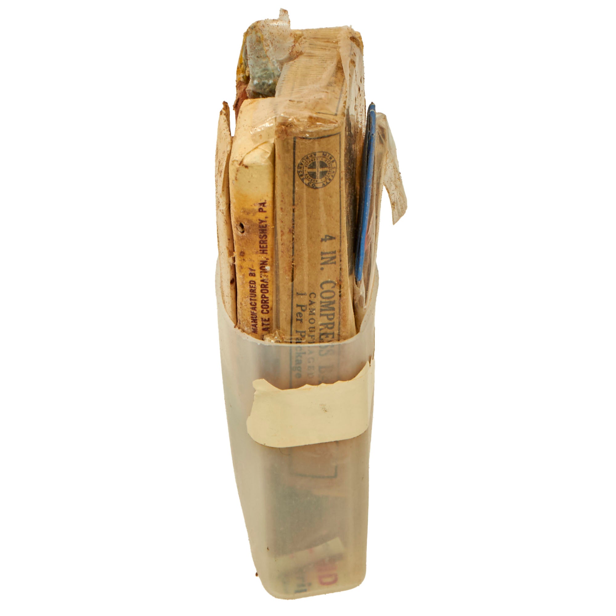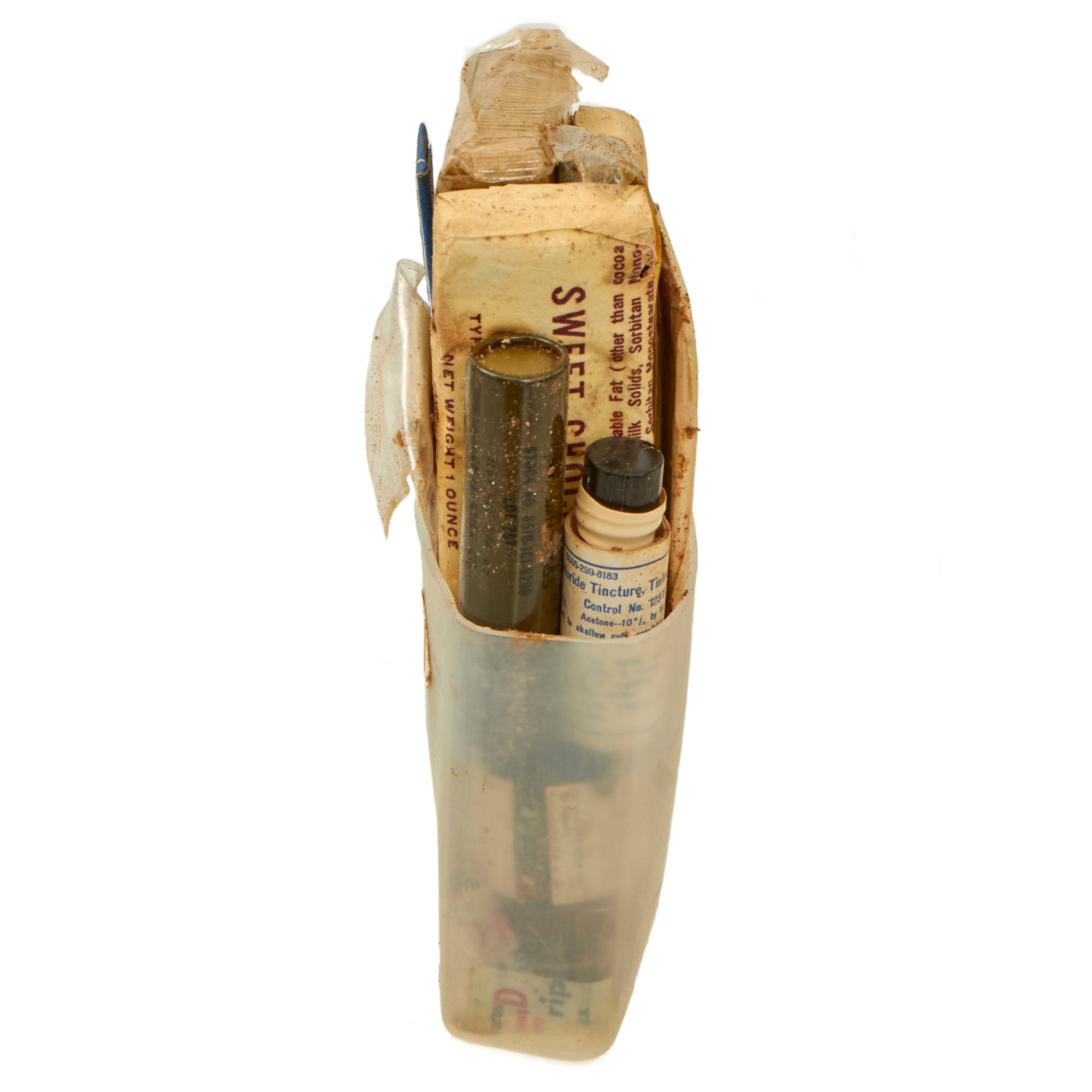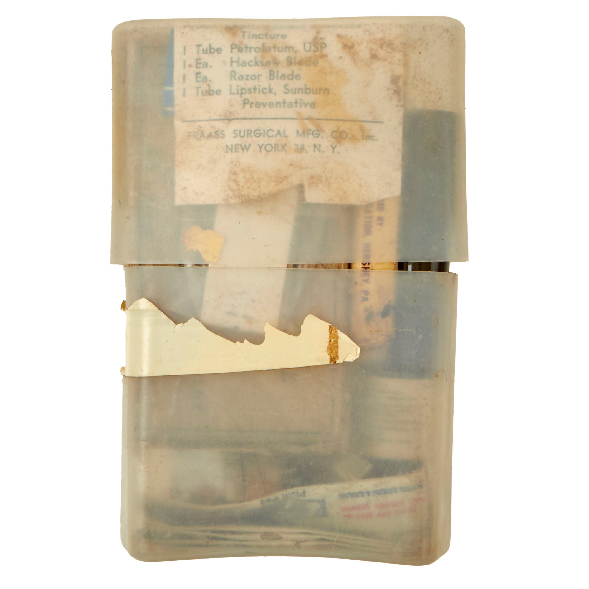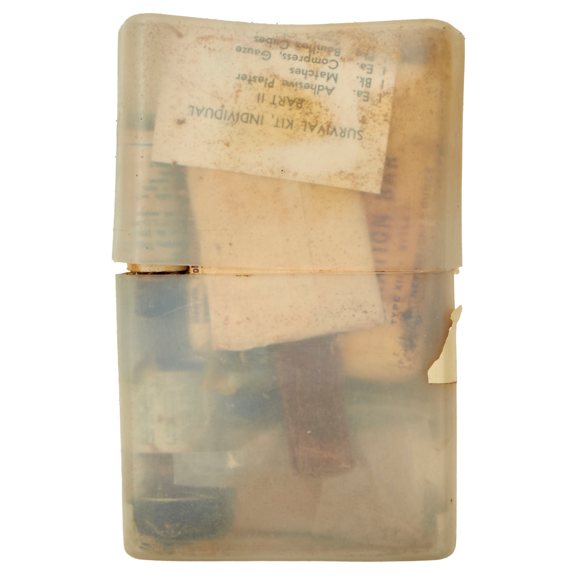Original Item. Only One Available. This is an original US Military issue Individual Survival Kit. It has been opened, but still retains much of its original contents. It comes with a sheet listing the original contents.