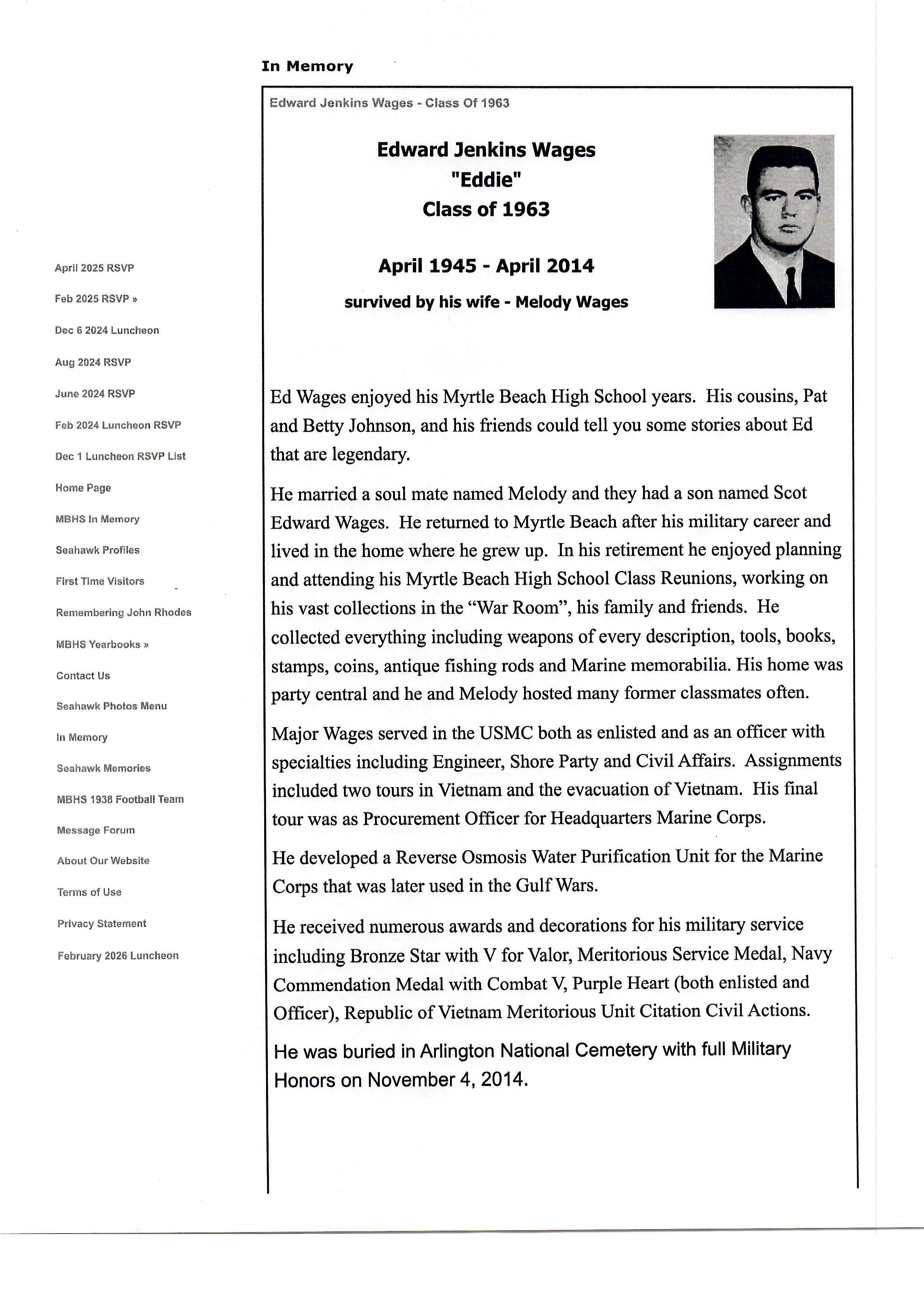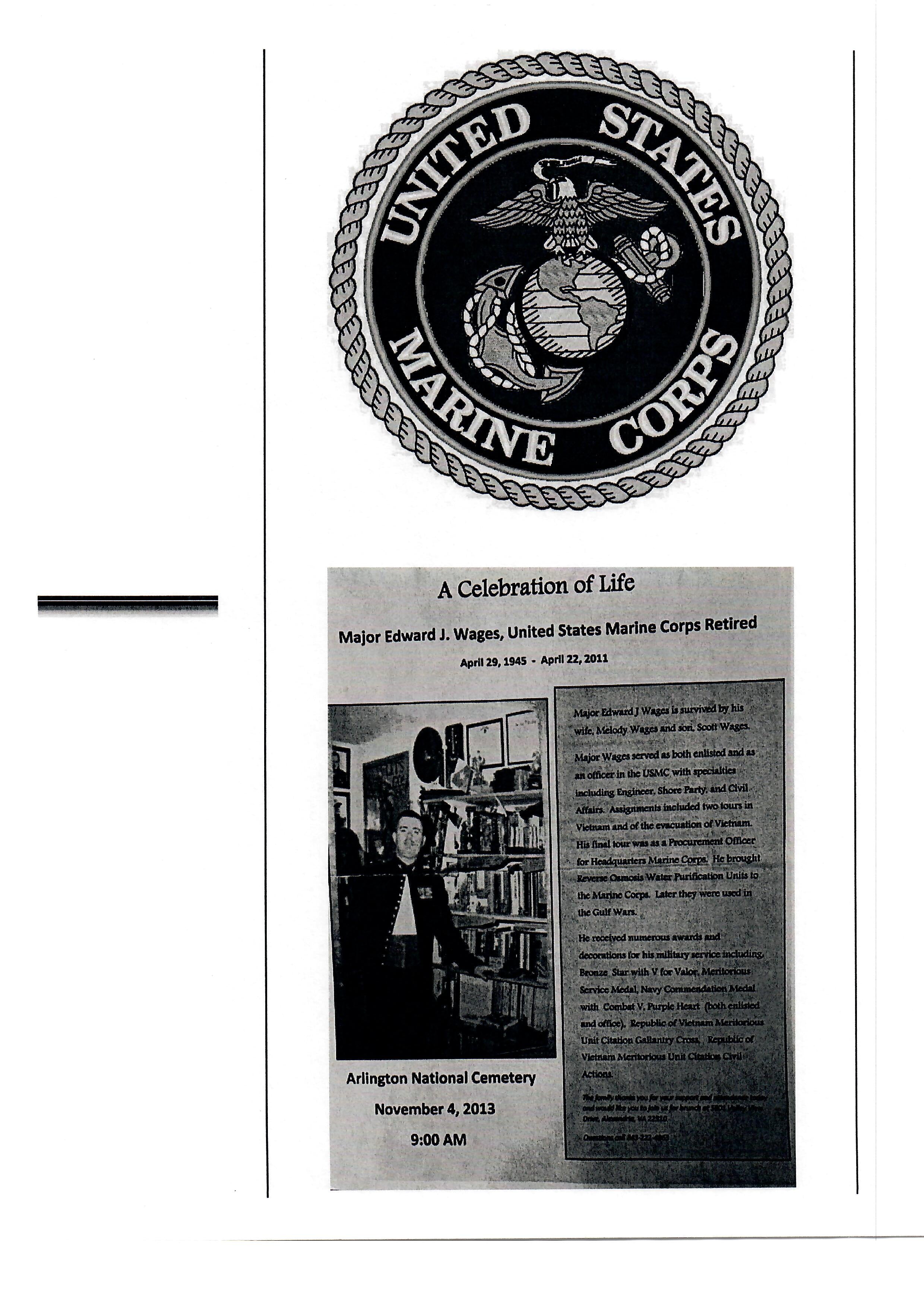 This example is inscribed E.J. WAGES on the blade and in our research we found that this came from the estate of United States Marine Corps Captain Edward J. Wages, who served two combat tours in Vietnam as a Squad leader with the 3rd Engineer Battalion, 3rd Marine Division. Wages was awarded the Bronze Star with “V” Valor device, the Meritorious Service Medal, Navy Commendation Medal with Combat V, Purple Heart (both enlisted and Officer), Republic of Vietnam Meritorious Unit Citation Civil Actions. He developed a Reverse Osmosis Water Purification Unit for the Marine Corps that was later used in the Gulf Wars. Major Wages served in the USMC both as enlisted and as an officer with specialties including Engineer, Shore Party and Civil Affairs. Assignments included two tours in Vietnam and the evacuation of Vietnam. His final tour was as Procurement Officer for Headquarters Marine Corps.